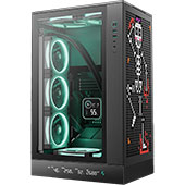 К особенностям этого компактного корпуса относятся стеклянная боковая стенка, установка системных плат Mini-ITX и microATX (в том числе с разъемами на обратной стороне), два внешних порта USB-A и один USB-C, единственное посадочное место для HDD/SSD с размерностью 2,5 или 3,5 дюйма. Для работы цифровой панели на левом боку нужна фирменная утилита DeepCreative.