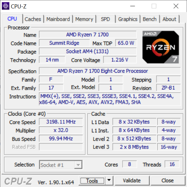- процессор AMD Ryzen 7 1700;