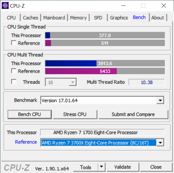 Но мы не хотим ограничиваться тем, чего достаточно только на сегодня, желателен небольшой запас в виде дополнительной пары вычислительных ядер. С другой стороны, в Ryzen 7 3800X тоже нет смысла: он совсем чуть-чуть быстрее, чем Ryzen 7 3700X, равно как и немного дороже, так что разницы никто не увидит. Поэтому именно Ryzen 7 3700X нам показался идеальным вариантом для модернизации тестовой системы. Для формальности приведем скриншоты CPU-Z: