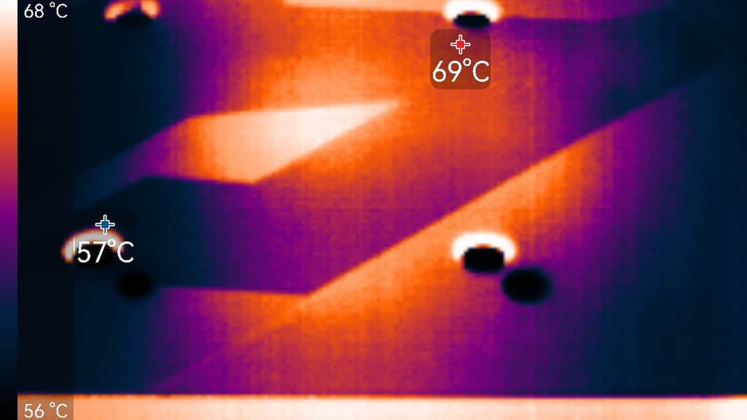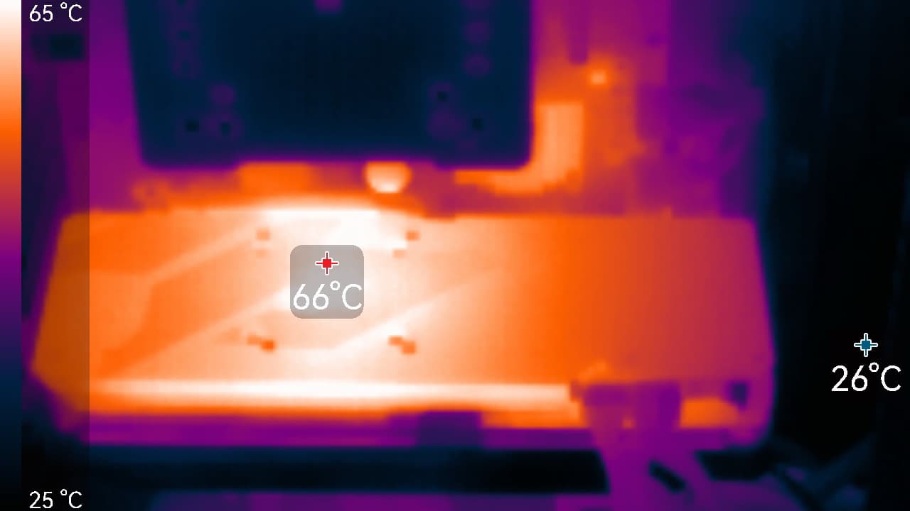 Максимальный нагрев наблюдался в центральной части PCB и у разъема PCIe.