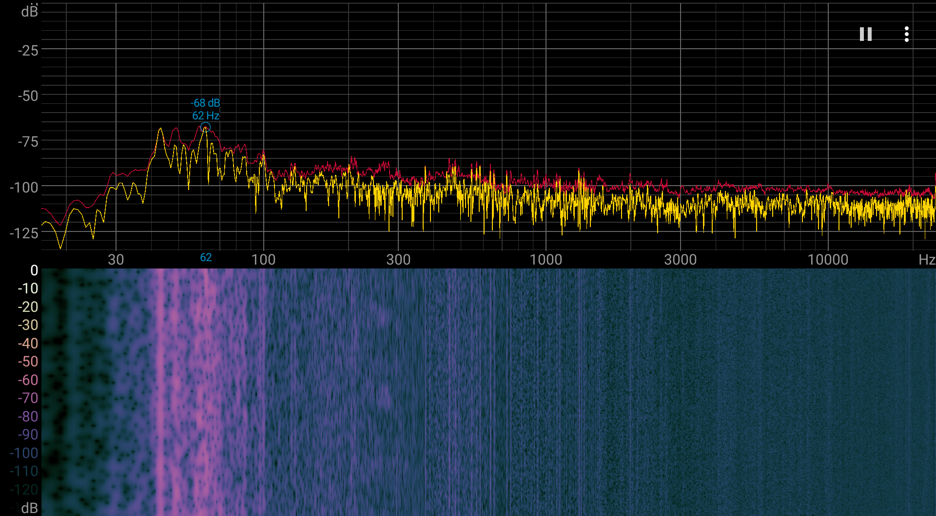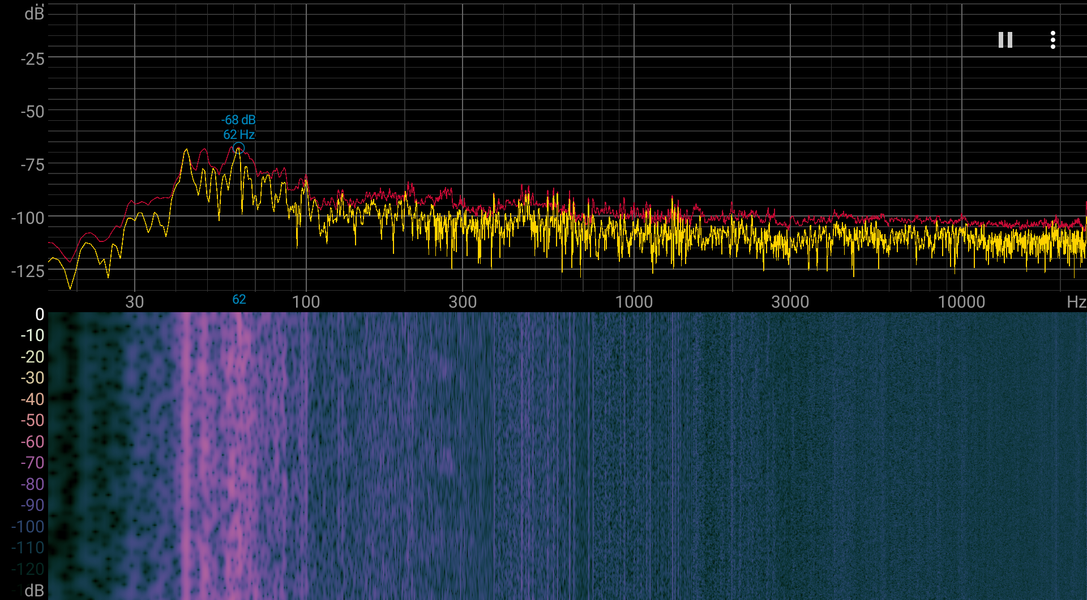 Спектрограмма шума достаточно ровная.