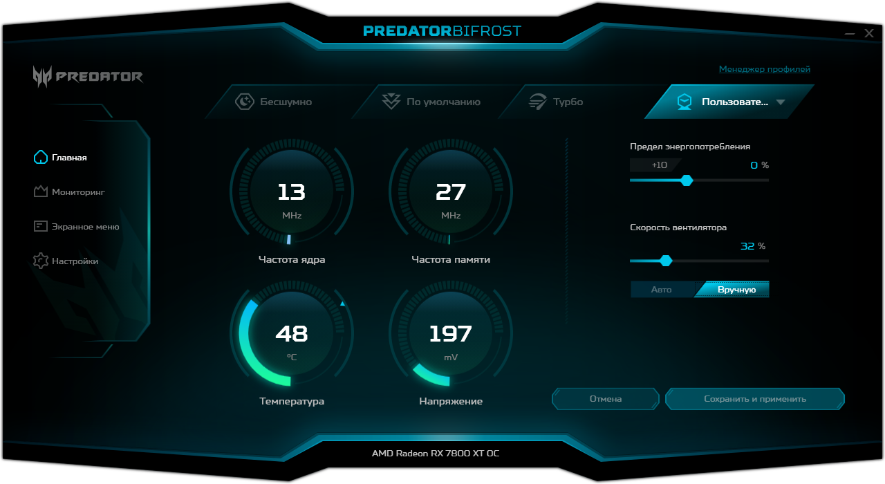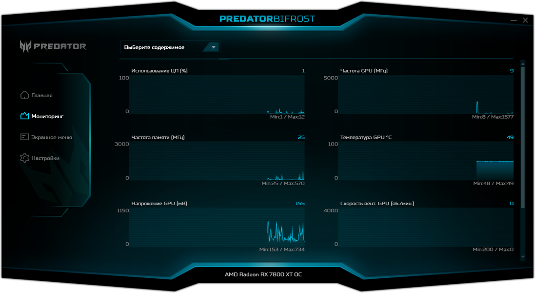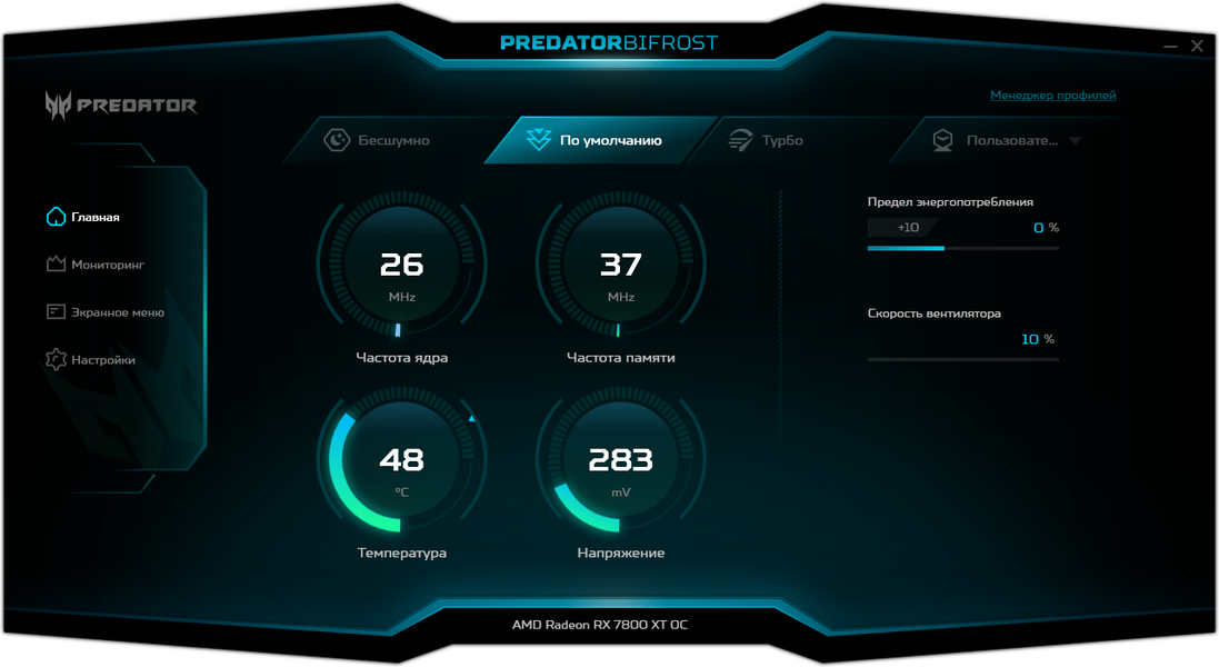 Через фирменную утилиту Acer Predator BiFrost можно управлять работой карты.