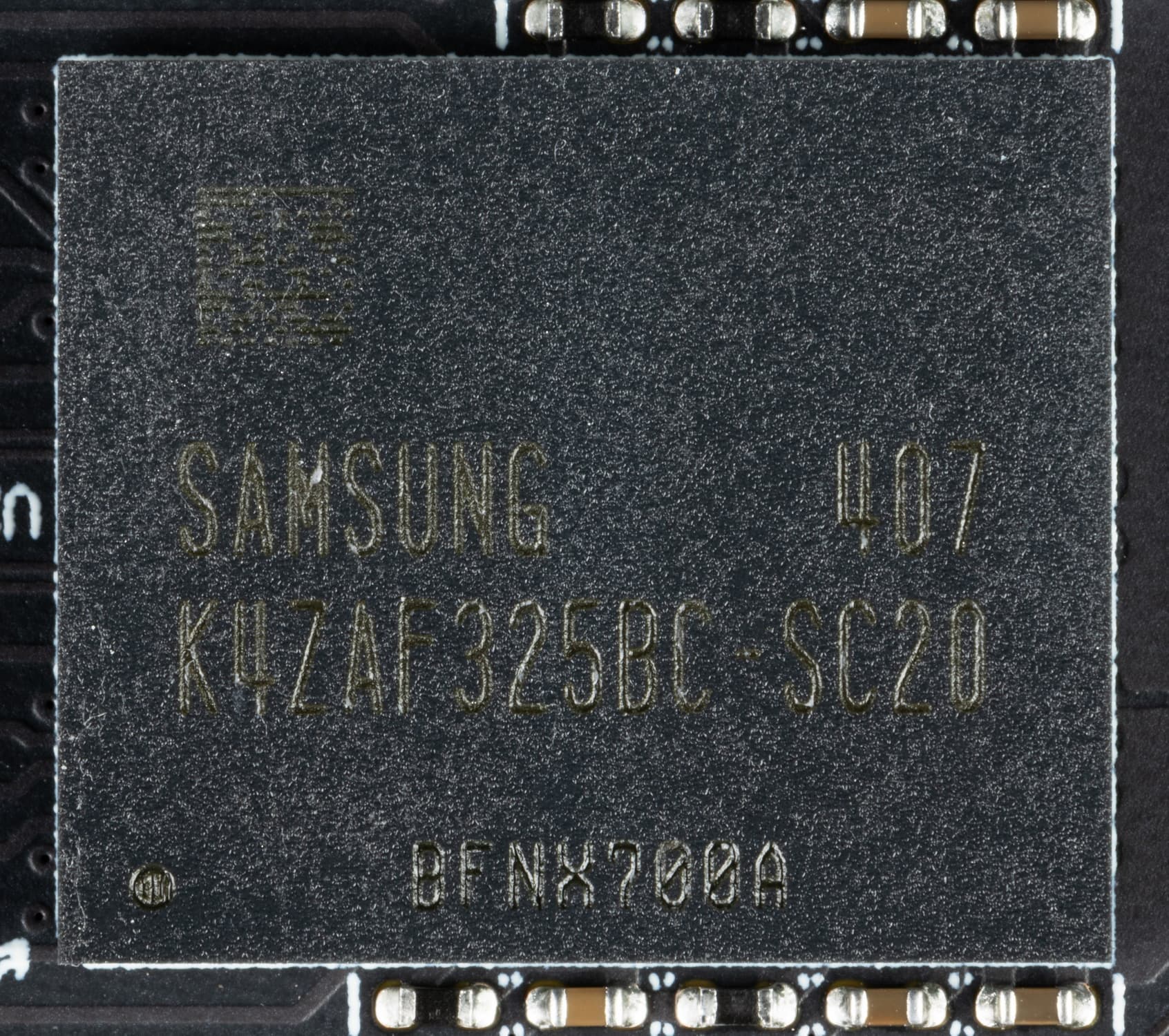 3 фазами питания микросхем памяти заведует такой же ШИМ-контроллер, расположенный уже на оборотной стороне карты.