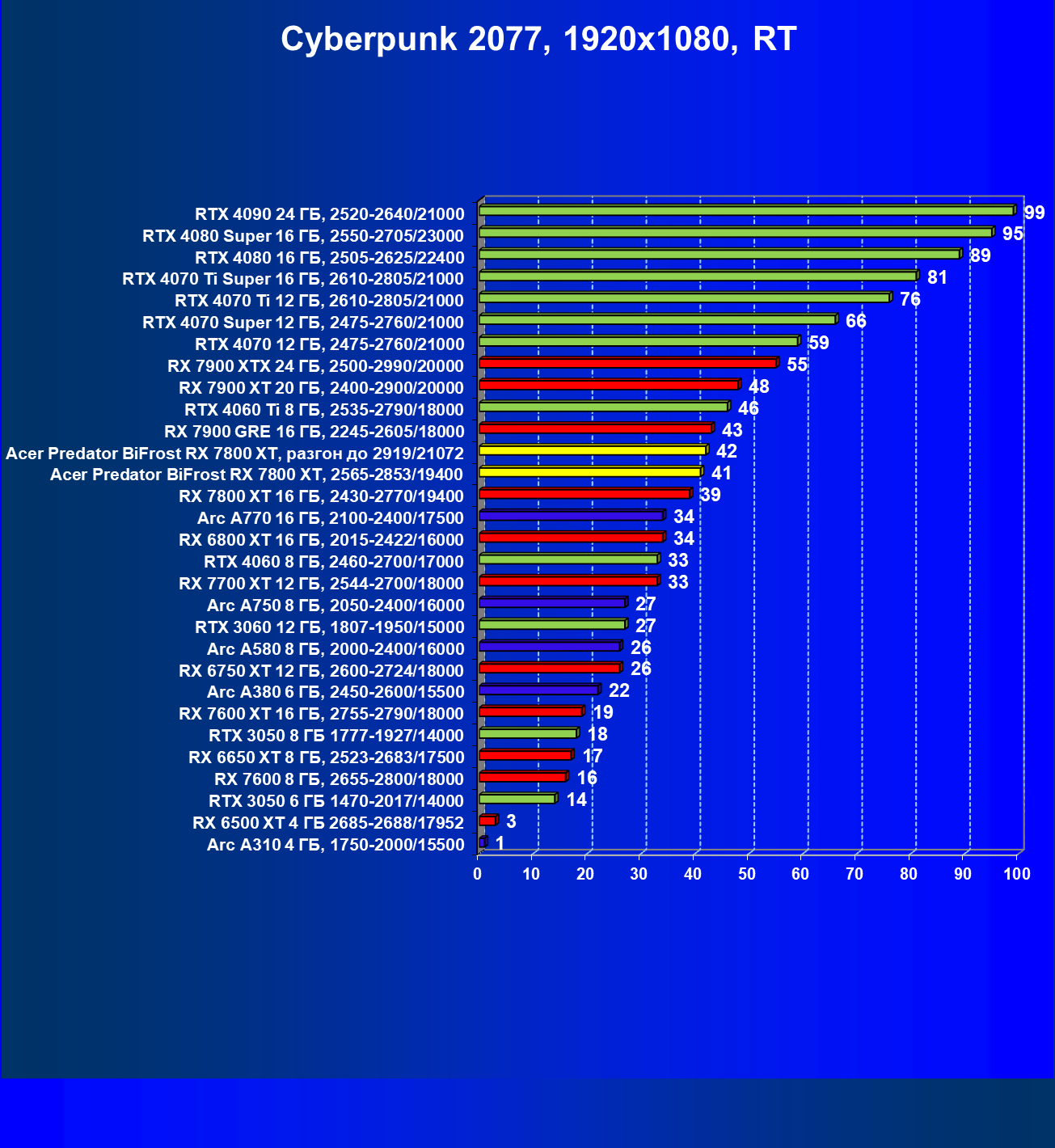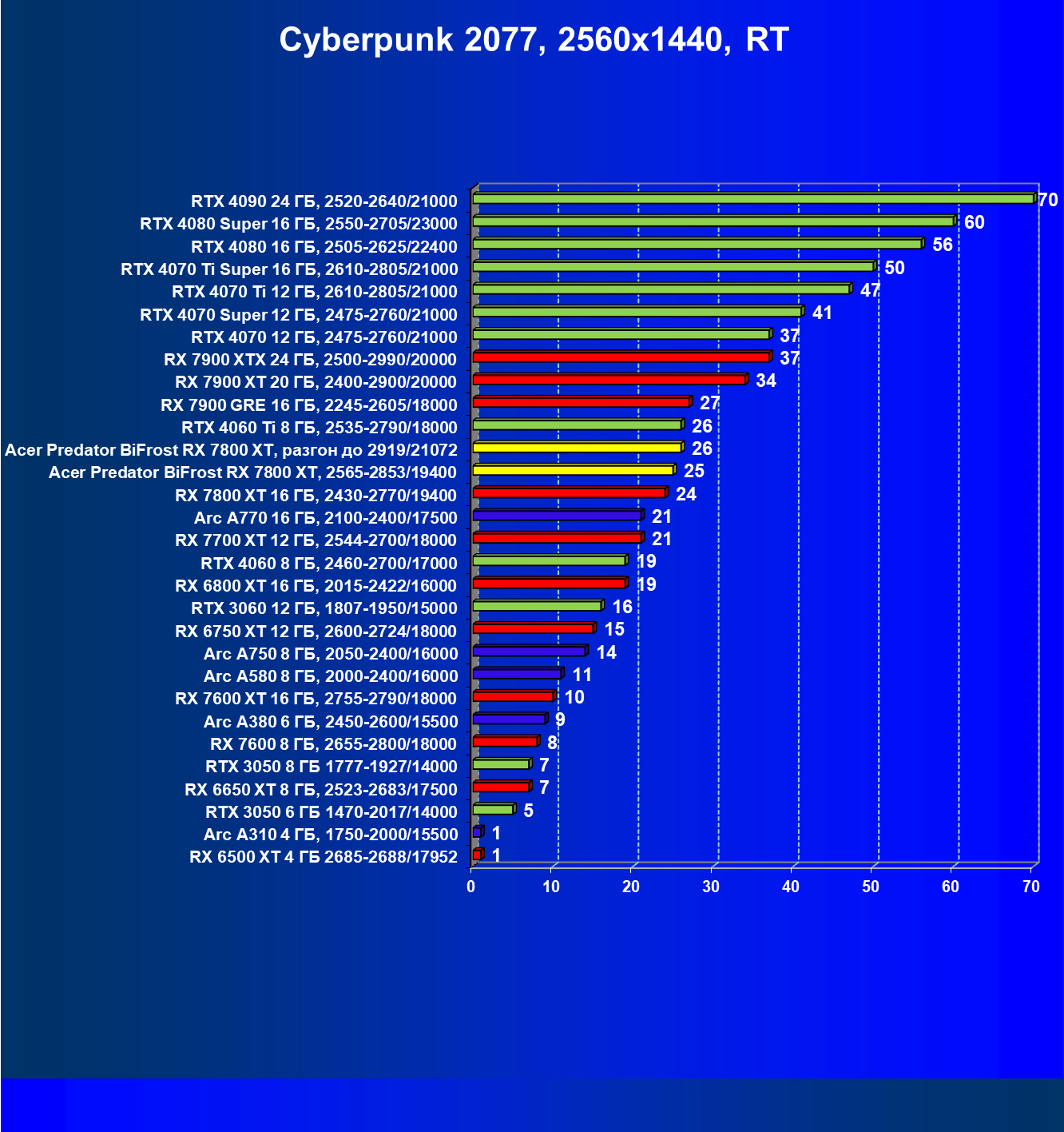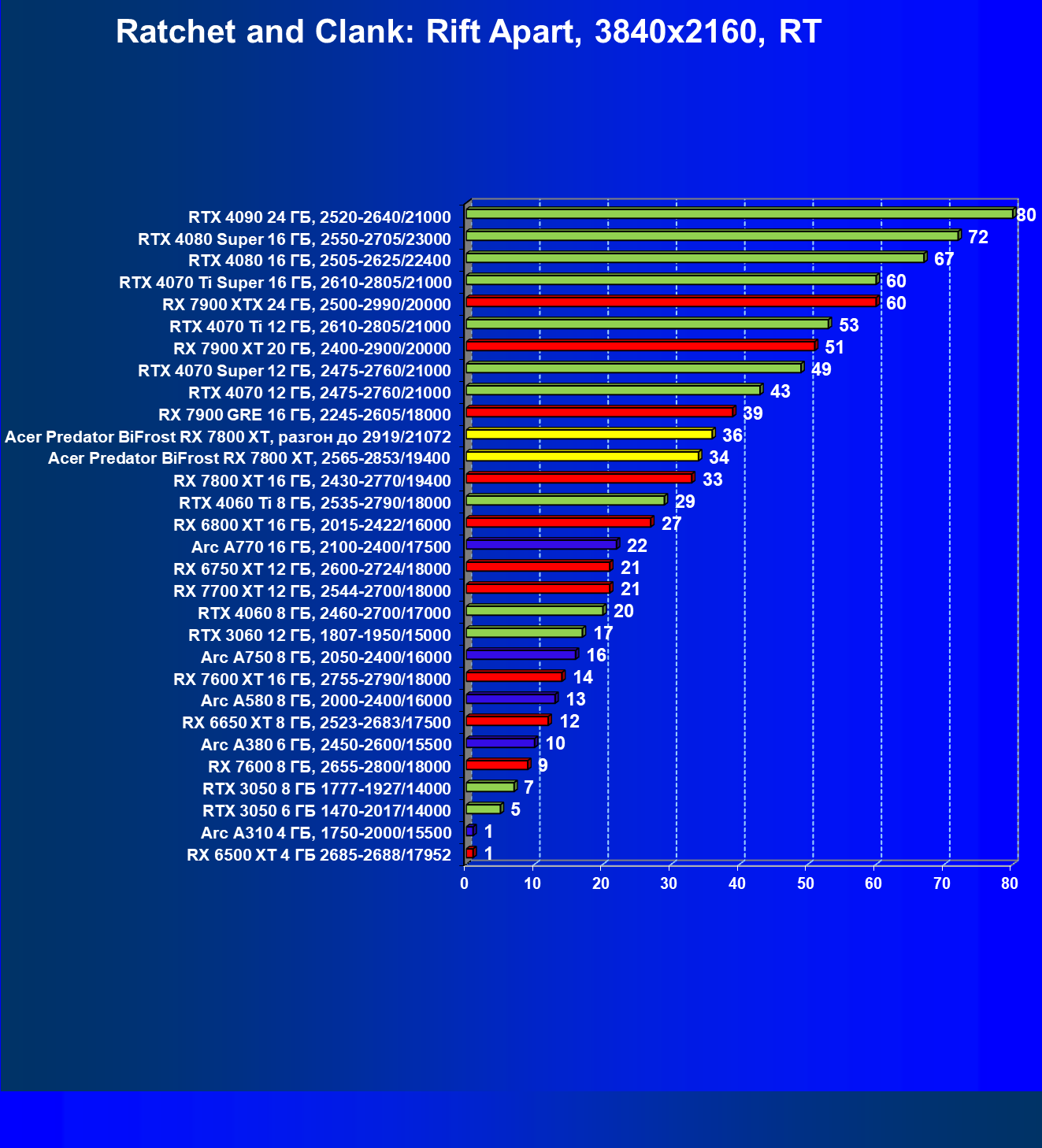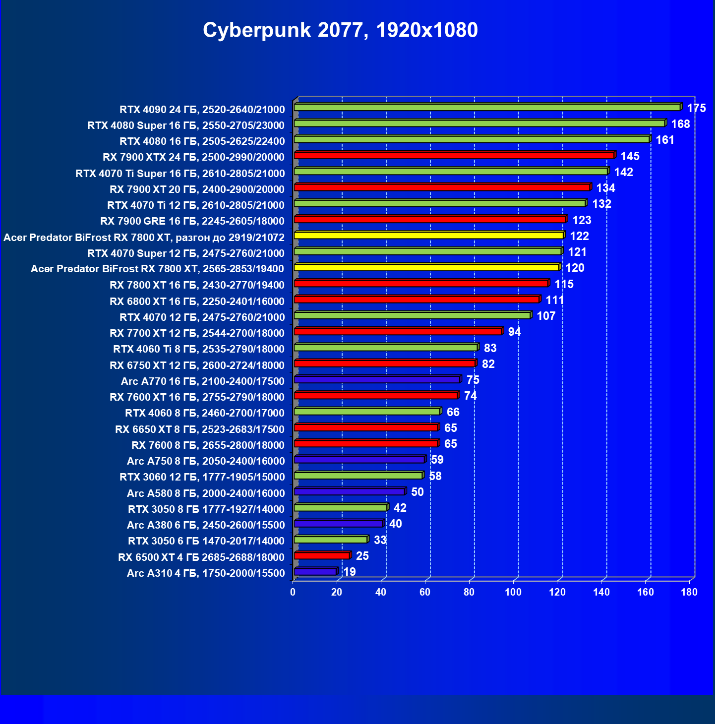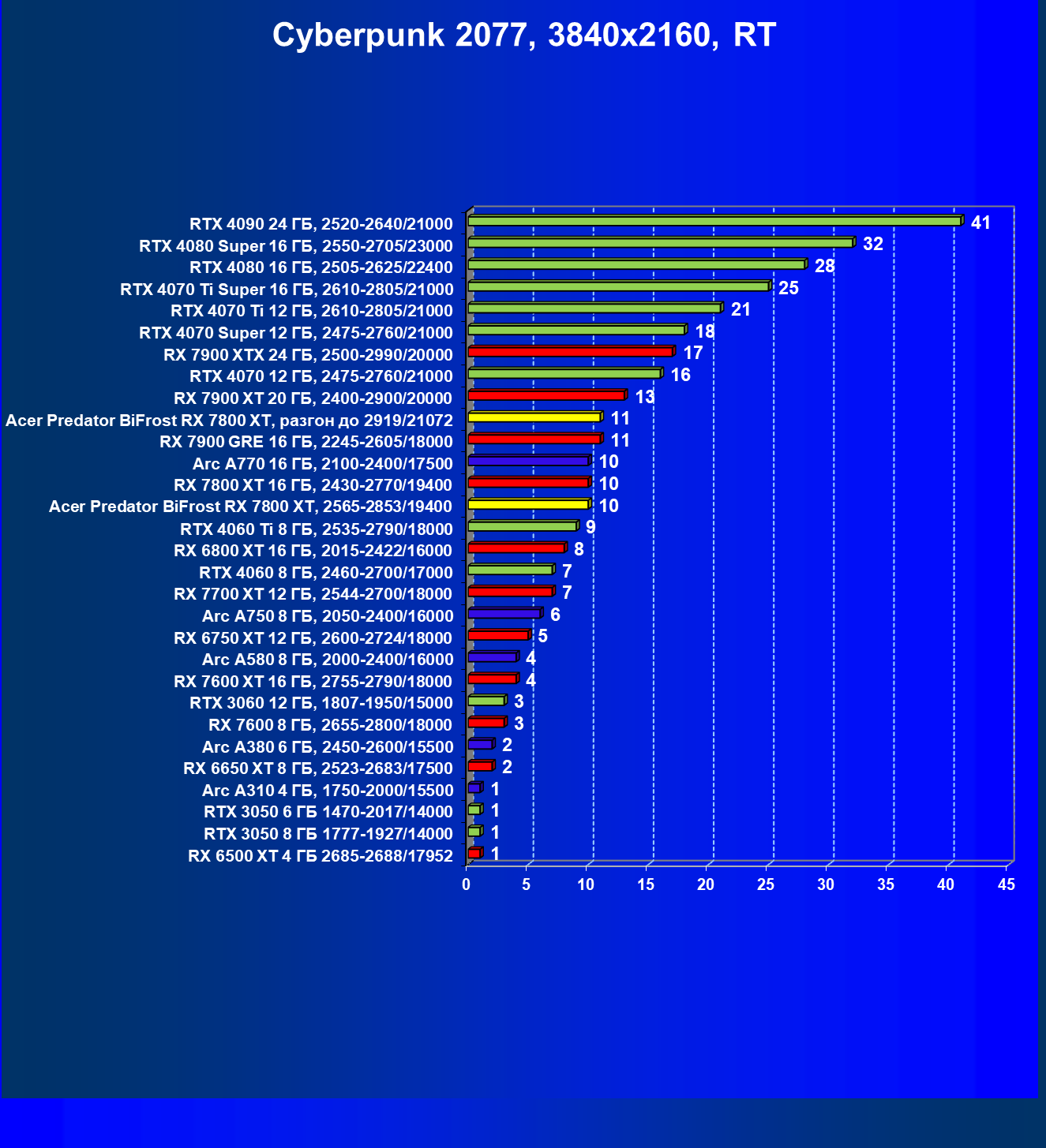 | 11 | Acer Predator BiFrost RX 7800 XT, разгон до 2919/21072 | 311 | 1775 | 57 000 |