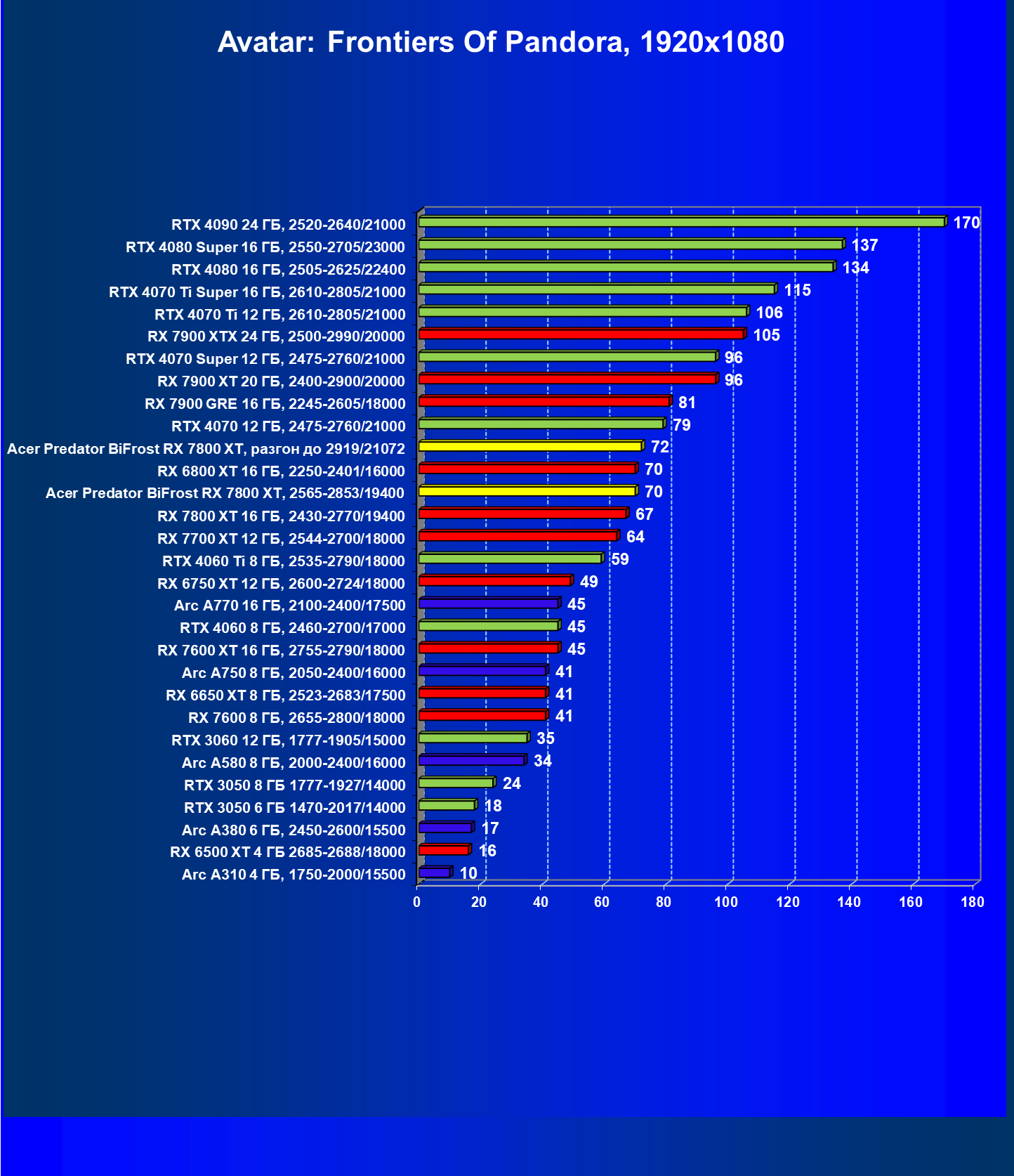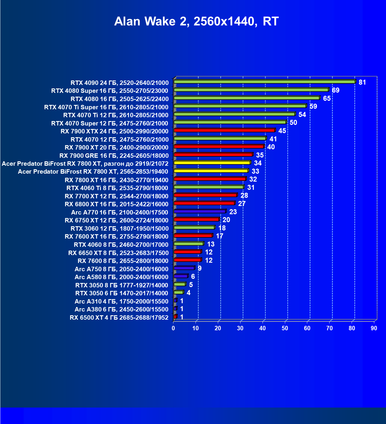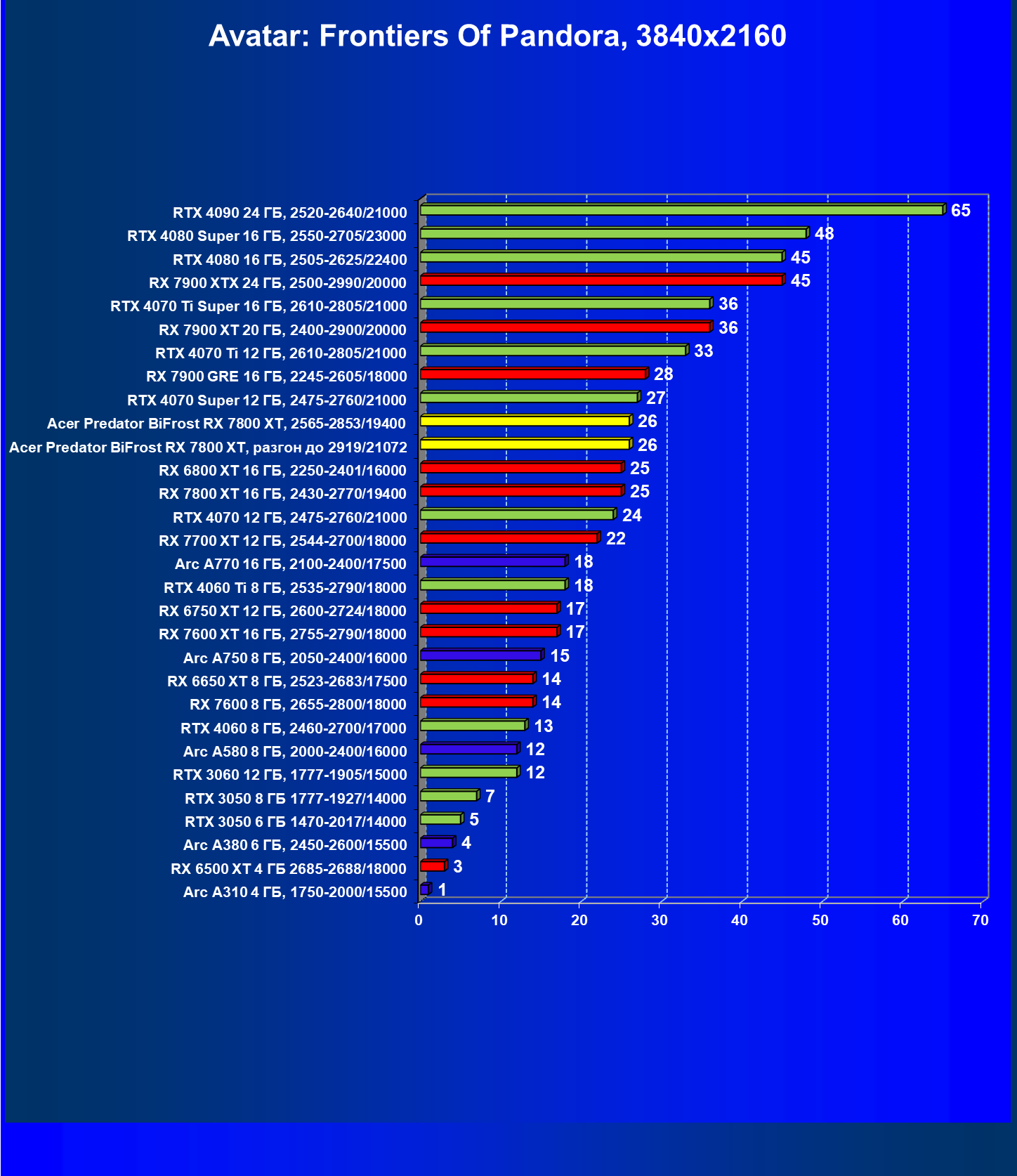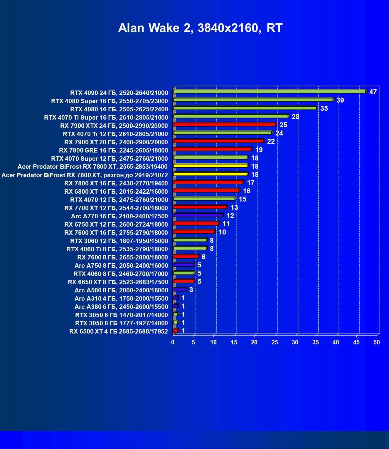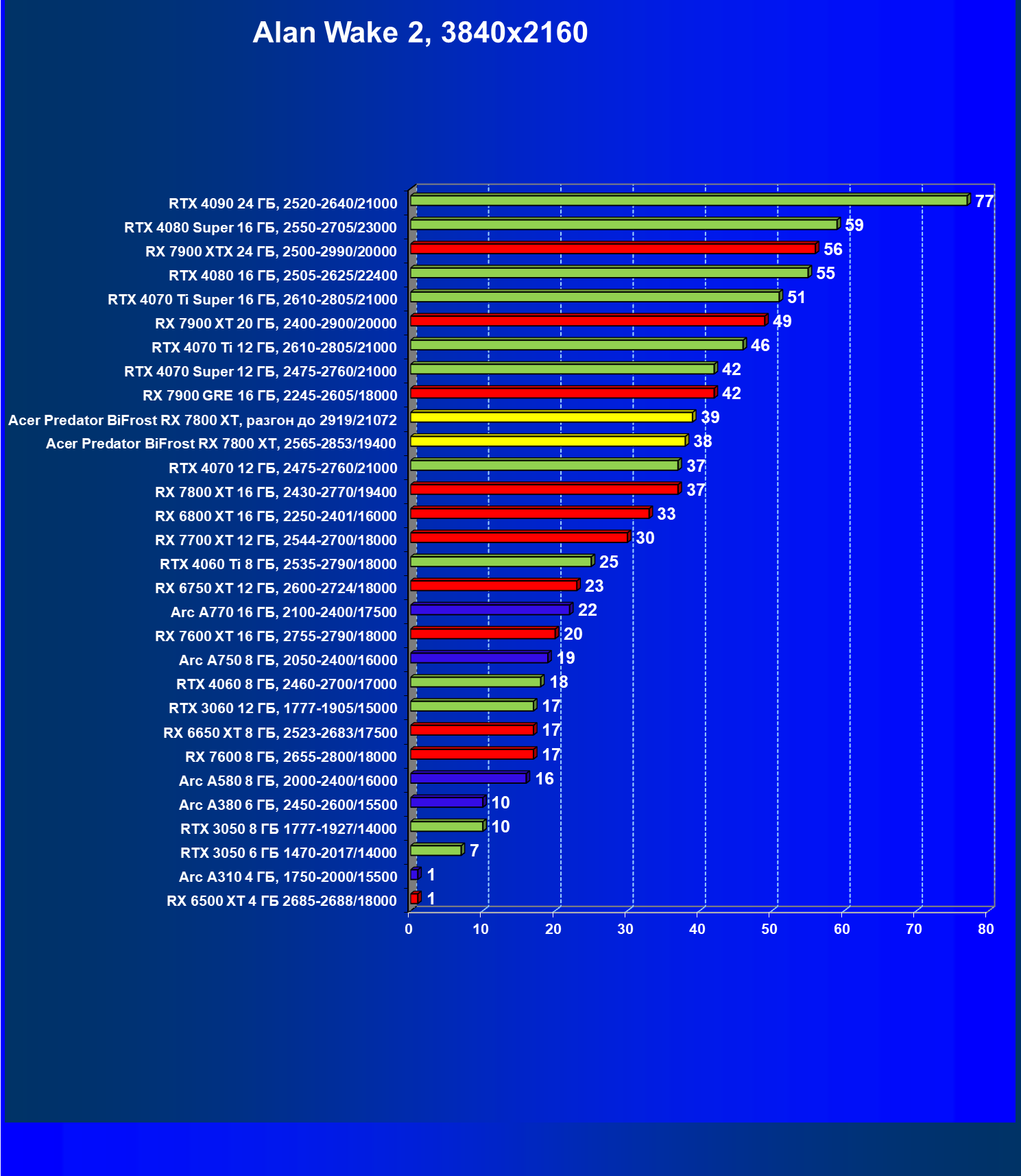 | 11 | Acer Predator BiFrost RX 7800 XT, разгон до 2919/21072 | 311 | 1775 | 57 000 |
