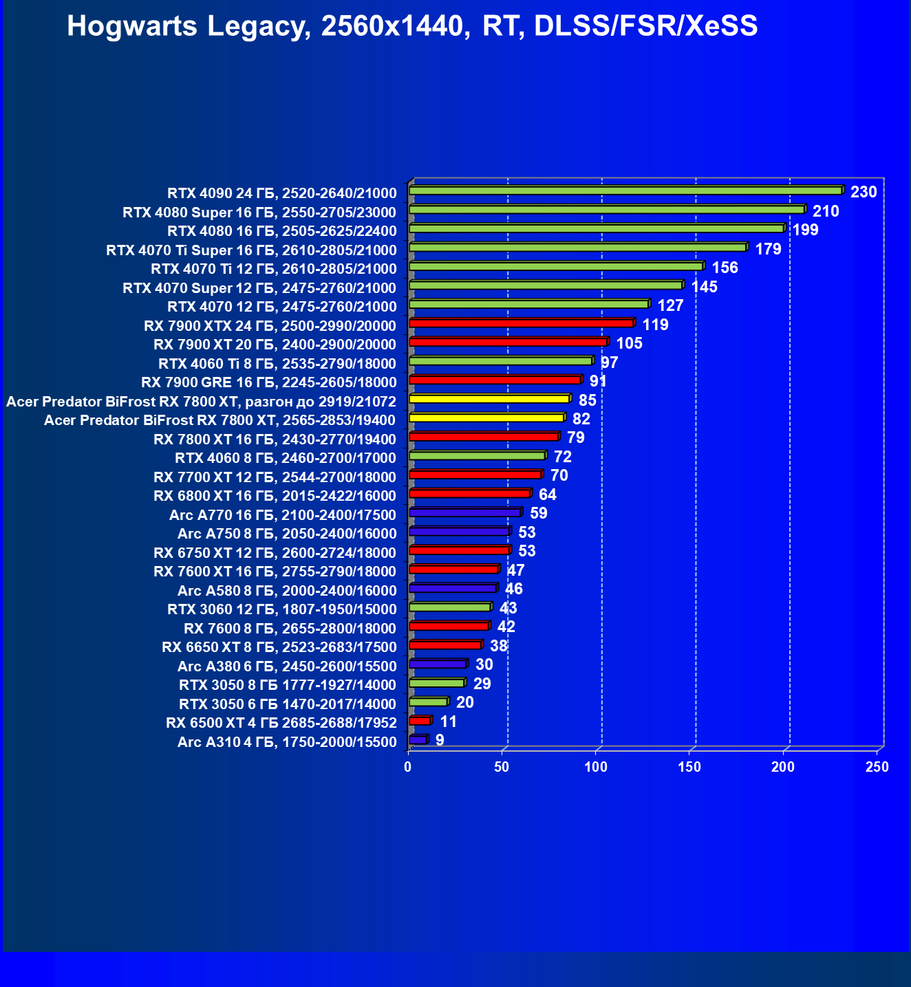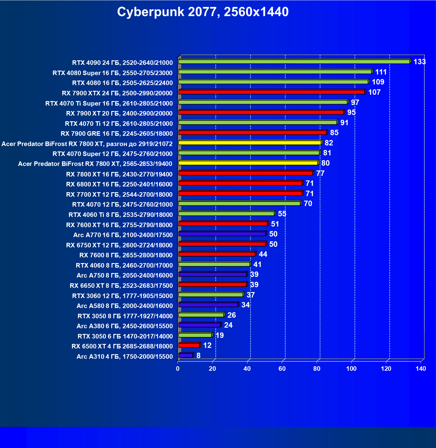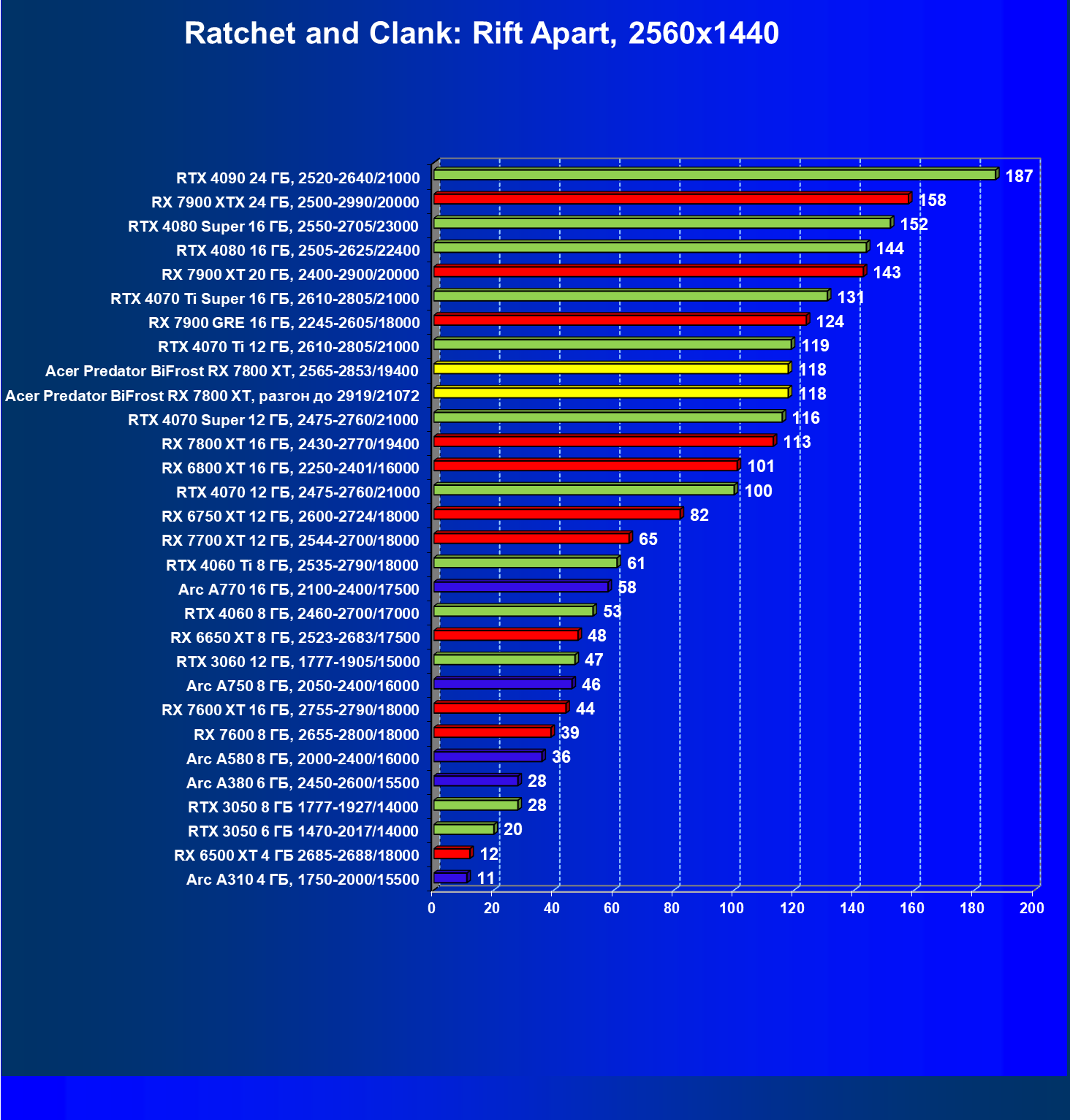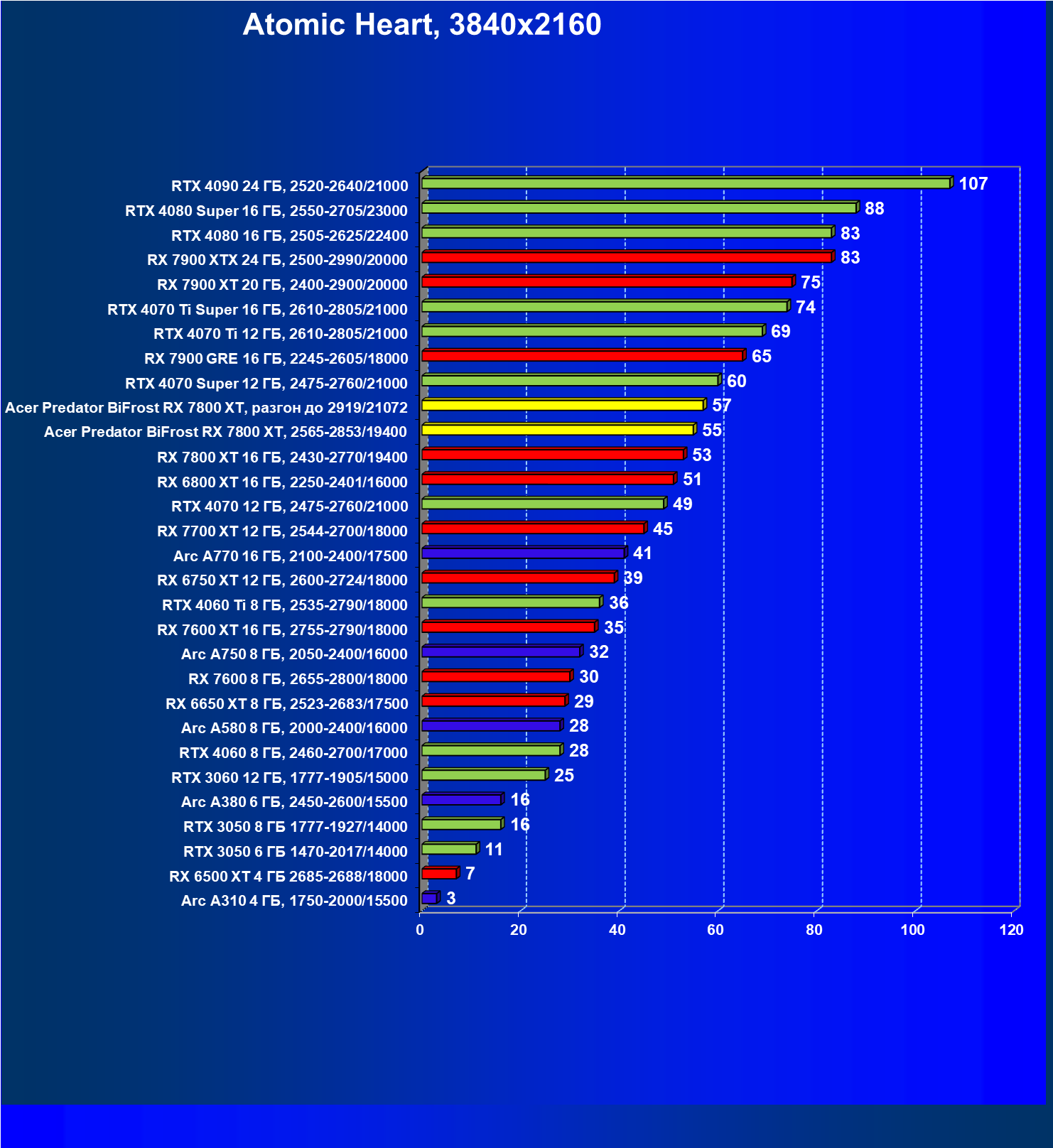| 02 | Acer Predator BiFrost RX 7800 XT, разгон до 2919/21072 | 229 | 1307 | 57 000 |