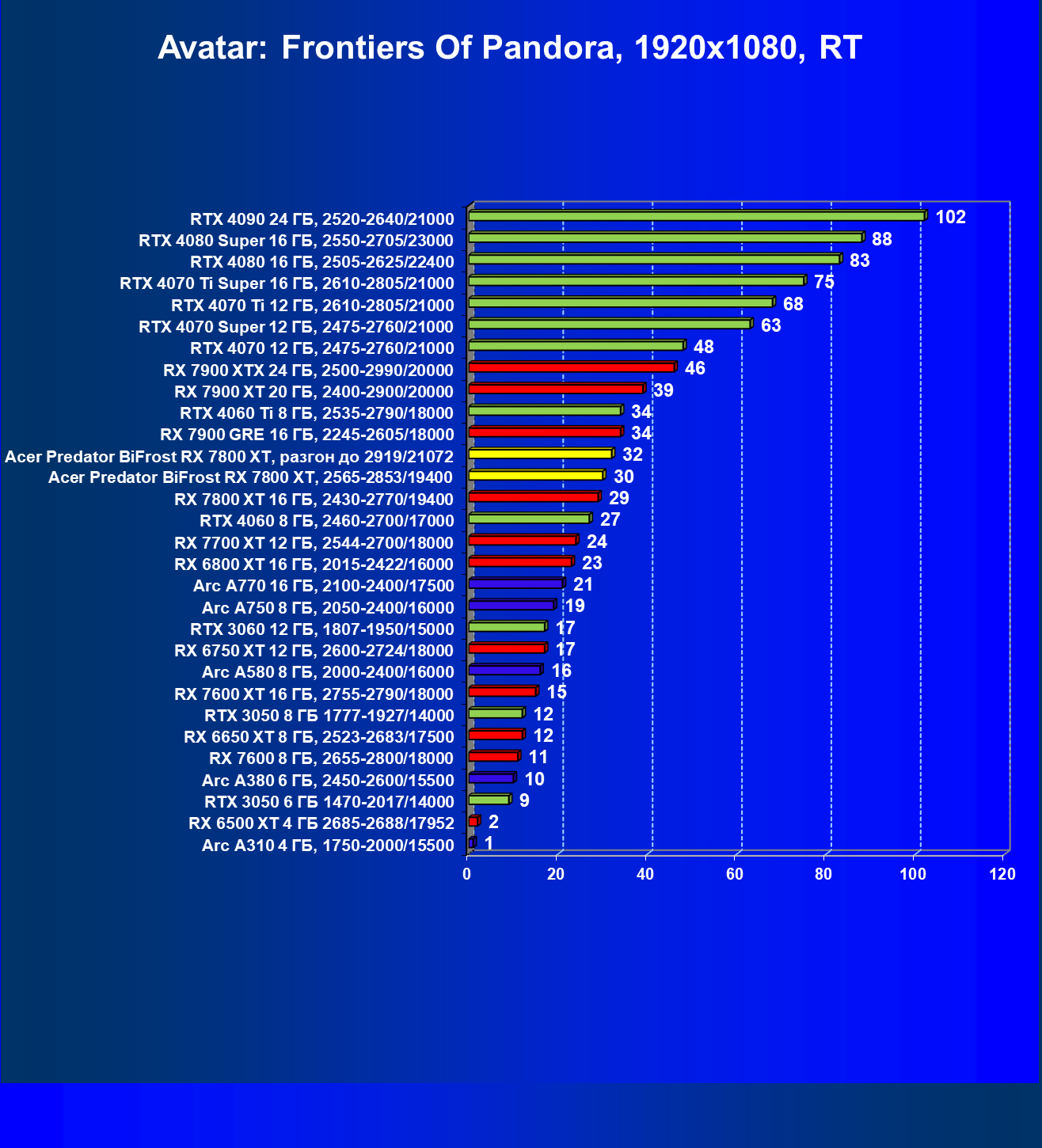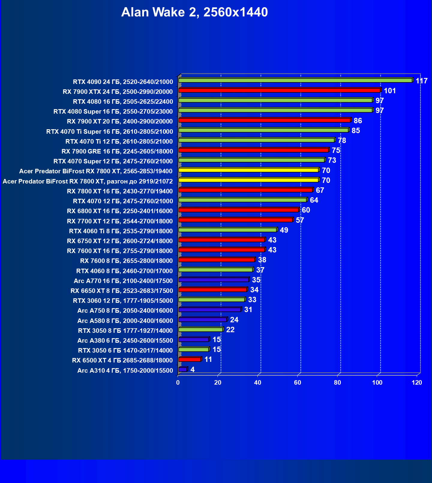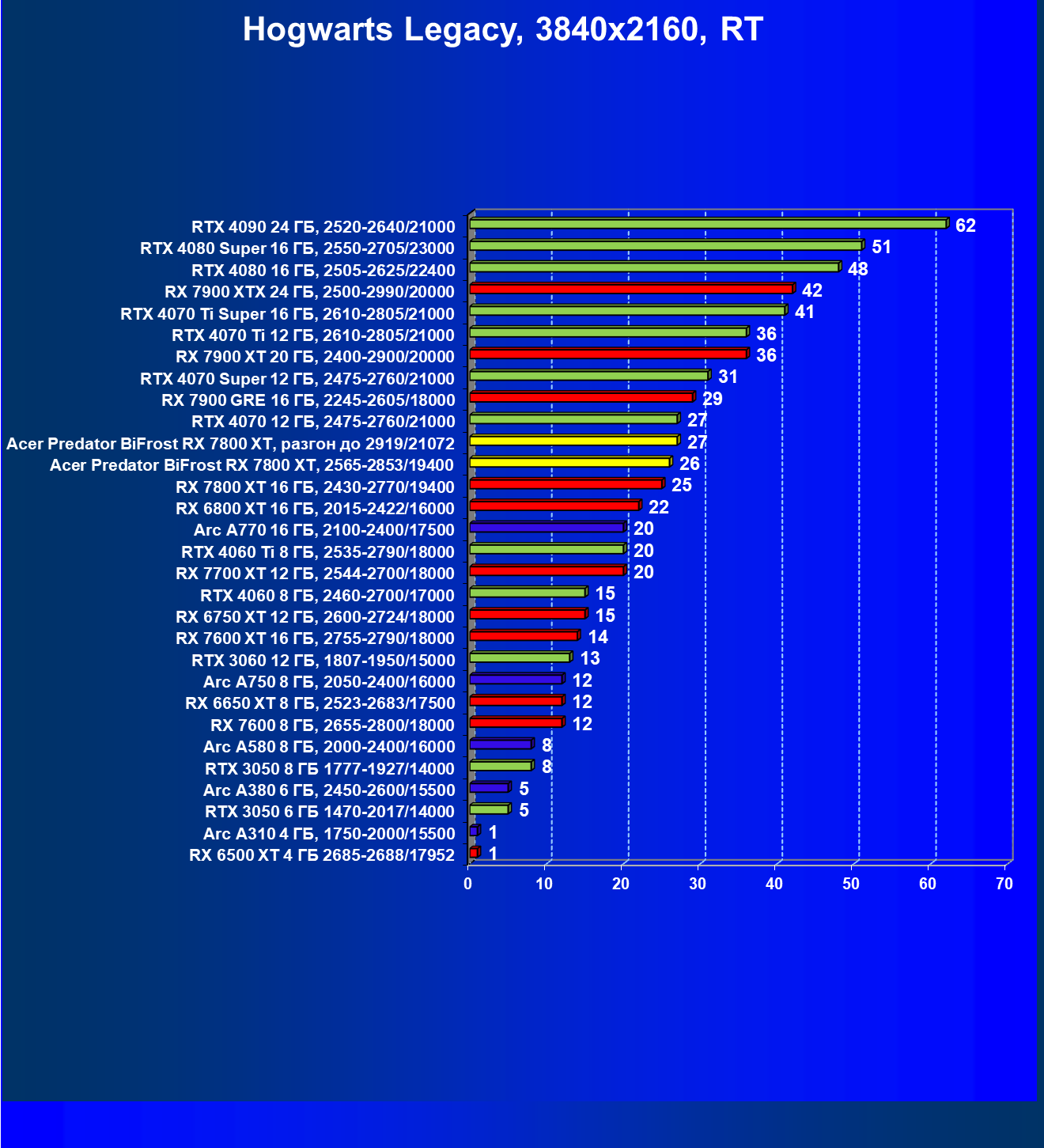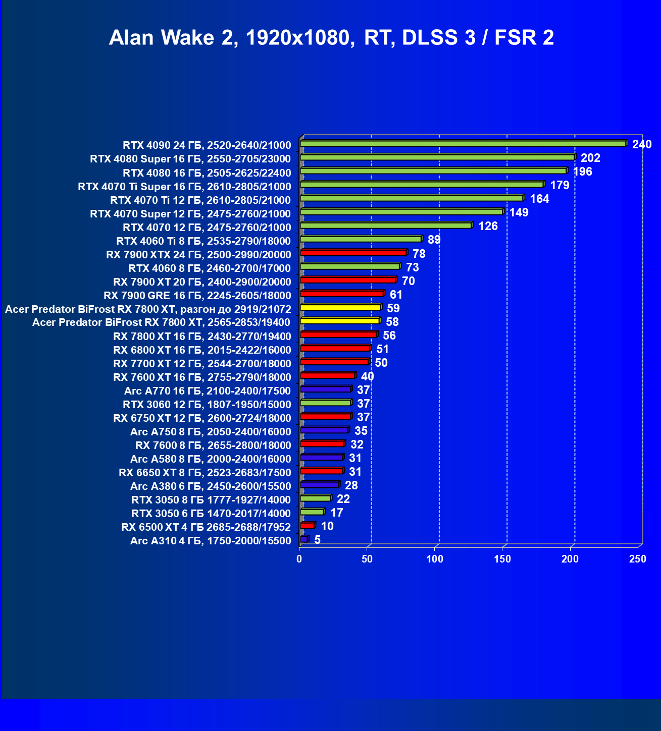 | 02 | Acer Predator BiFrost RX 7800 XT, разгон до 2919/21072 | 229 | 1307 | 57 000 |