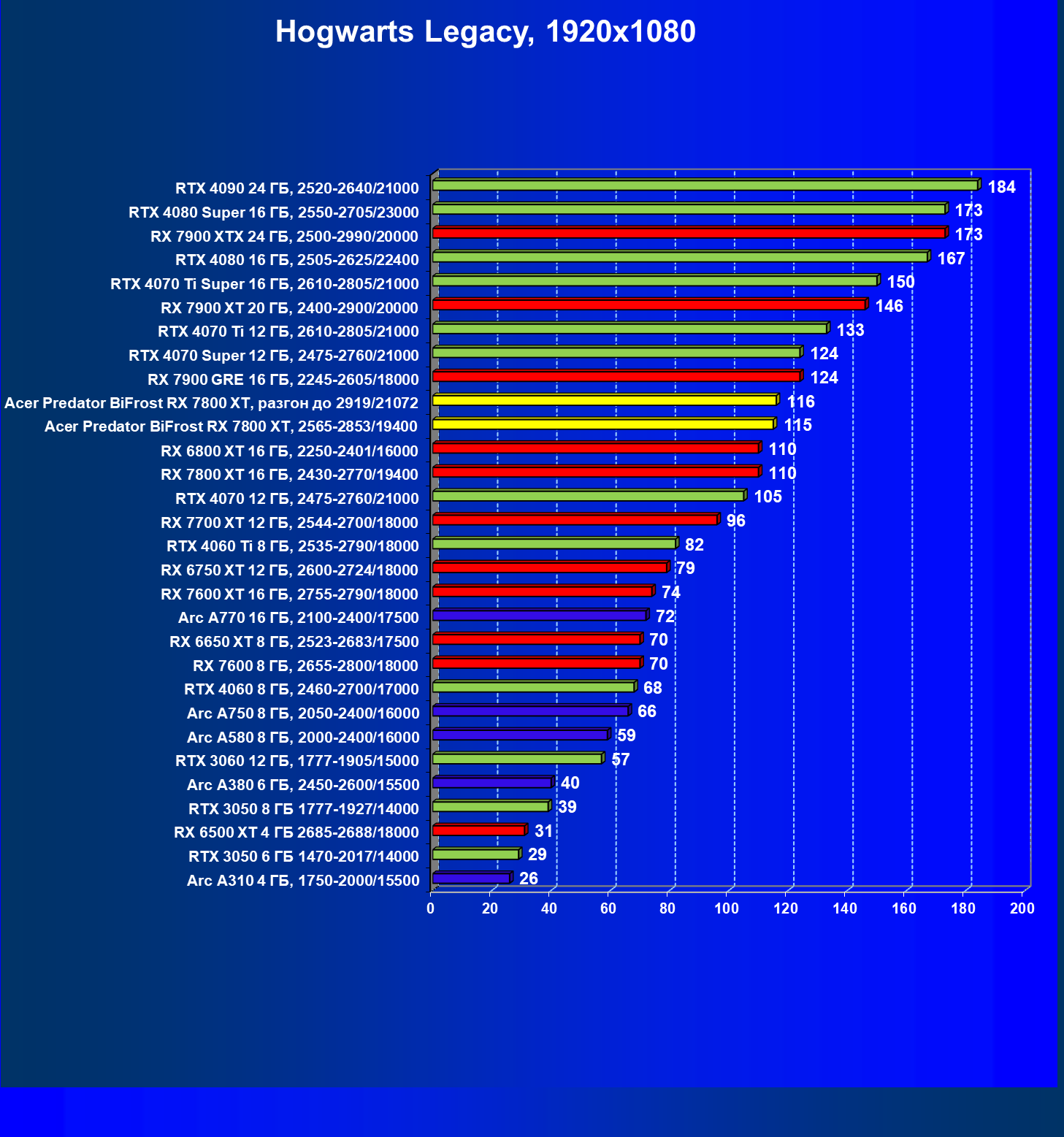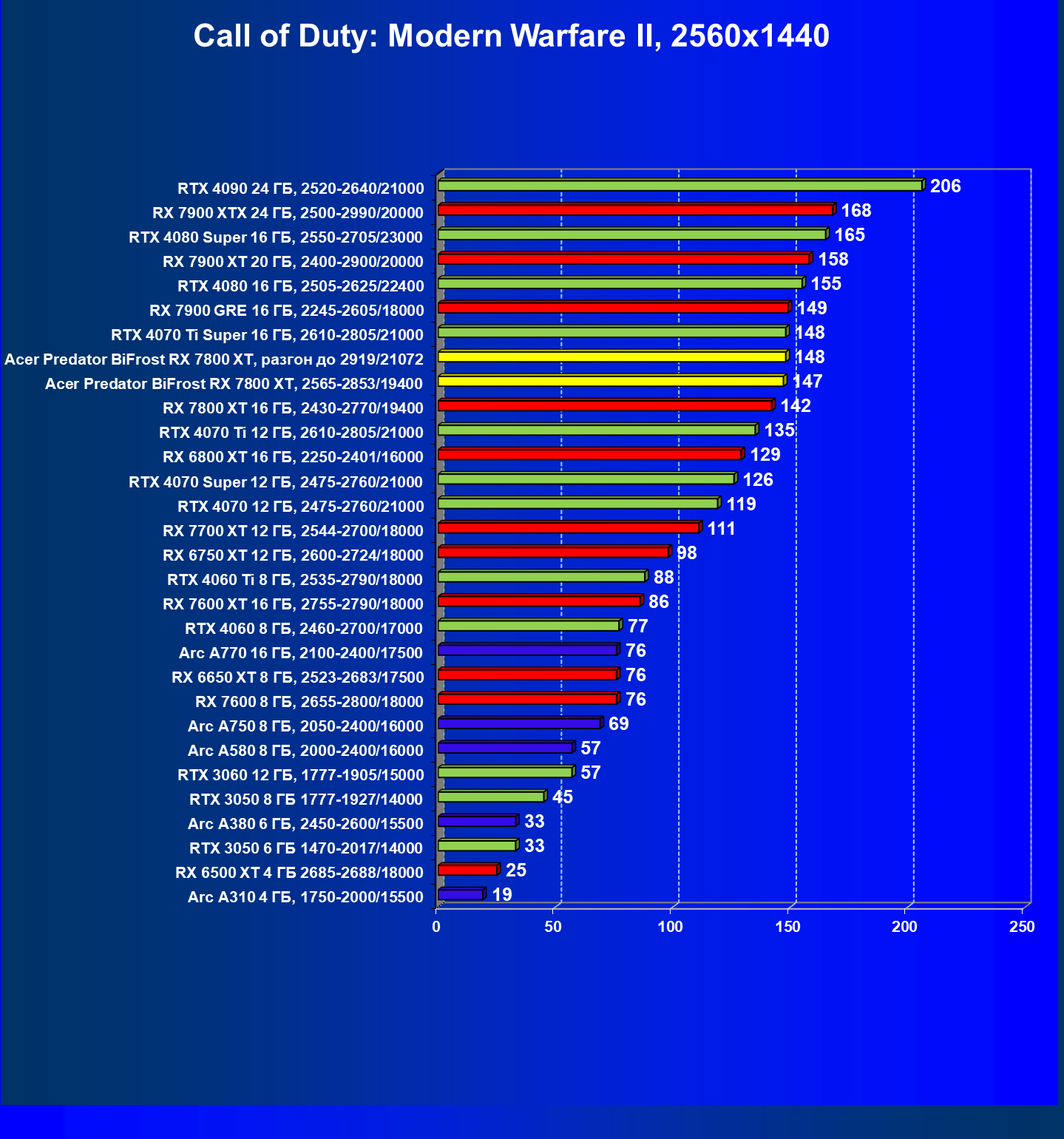 | 12 | RX 7800 XT 16 ГБ, 2430—2770/19400 | 1239 | 217 | 57 000 |