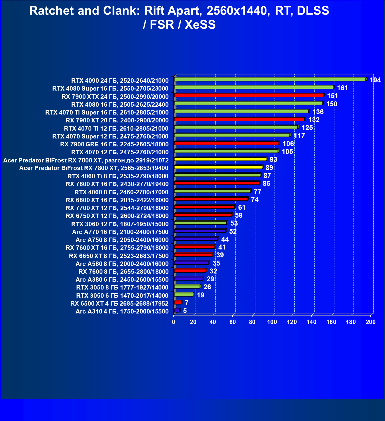 - Вариант рейтинга iXBT.com с включением RT/DLSS/FSR/XeSS