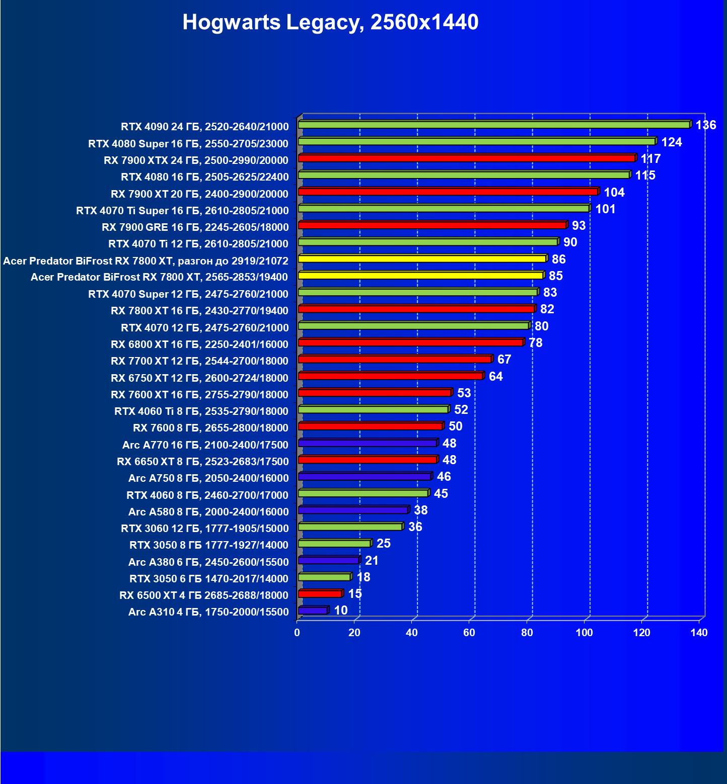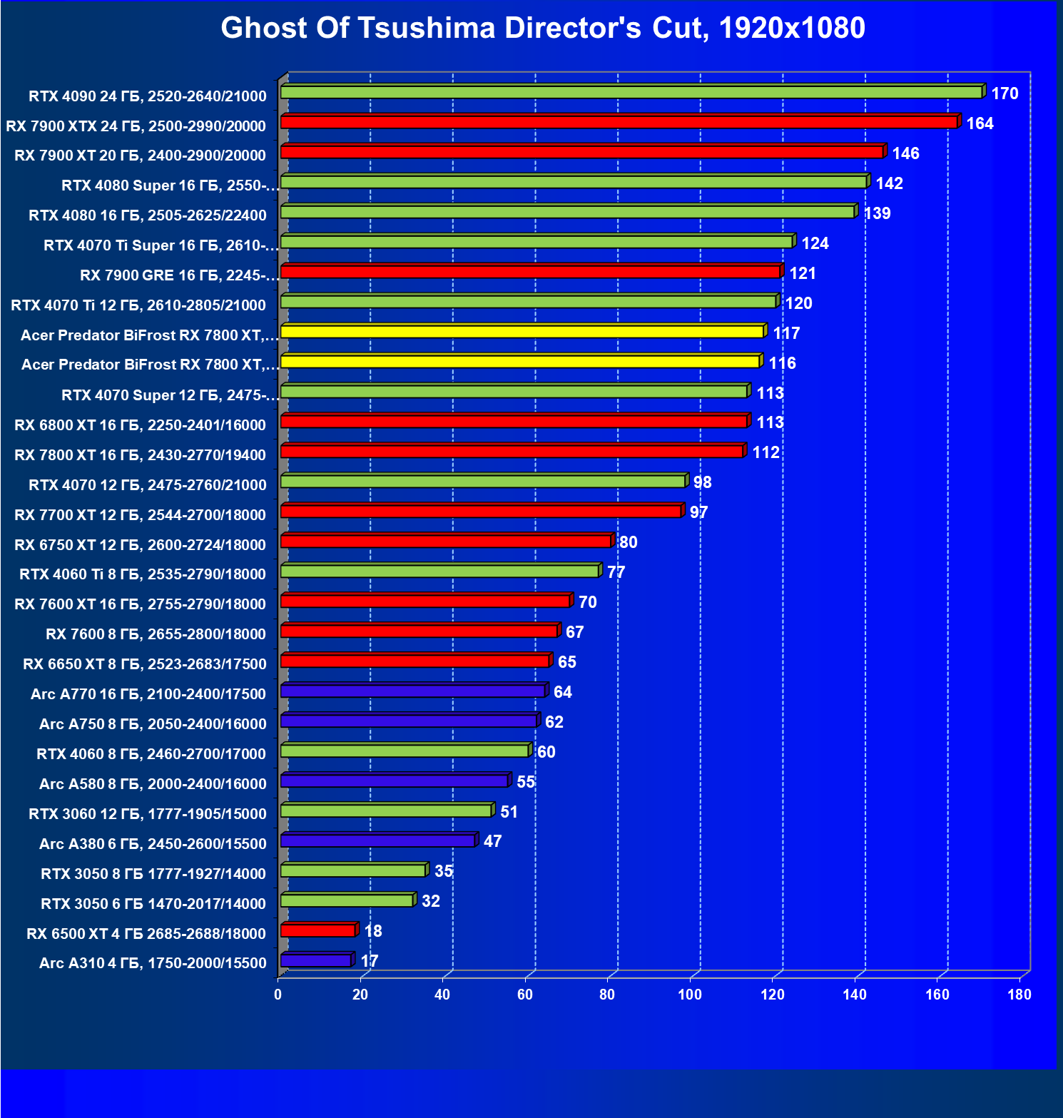 | 14 | RX 7800 XT 16 ГБ, 2430—2770/19400 | 1655 | 290 | 57 000 |