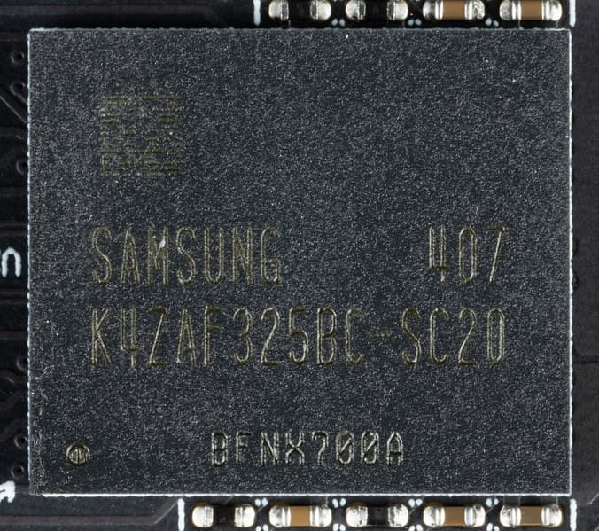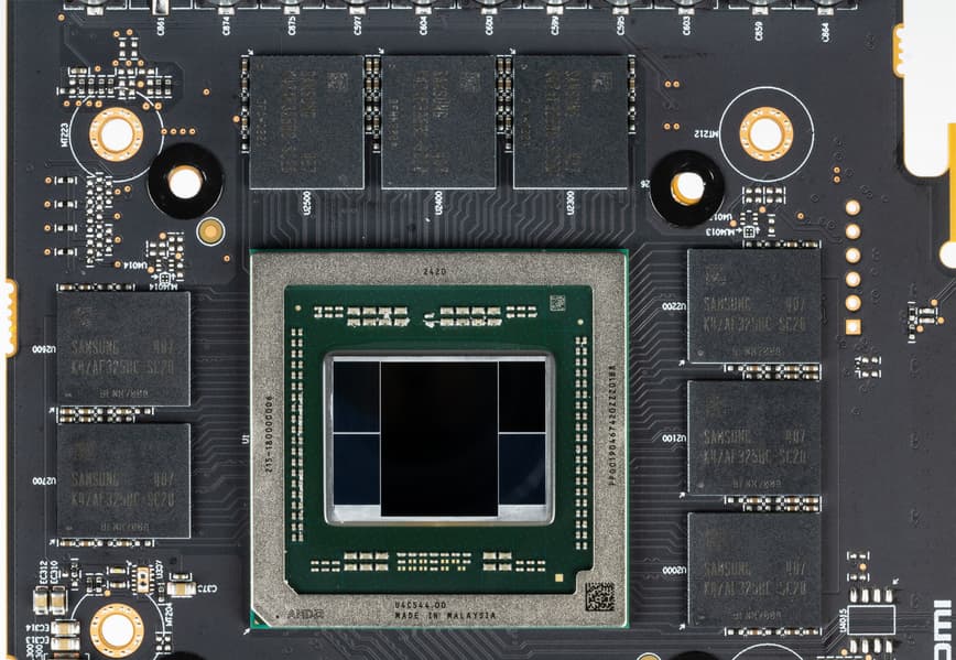 Карта имеет 16 ГБ памяти GDDR6 SDRAM, размещенной в 8 микросхемах по 16 Гбит на лицевой стороне PCB. Микросхемы памяти Samsung (K4ZAF325BC-SC20) рассчитаны на номинальную частоту работы в 2500 (20000) МГц.
