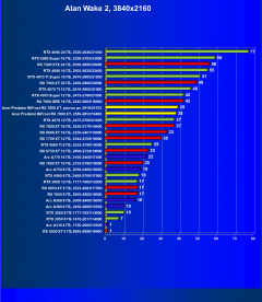В играх с RT и FSR/XeSS полный комфорт Radeon RX 7800 XT обеспечит лишь в разрешениях 1080p и 1440p, а в 4K производительность будет в лучшем случае приемлемая. И конкурировать в подобных играх Radeon RX 7800 XT может лишь с GeForce RTX 4060 Ti — даже GeForce RTX 4070 существенно быстрее за счет поддержки DLSS 3. Да, уже появляются игры с поддержкой FSR 3, где ситуация для Radeon RX 7800 XT (и для всех современных карт AMD) сильно улучшена, однако пока таких игр мало.