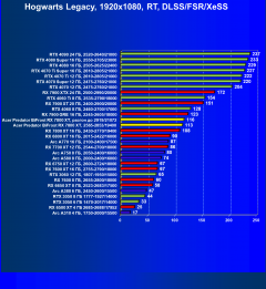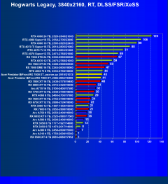Результаты тестов со включенной аппаратной трассировкой лучей и/или DLSS/FSR/XeSS в разрешениях 1920×1080, 2560×1440 и 3840×2160