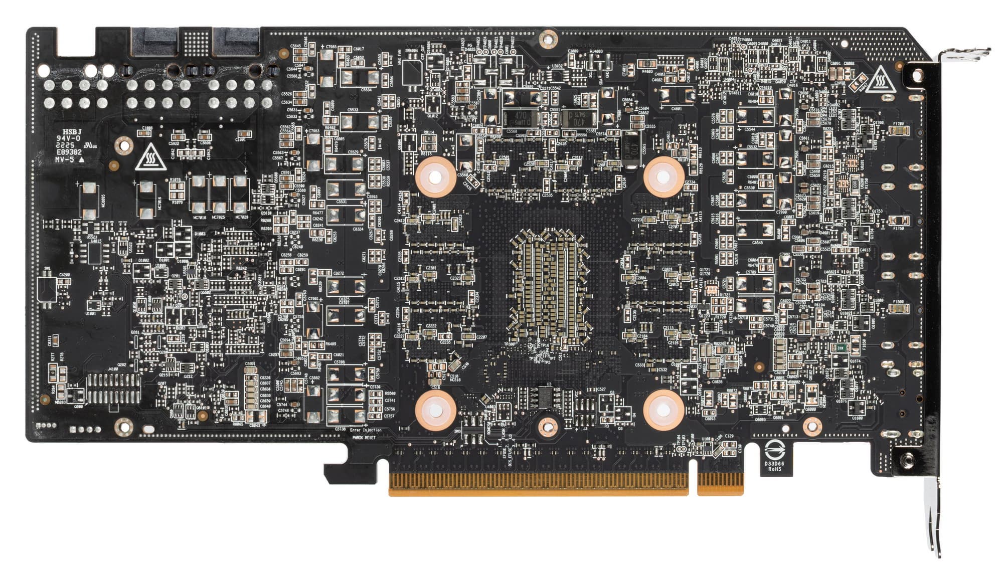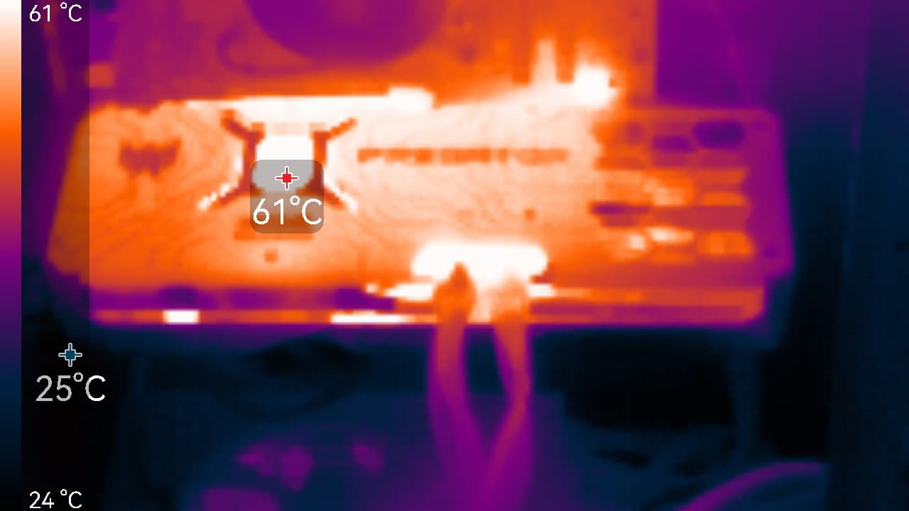 Максимальный нагрев наблюдался в центральной части PCB, около коннекторов питания и около разъема PCIe.