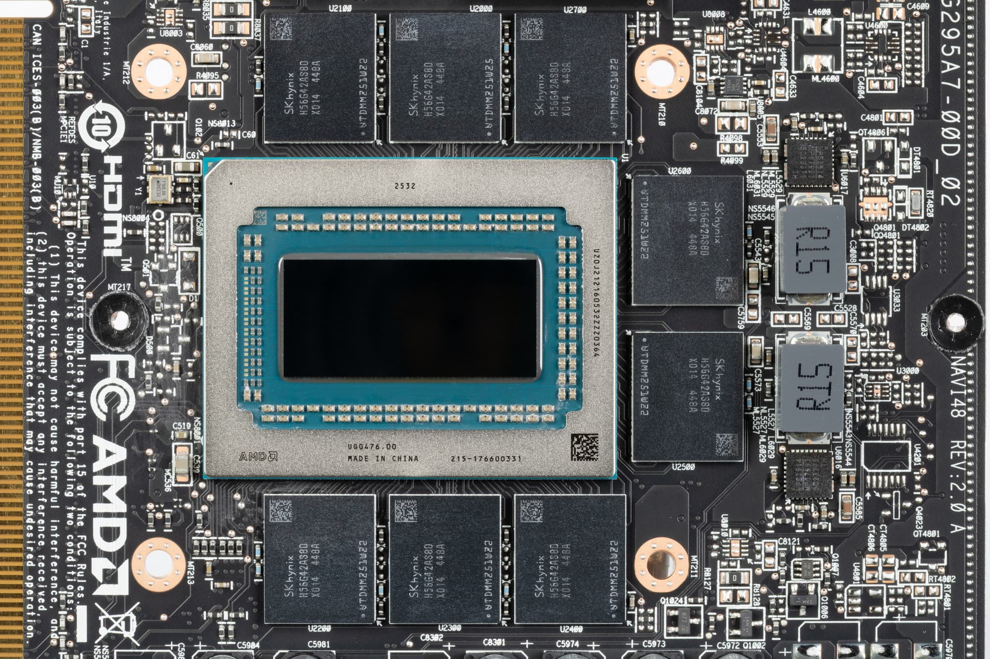 Карта имеет 16 ГБ памяти GDDR6 SDRAM, размещенной в 8 микросхемах по 16 Гбит на лицевой стороне PCB. Микросхемы памяти SK Hynix (H56G42AS8DX014) рассчитаны на номинальную частоту работы в 2500 МГц (эффективная ПСП 20 ГТ/с, или 20 Гбит/с).