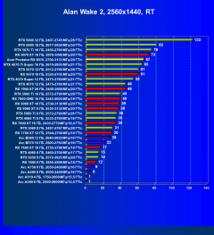 Результаты тестов со включенной аппаратной трассировкой лучей и/или DLSS/FSR/XeSS в разрешениях 1920×1080, 2560×1440 и 3840×2160