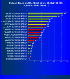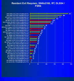 В играх с активным использованием трассировки лучей и разными видами динамического масштабирования (FSR/XeSS) Radeon RX 9070 находится на одном уровне с GeForce RTX 4070 Ti Super и сильно выше, нежели Radeon RX 7900 XT. В разрешениях до 2.5K включительно он также позволяет получить хороший комфорт в играх на высоких настройках графики, а во многих играх аналогичный комфорт будет и в 4K, однако использование трассировки лучей надо обязательно сочетать с технологиями динамического масштабирования.