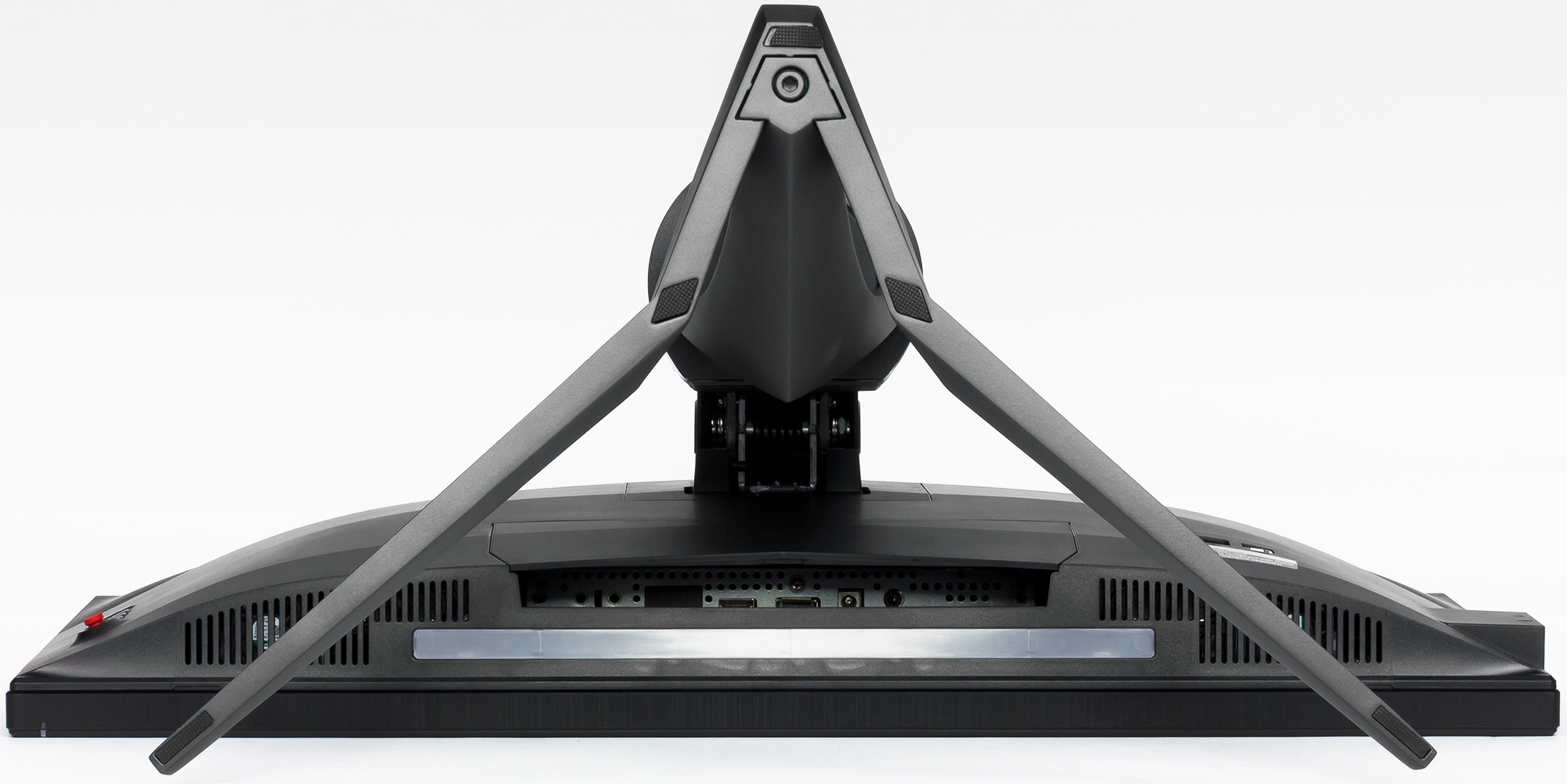 Сверху на скошенных гранях задней панели — вентиляционная решетка. За ней также можно рассмотреть светорассеиватель из полупрозрачного пластика. Для подсветки в меню монитора можно выбрать несколько статичных и динамичных многоцветных вариантов свечения.