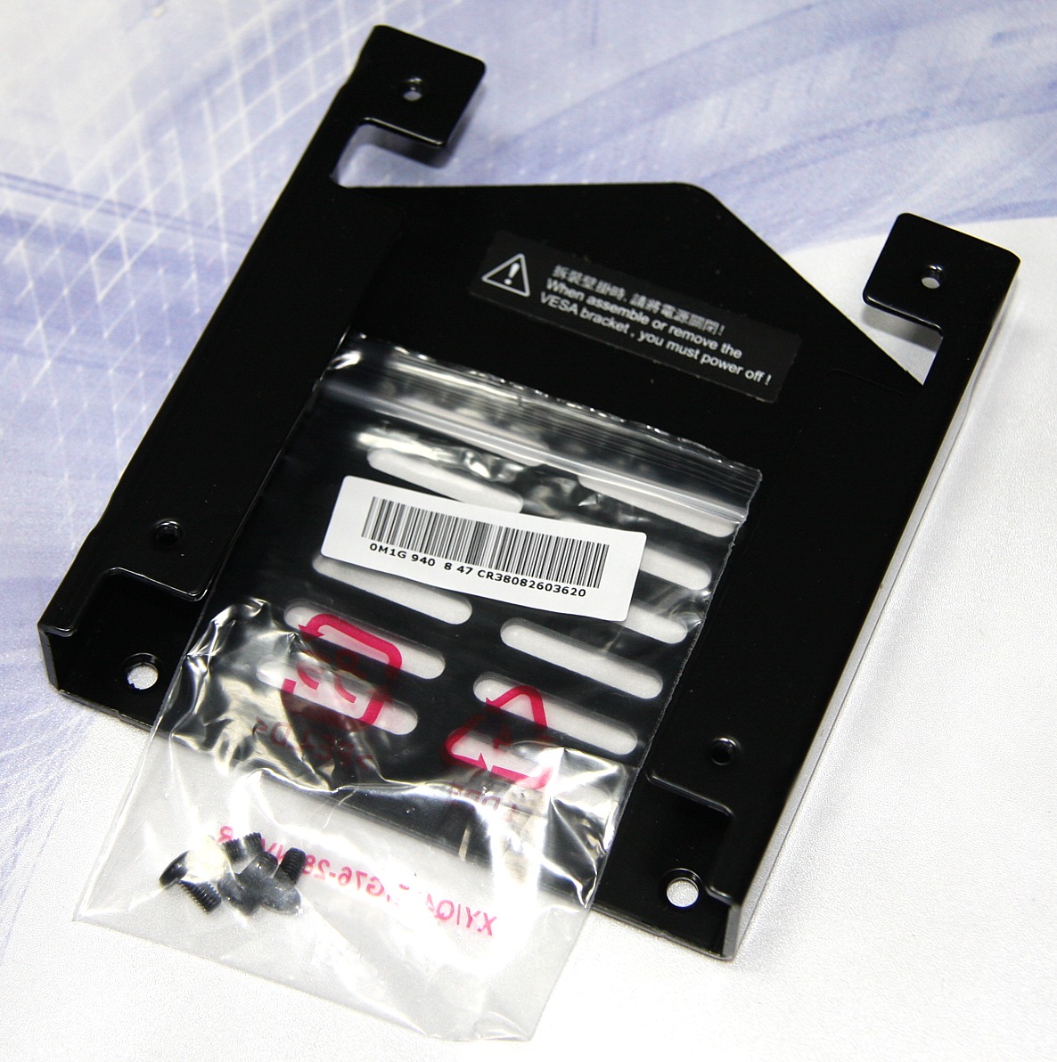 При необходимости можно снять декоративные пластиковые щитки, отсоединить подставку от блока экрана, прикрутить винтами адаптер с резьбовыми отверстиями по углам квадрата со стороной 100 мм и закрепить монитор на VESA-совместимом кронштейне.