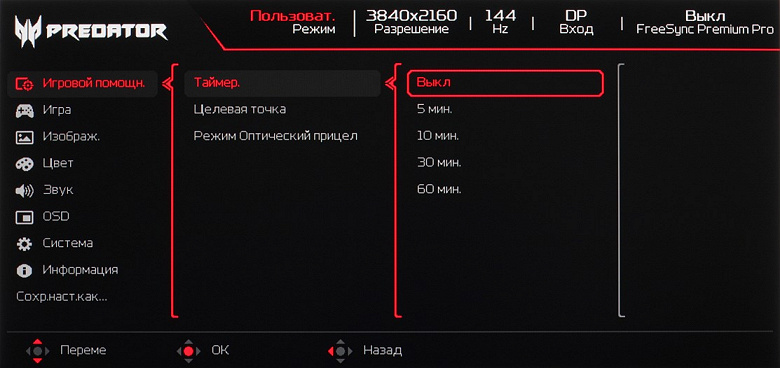 Из дополнительных возможностей присутствуют три «геймерские» функции: вывод на экране счетчика частоты кадров, перекрестия прицела выбранного типа и цвета (красного, белого, зеленого или Авто, в котором цвет прицела автоматически меняется, чтобы быть контрастным на любом фоне), таймера с обратным отсчетом от фиксированных значений. Положение на экране перекрестия можно менять, и выводиться может все одновременно.