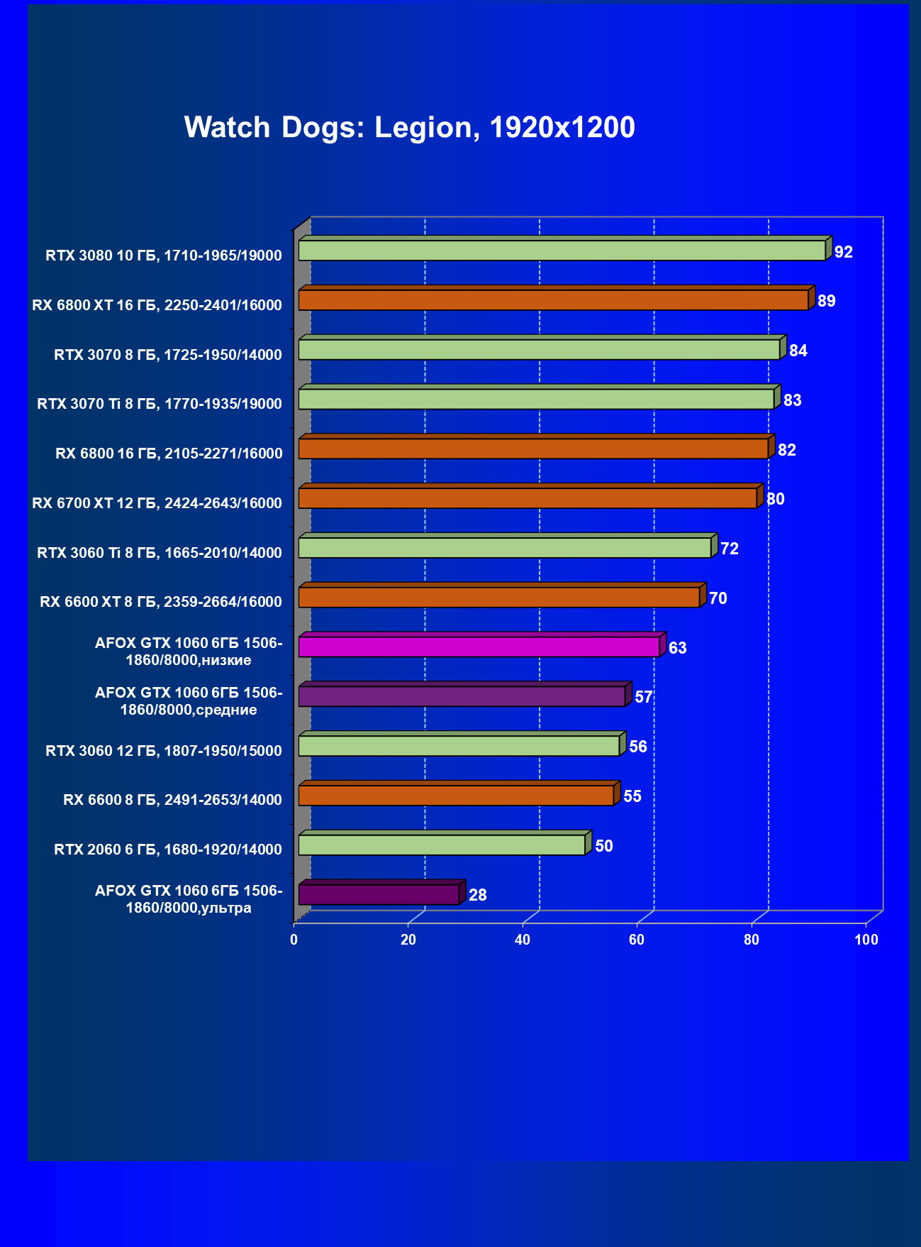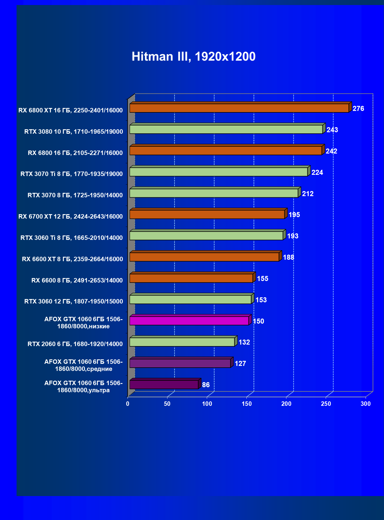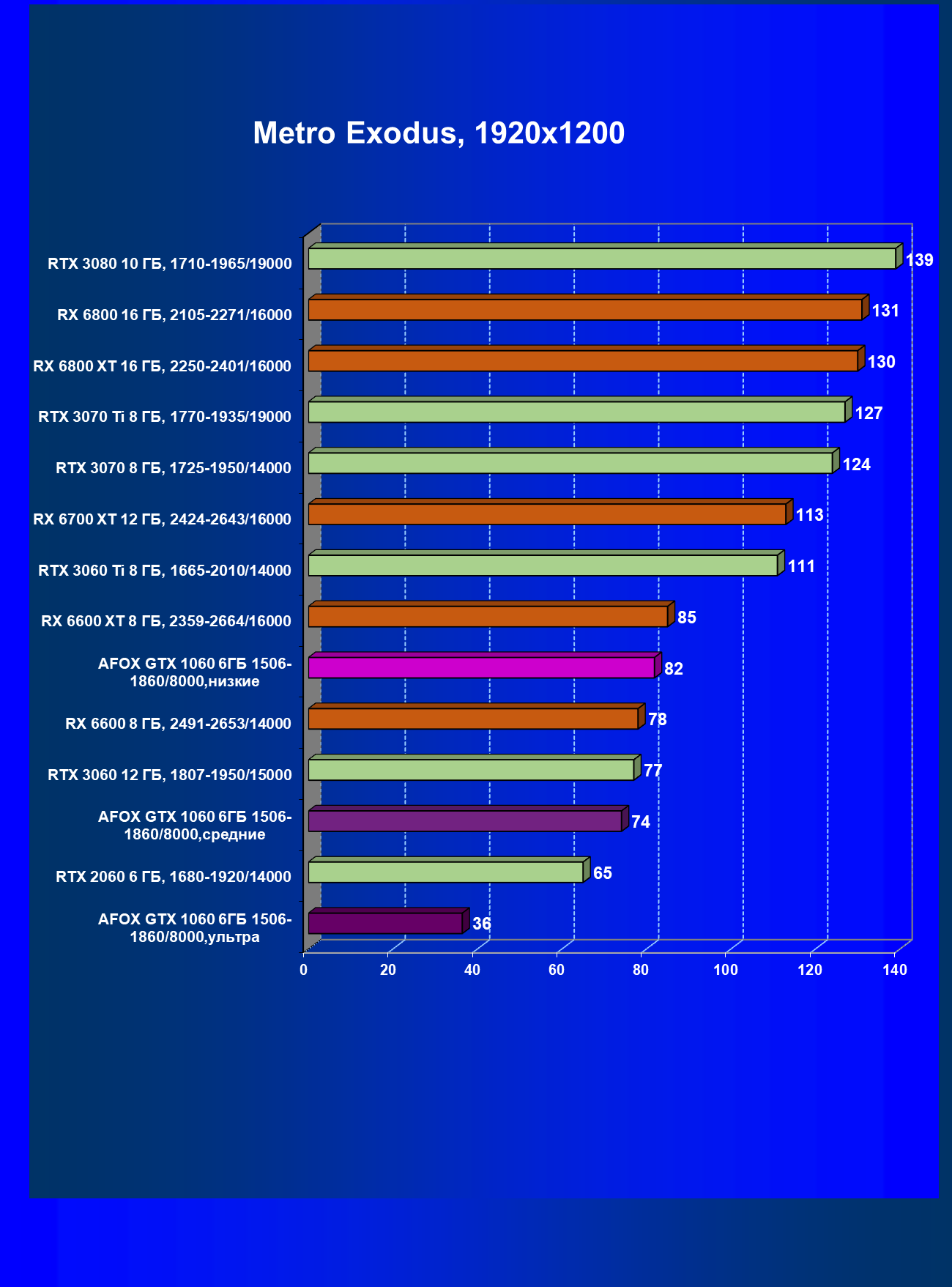 | 02 | Afox GTX 1060 6ГБ 1506—1860/8000, средние | 25 | 96 | 38 000 |