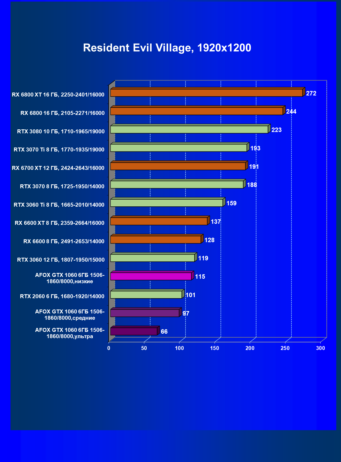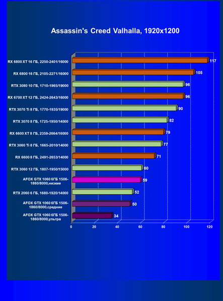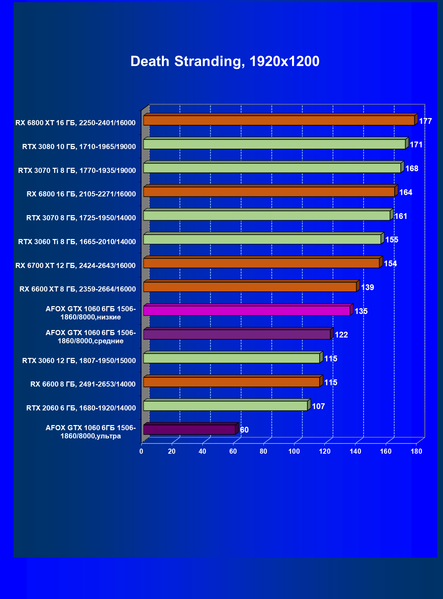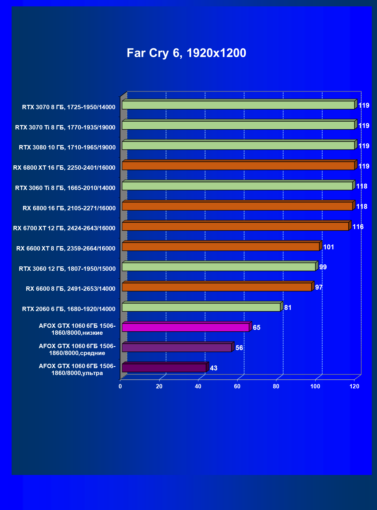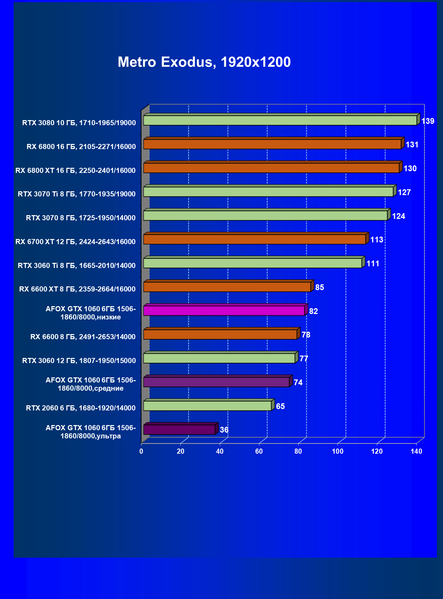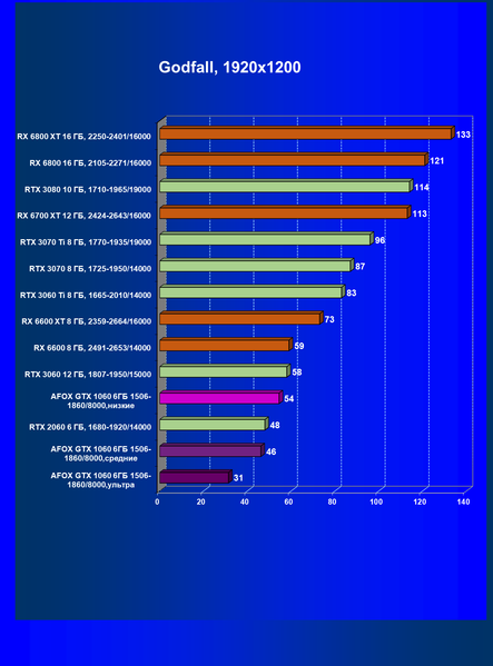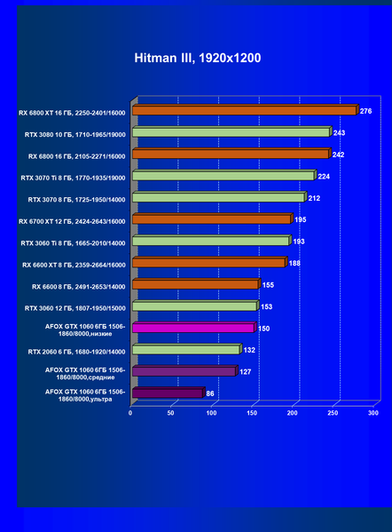 | 09 | Afox GTX 1060 6ГБ 1506—1860/8000, ультра | 16 | 59 | 38 000 |