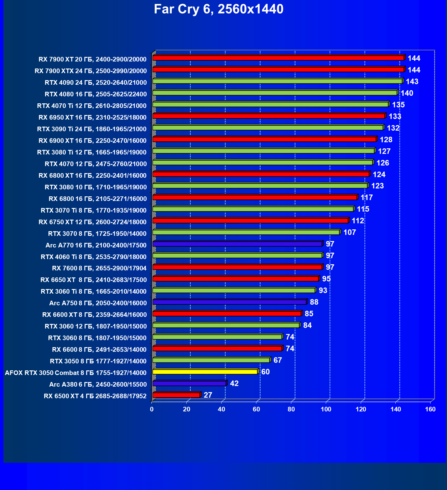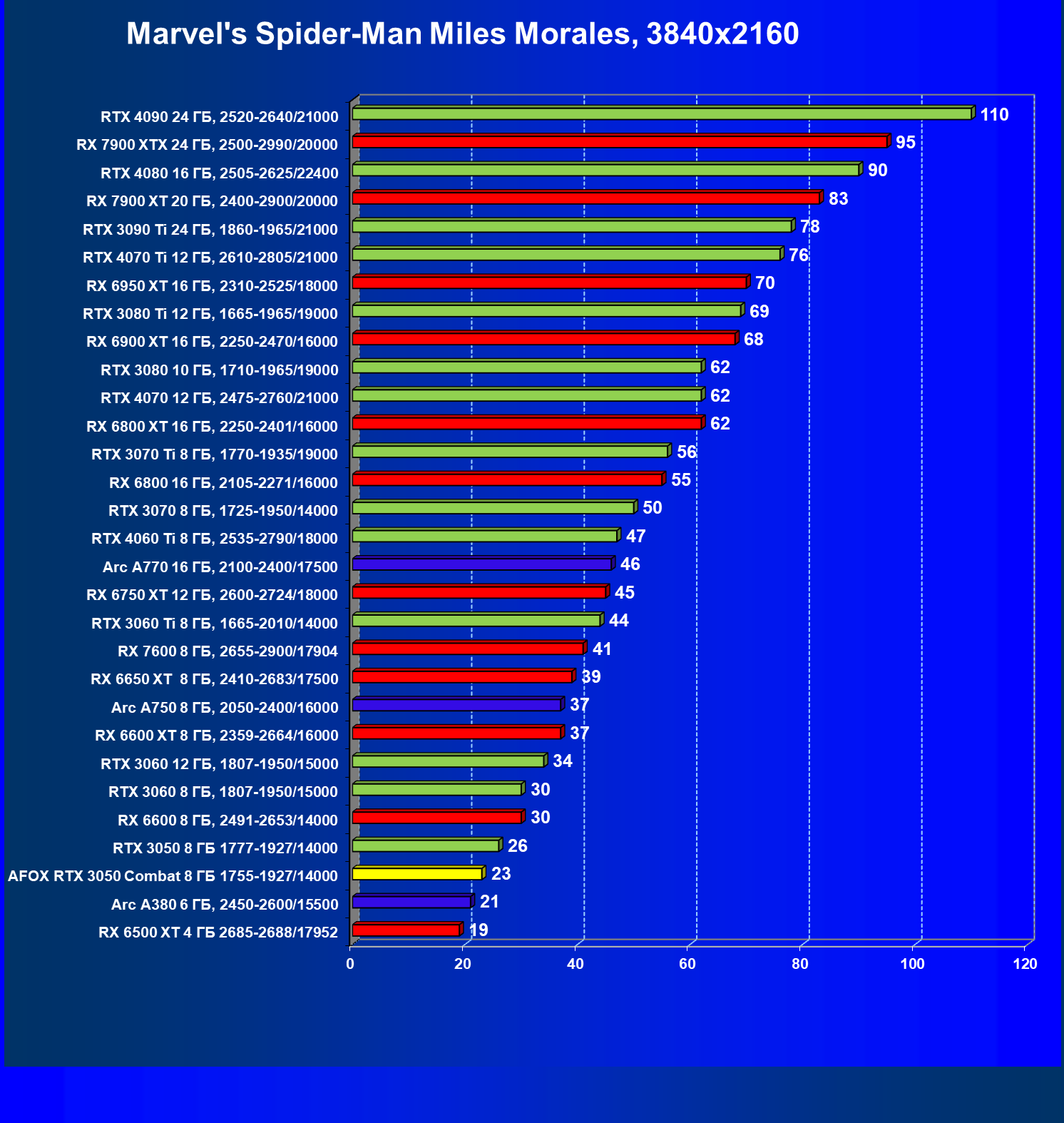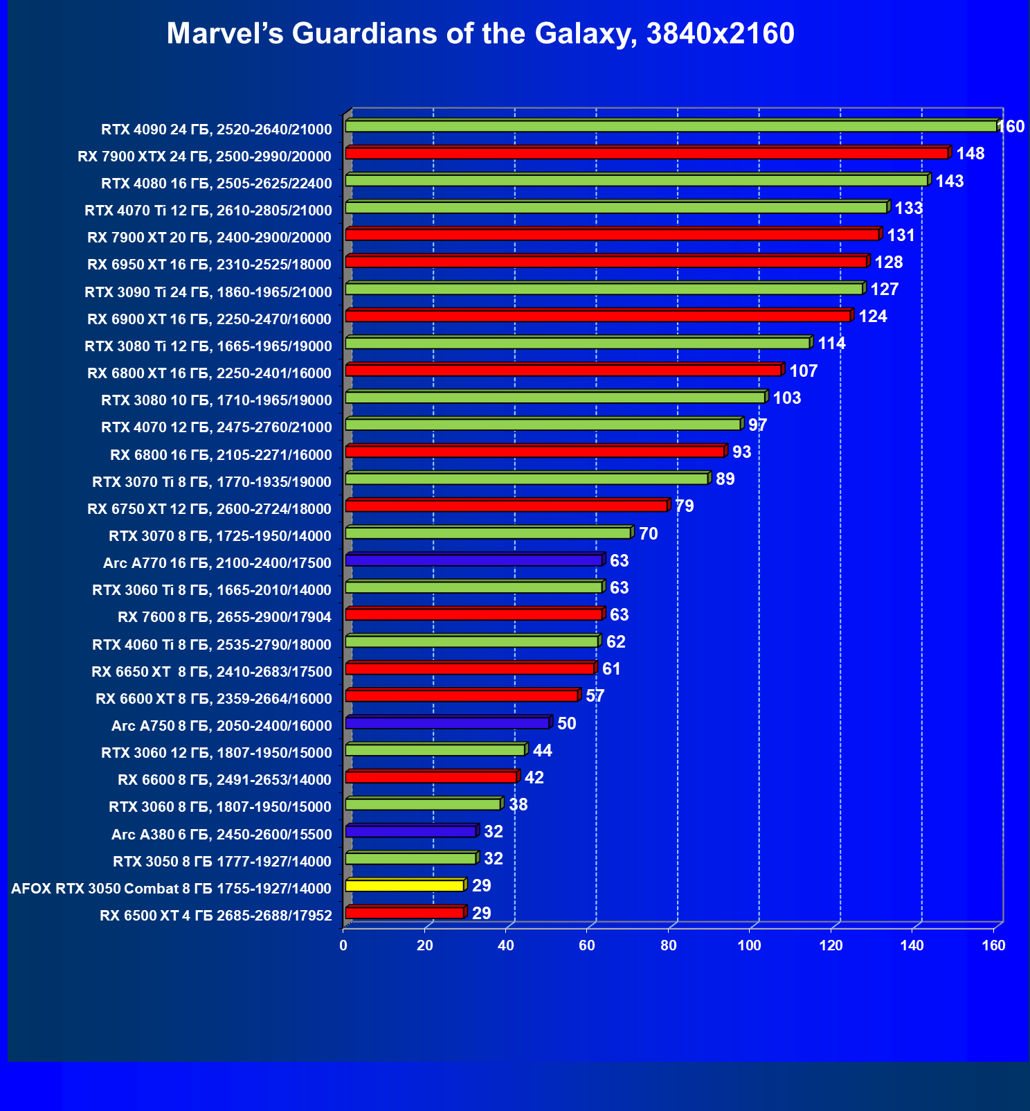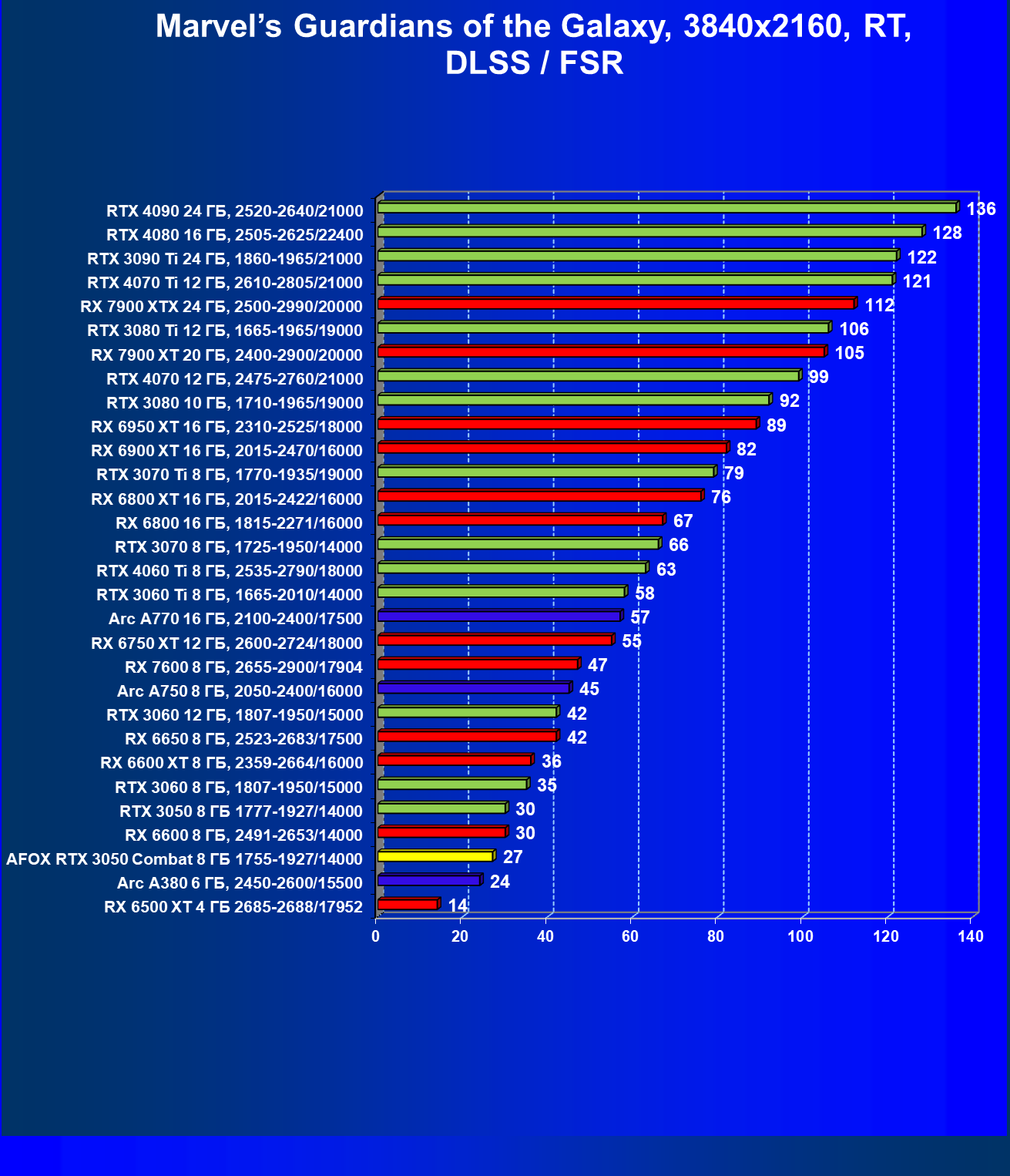 | 29 | Arc A380 6 ГБ, 2450—2600/15500 | 147 | 105 | 14 000 |