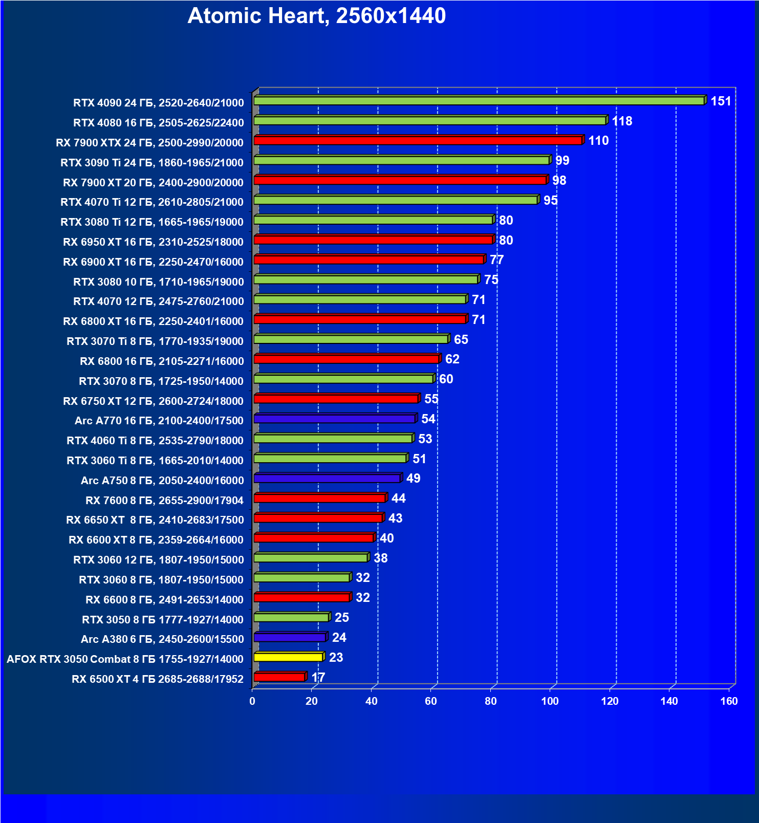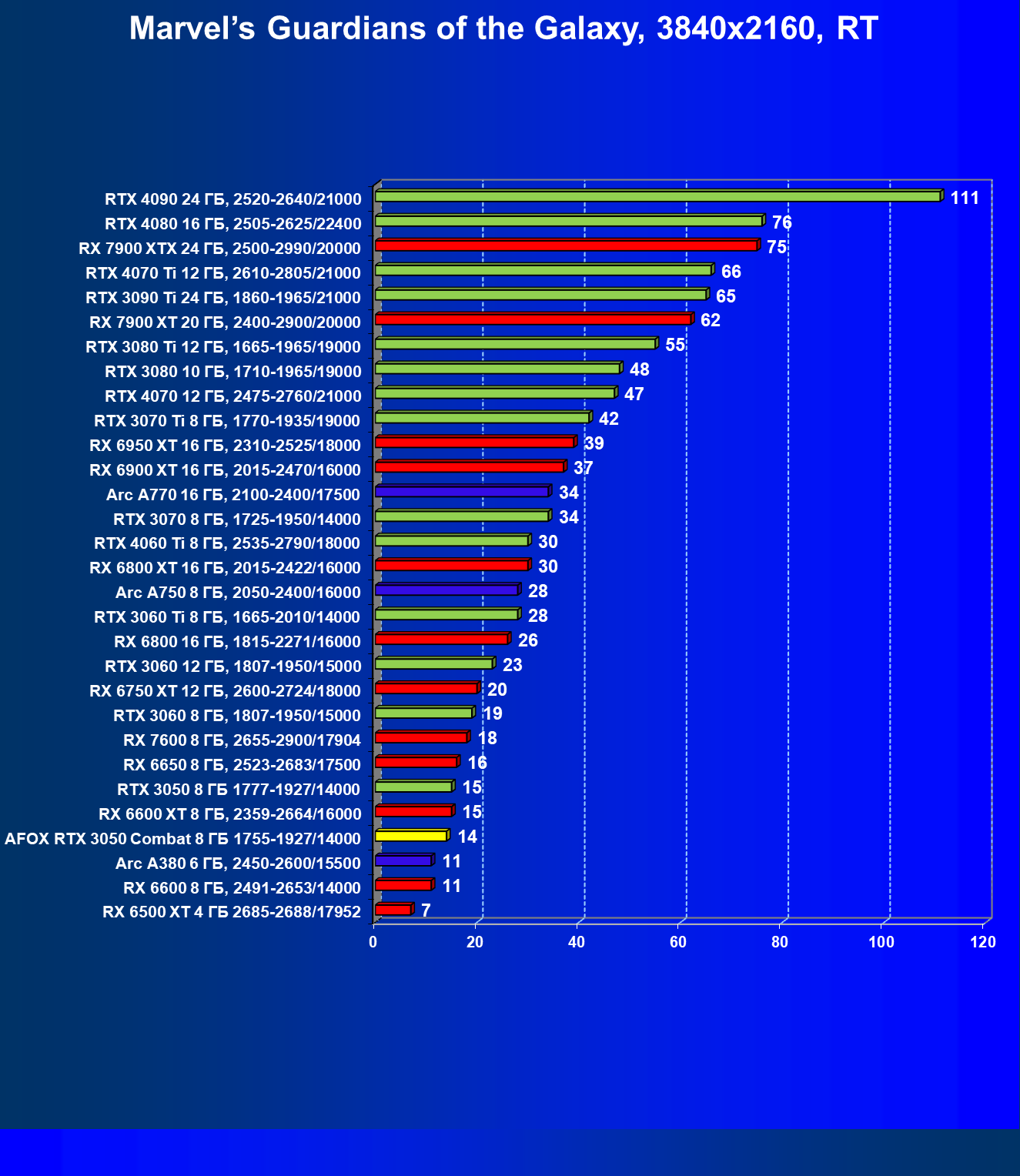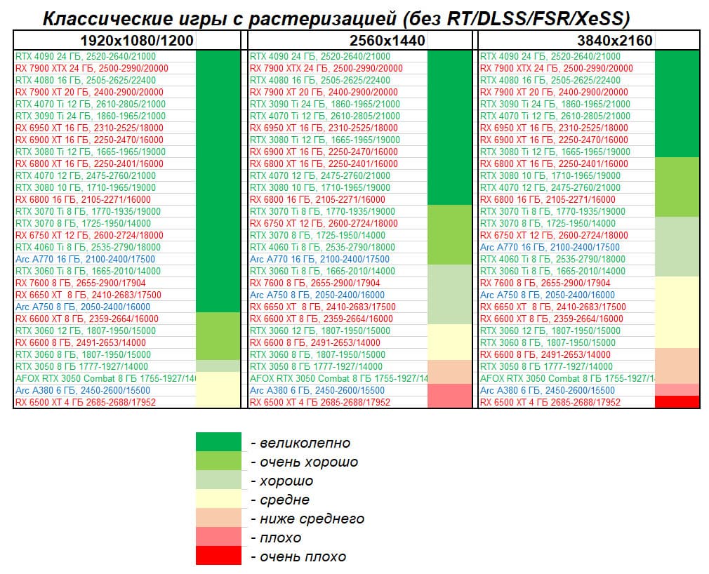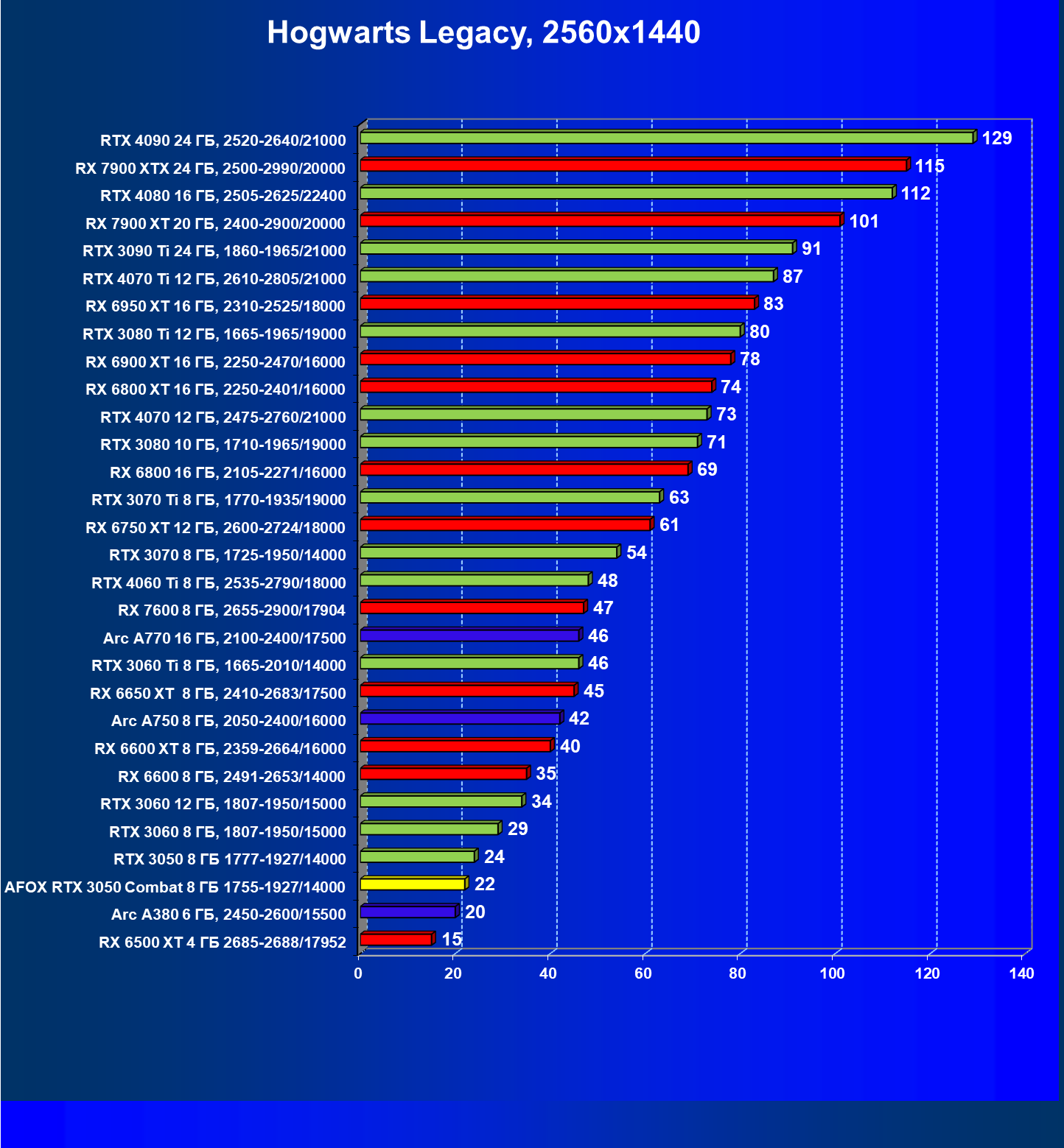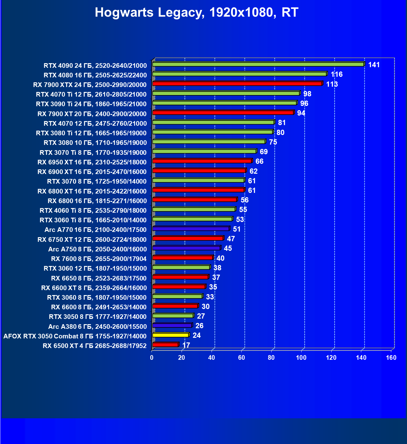 | 29 | Arc A380 6 ГБ, 2450—2600/15500 | 147 | 105 | 14 000 |