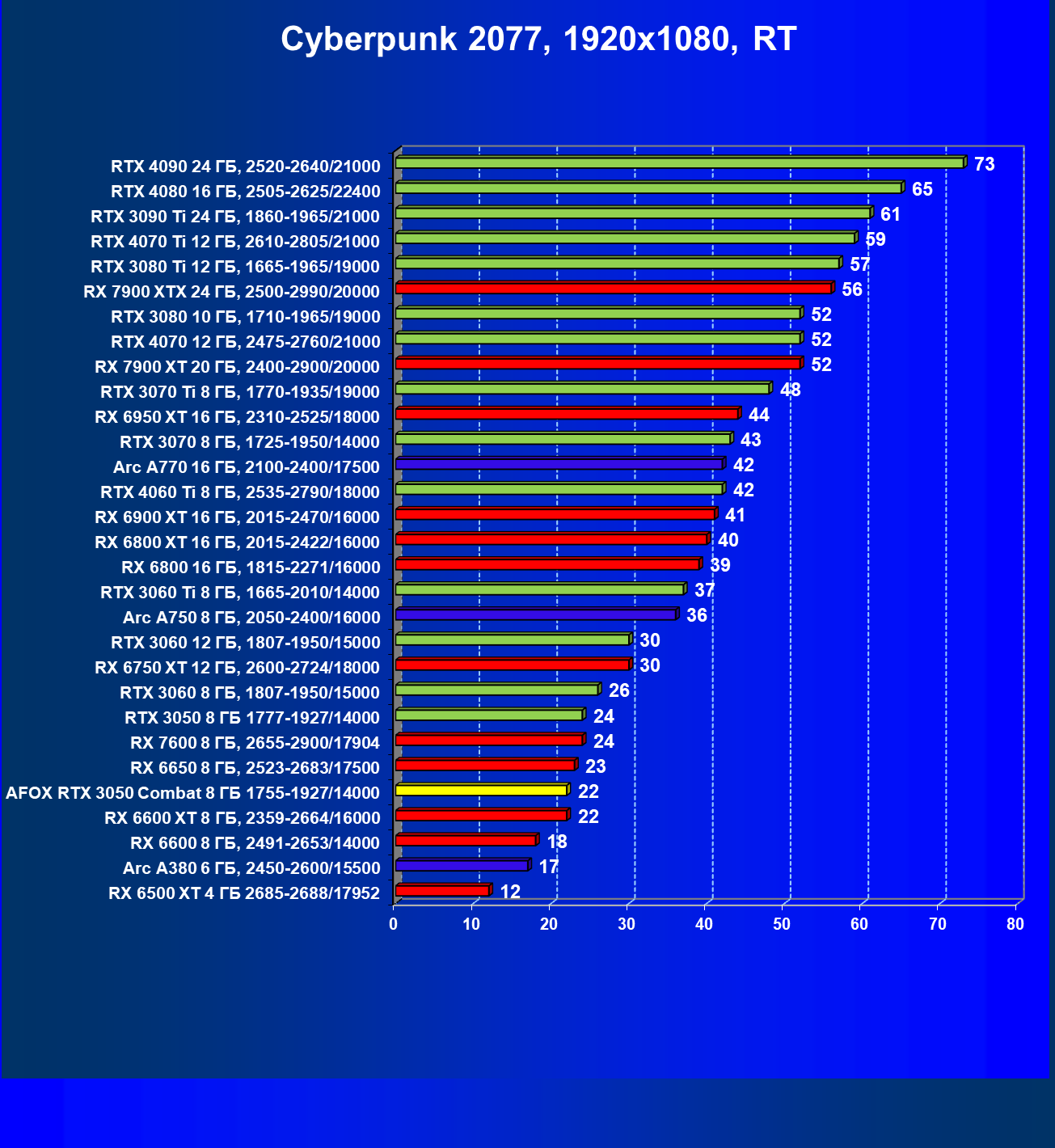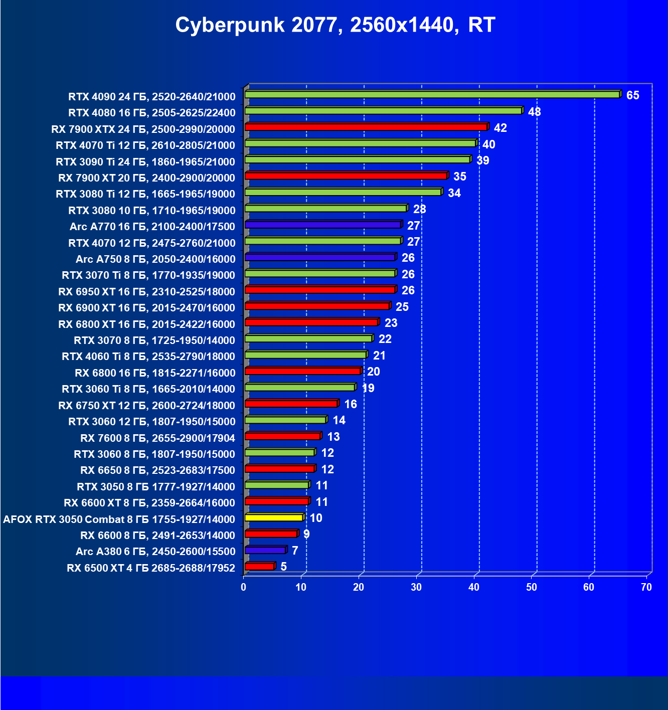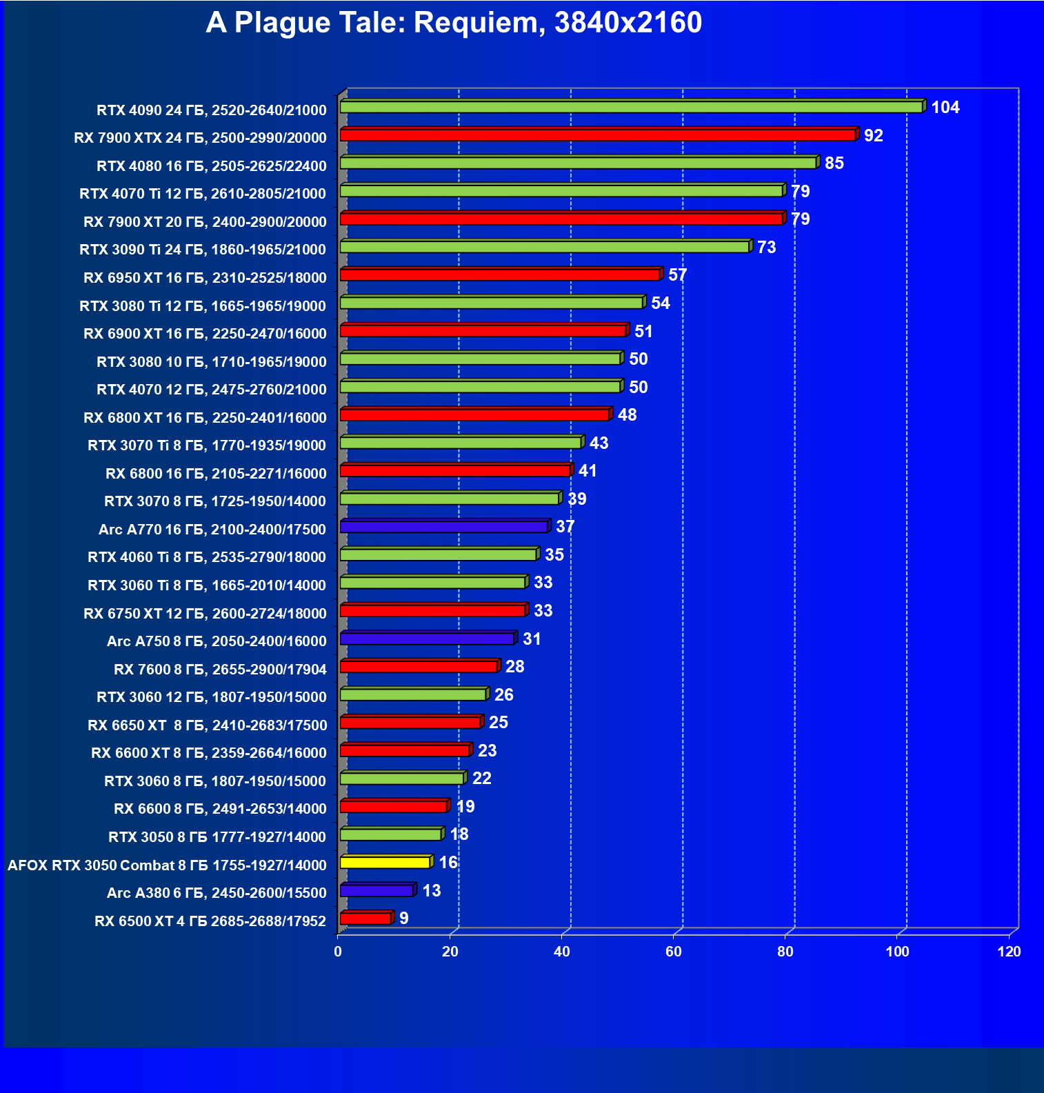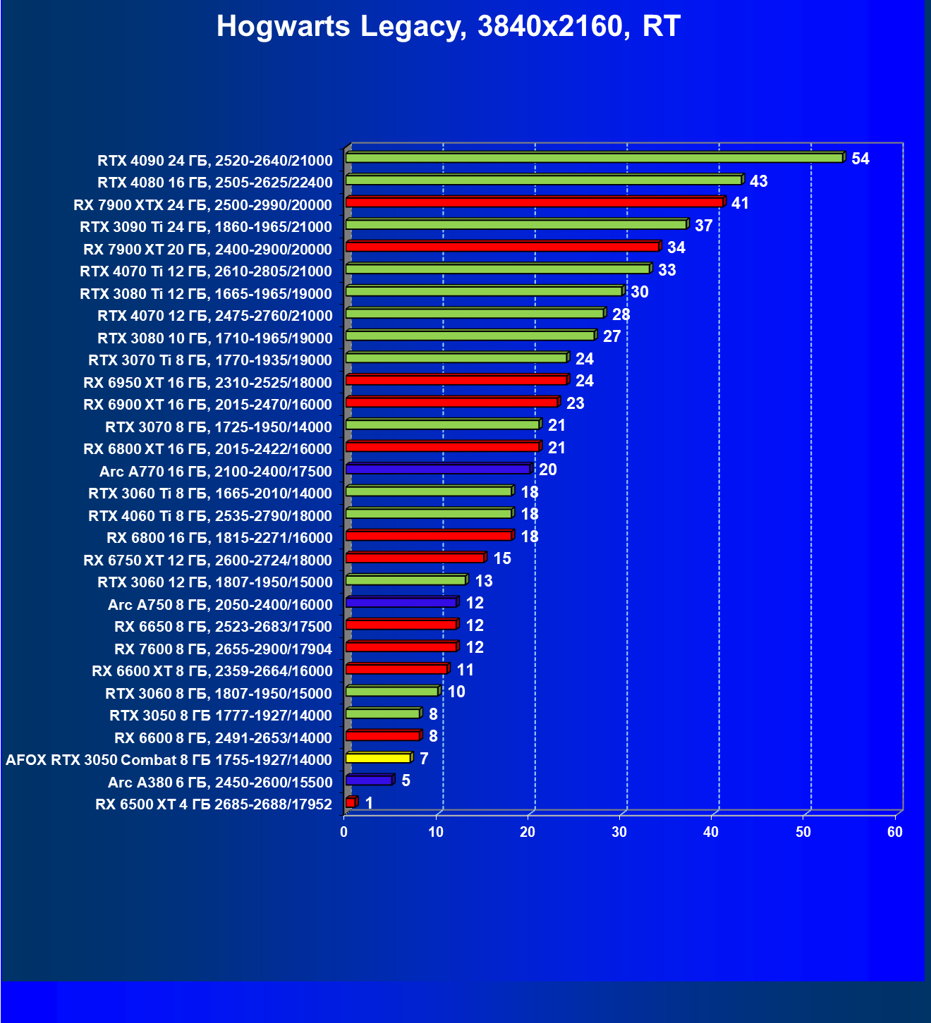| 29 | Arc A380 6 ГБ, 2450—2600/15500 | 147 | 105 | 14 000 |