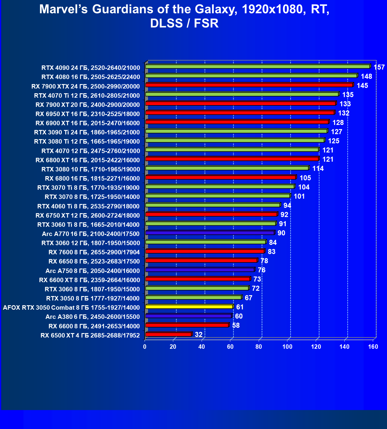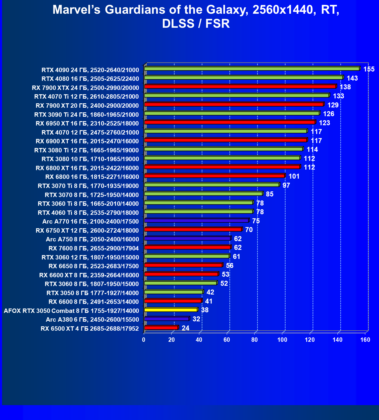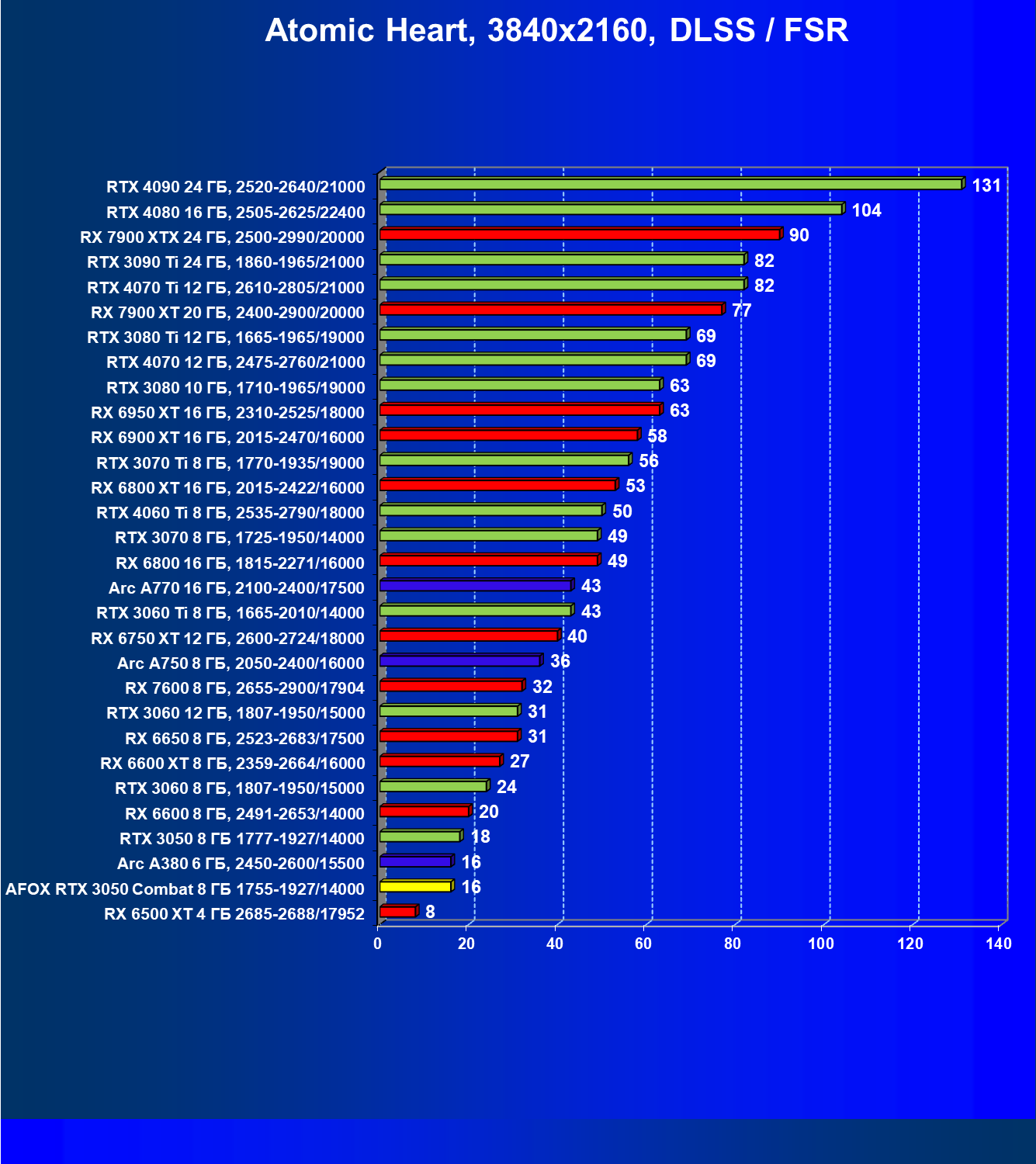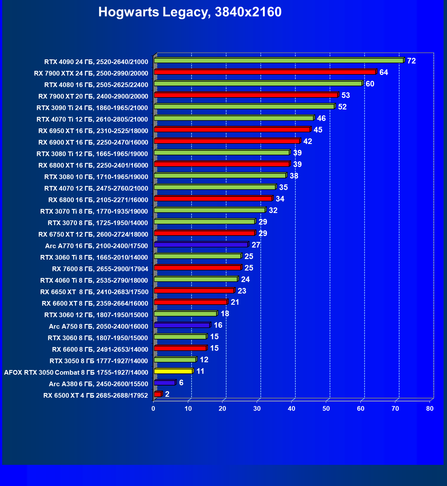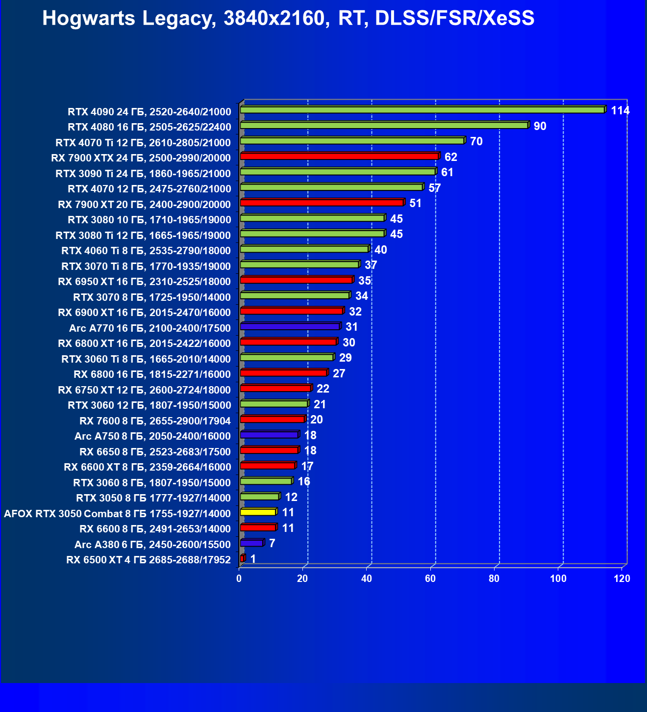 | 29 | Arc A380 6 ГБ, 2450—2600/15500 | 147 | 105 | 14 000 |