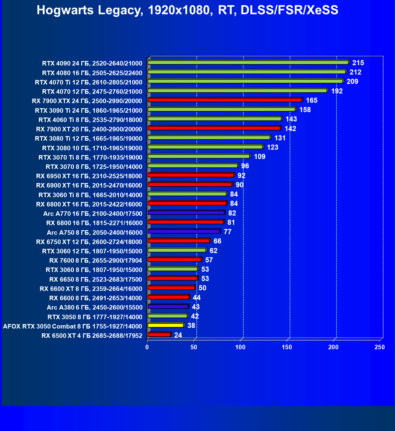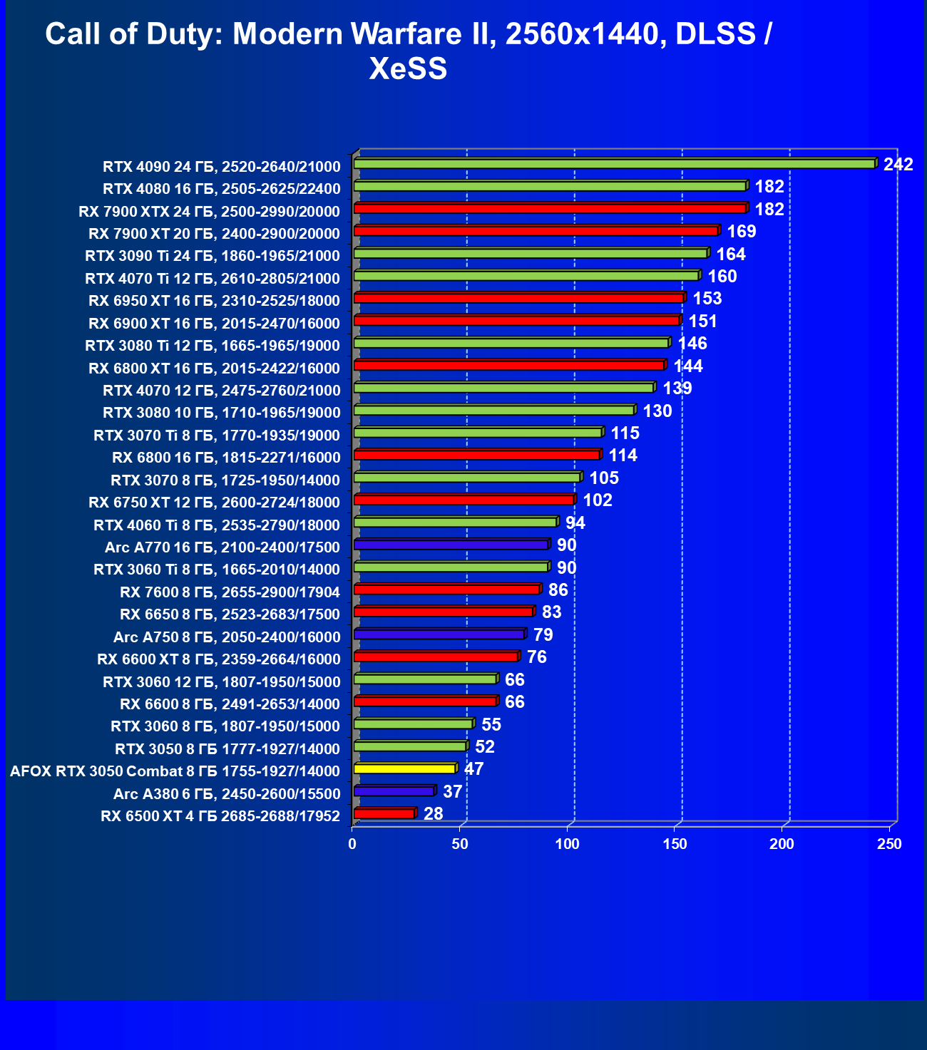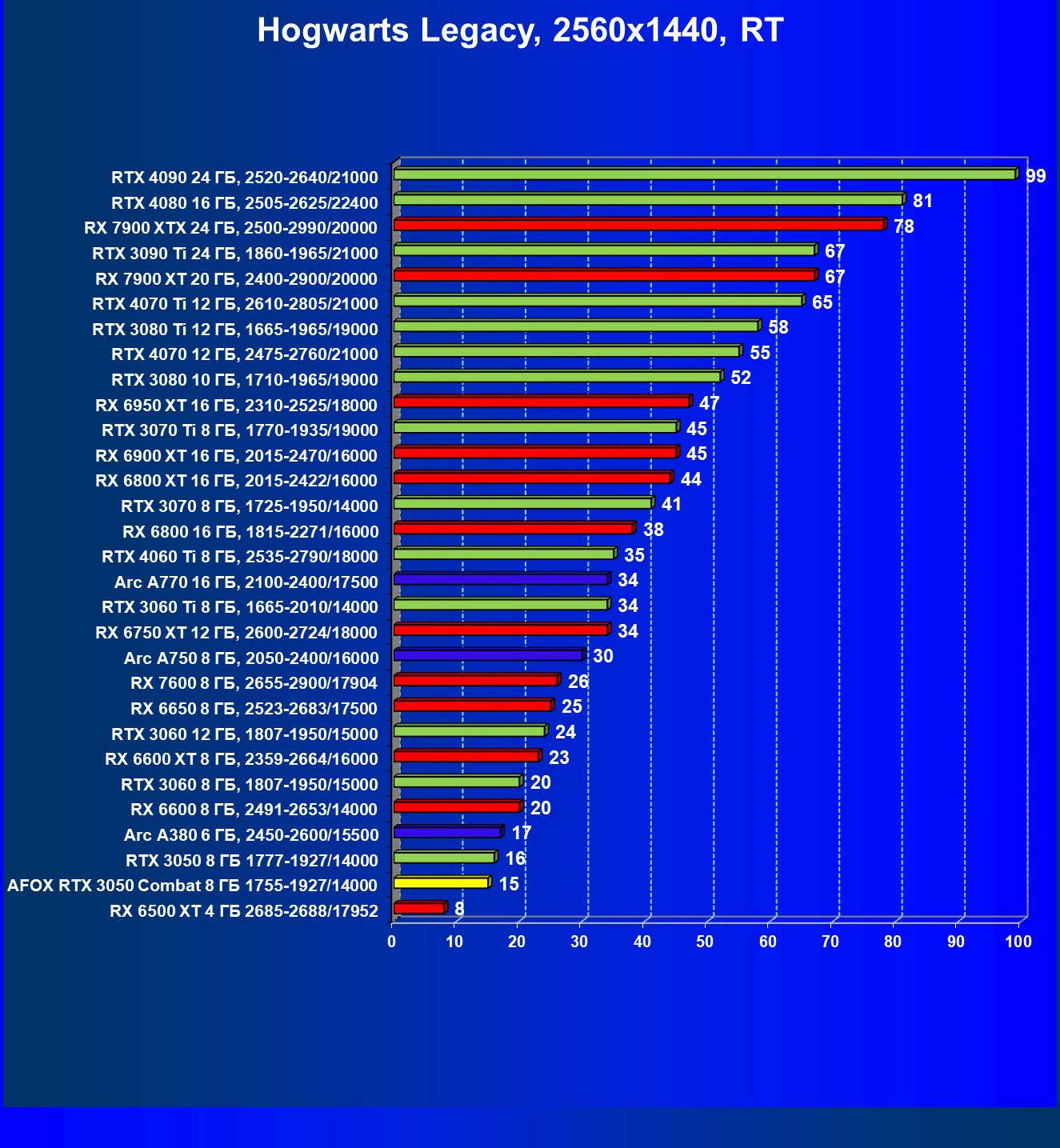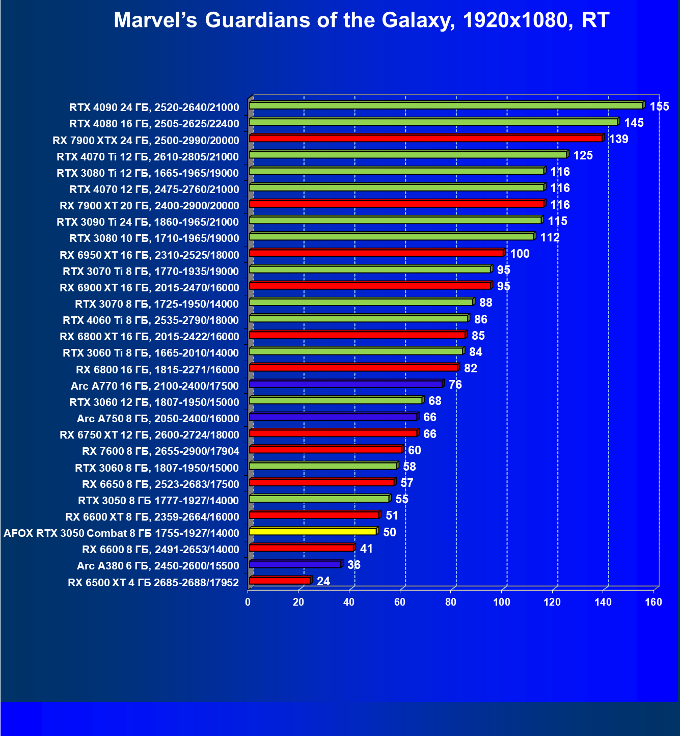 | 29 | Arc A380 6 ГБ, 2450—2600/15500 | 147 | 105 | 14 000 |