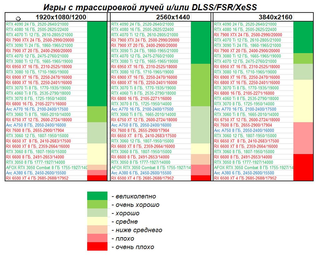 - Вариант рейтинга iXBT.com с включением RT/DLSS/FSR/XeSS