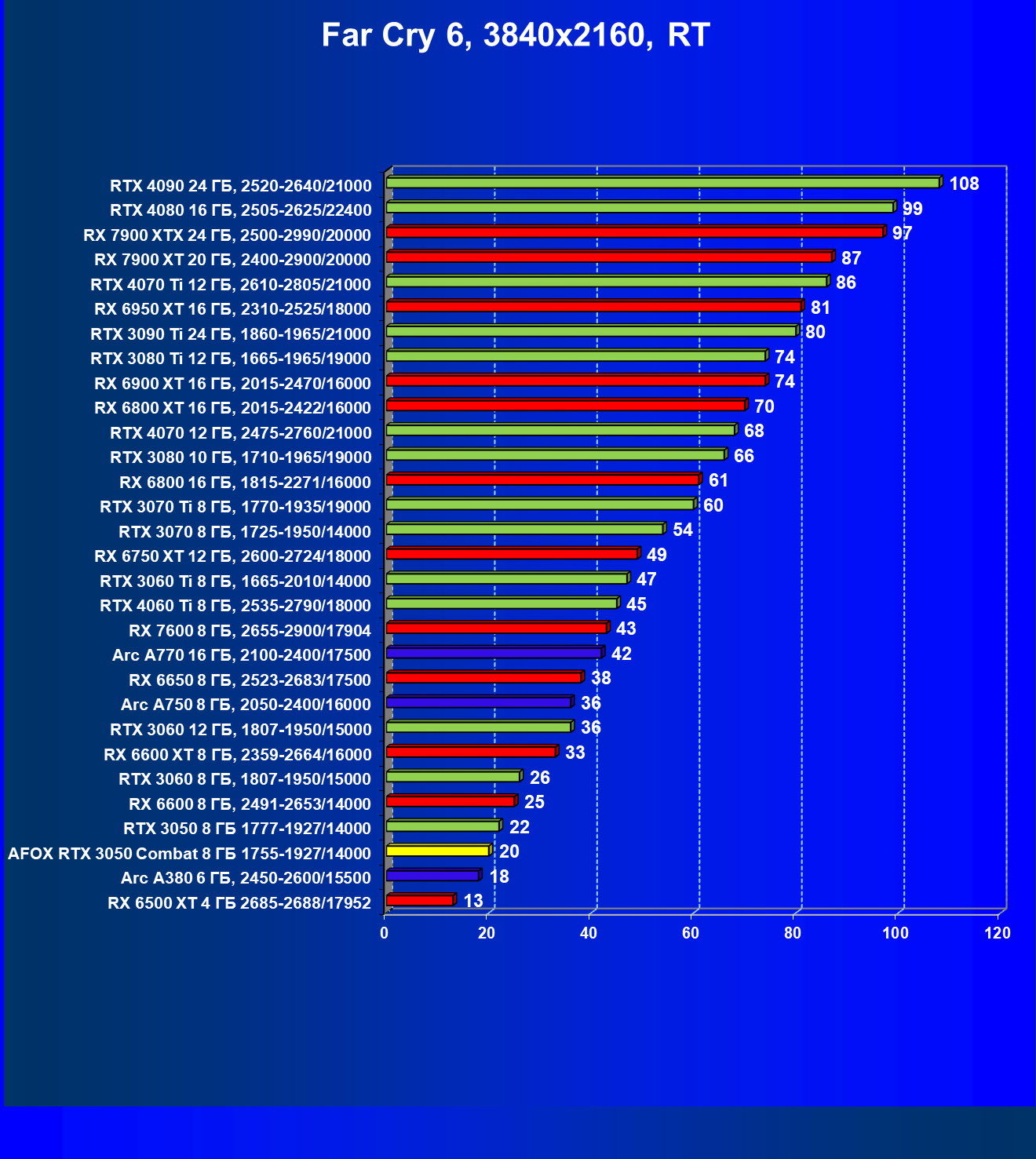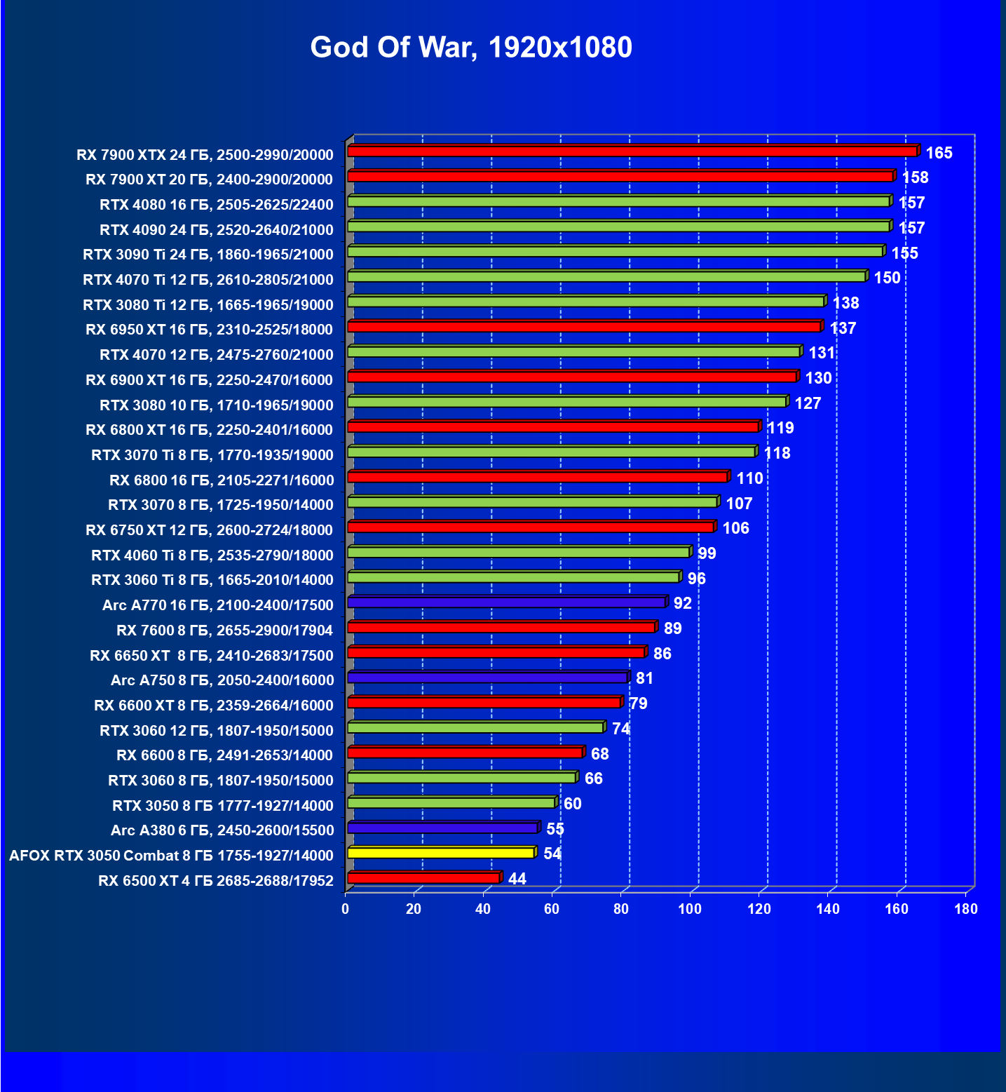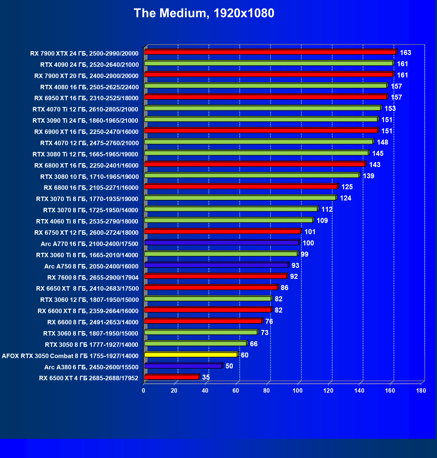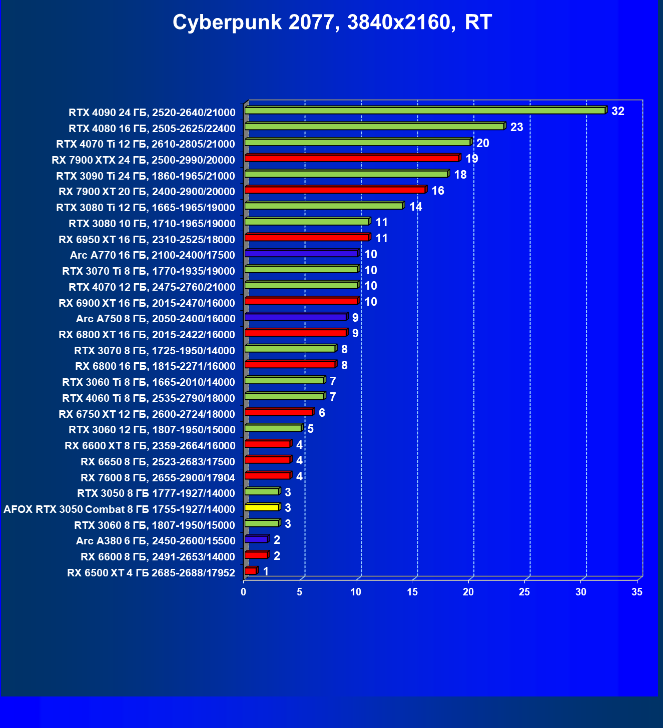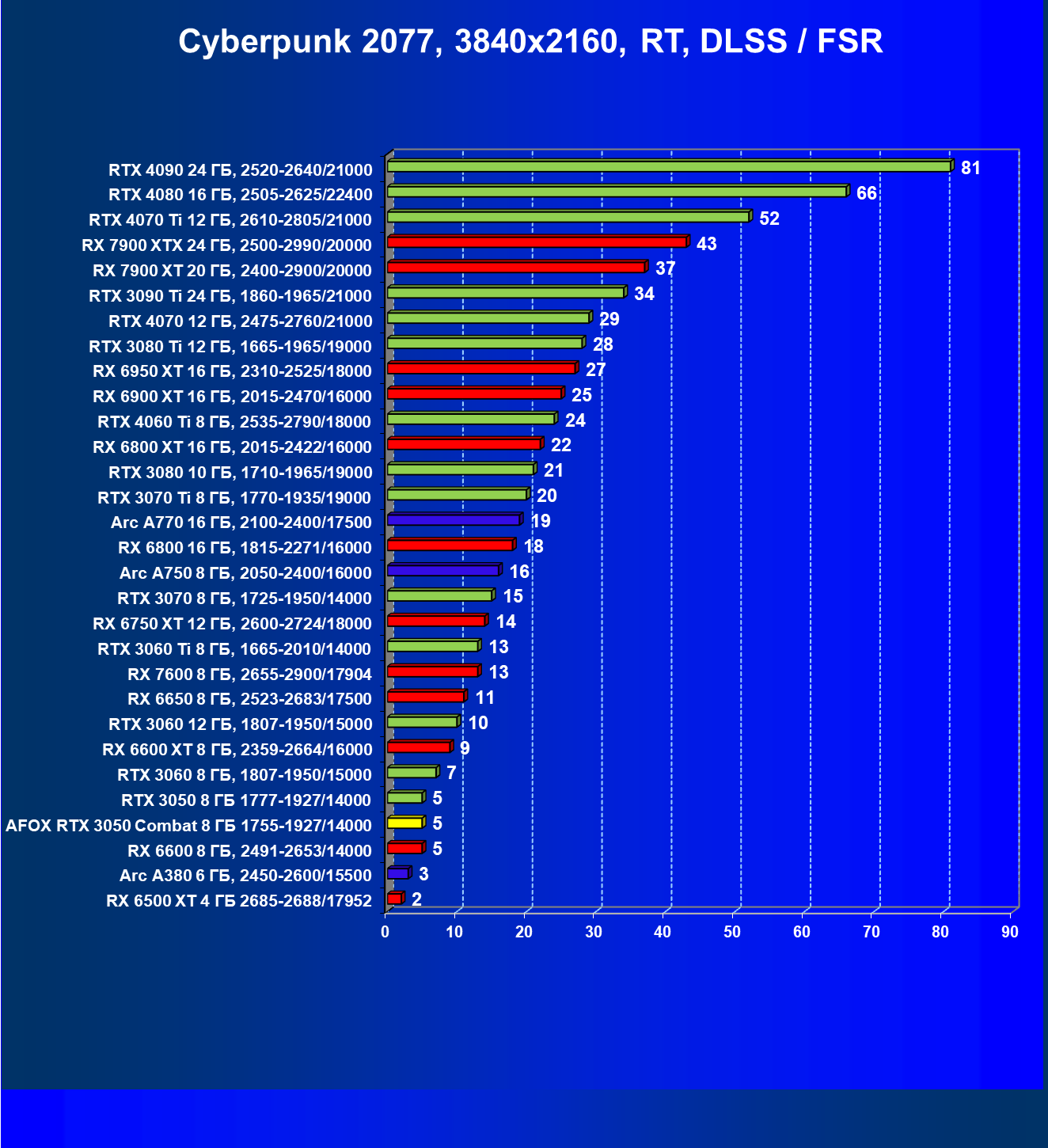| 14 | Afox RTX 3050 Combat 8 ГБ, 1755—1927/14000 | 81 | 162 | 20 000 |
