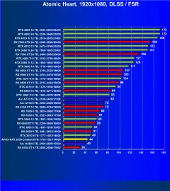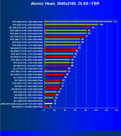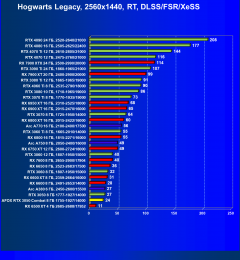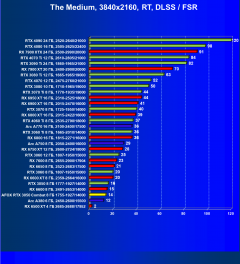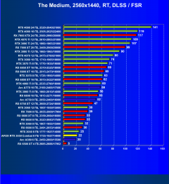 Результаты тестов со включенной аппаратной трассировкой лучей и/или DLSS/FSR/XeSS в разрешениях 1920×1080, 2560×1440 и 3840×2160