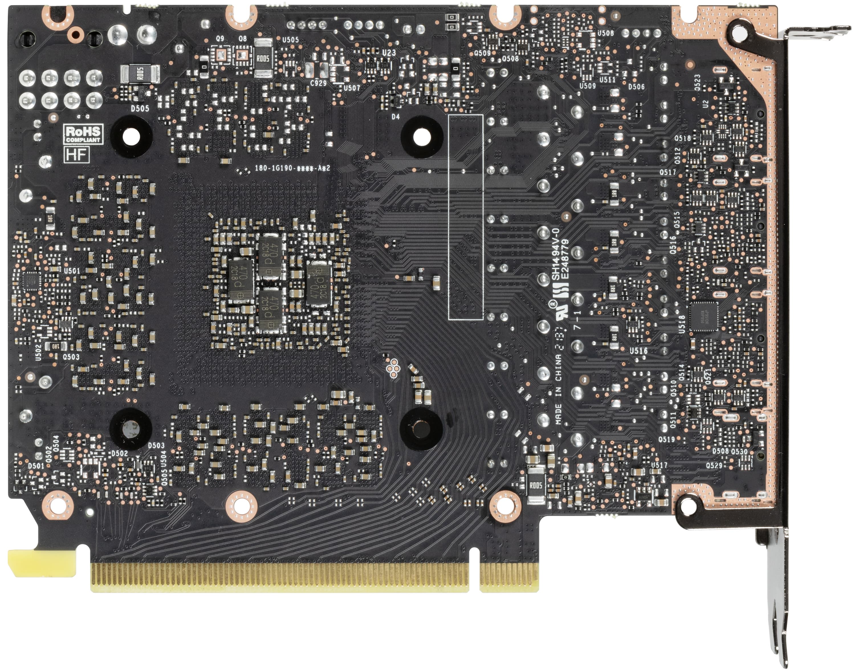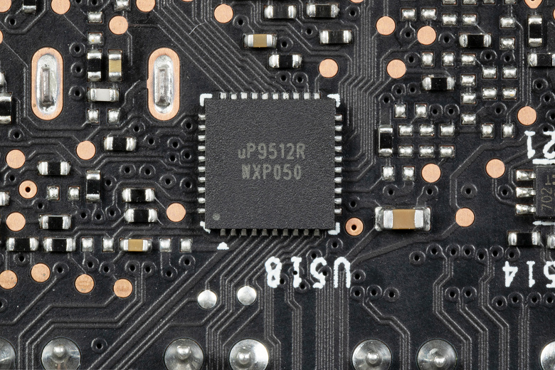 На оборотной стороне платы имеется ШИМ-контроллер uP9512R (uPI Semiconductor), который управляет четырехфазной схемой питания графического процессора.