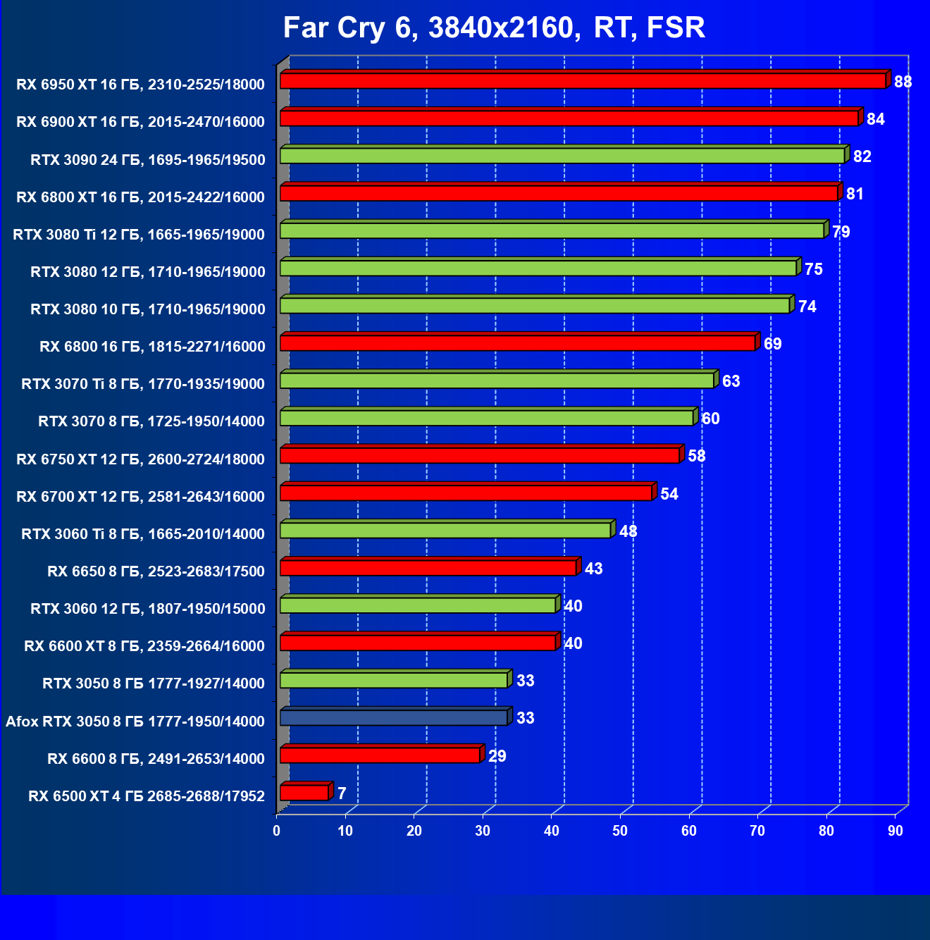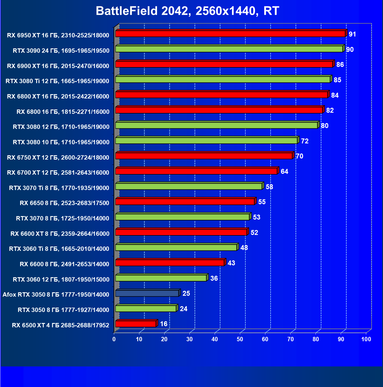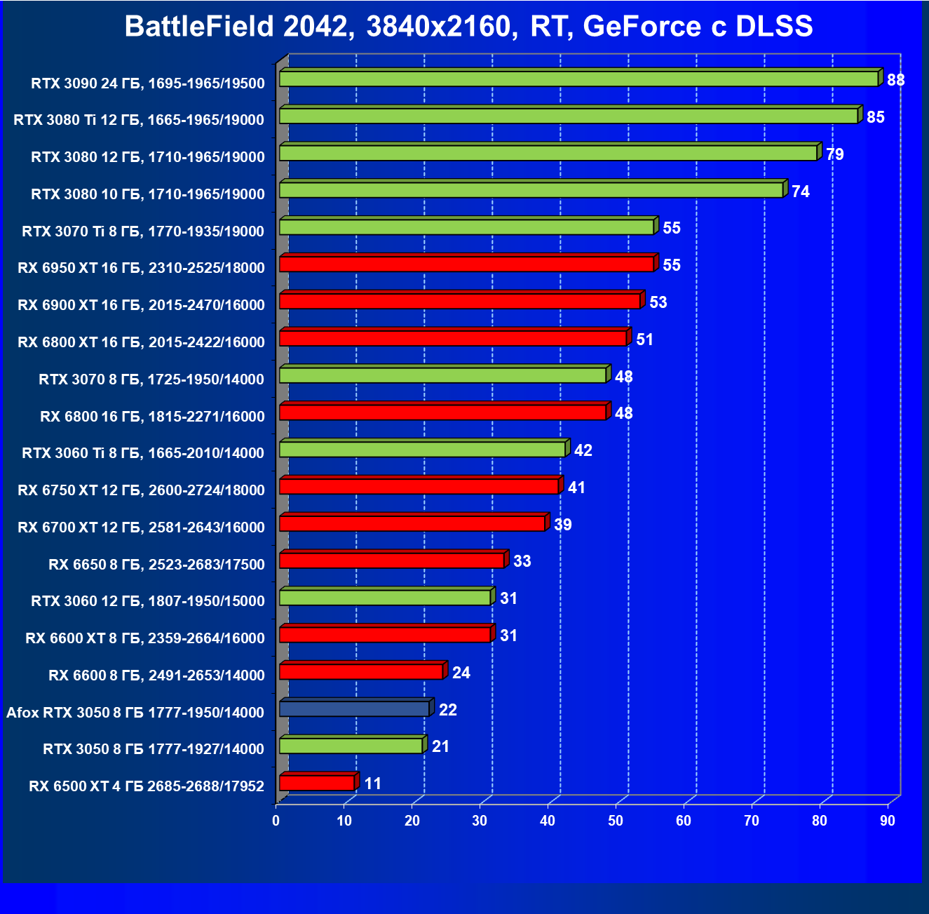 | 11 | RX 6600 XT 8 ГБ, 2359—2664/16000 | 89 | 321 | 36 000 |
