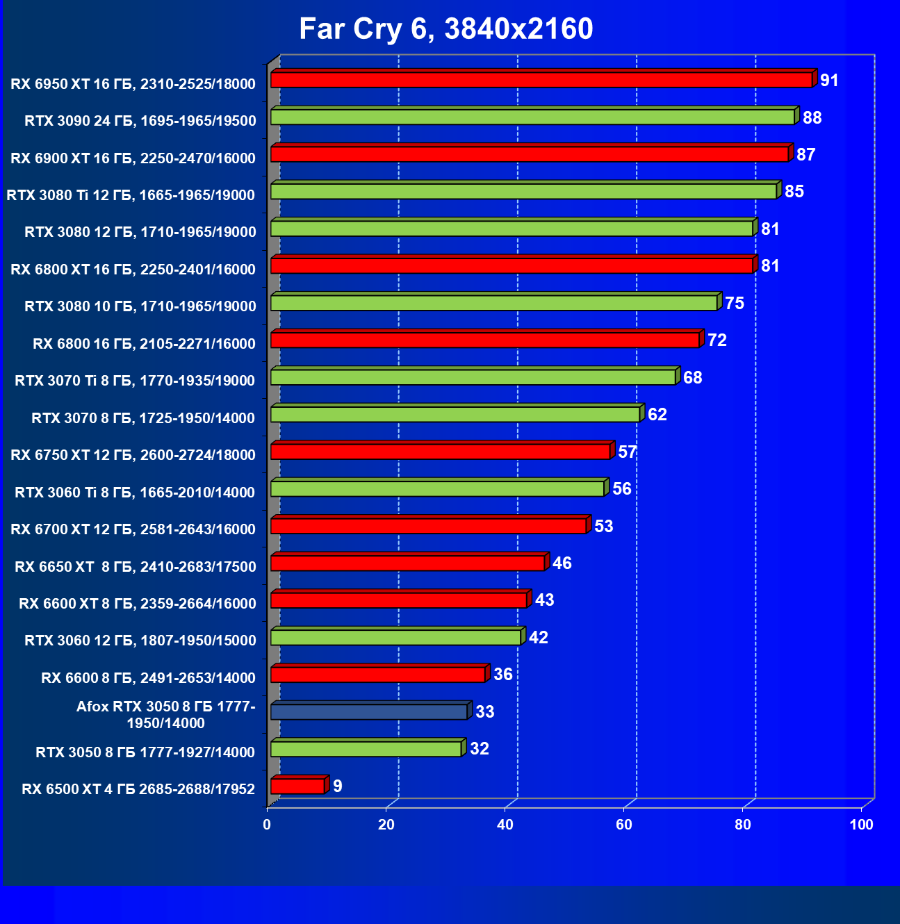 | 17 | RX 6600 8 ГБ, 2491—2653/14000 | 256 | 91 | 28 000 |