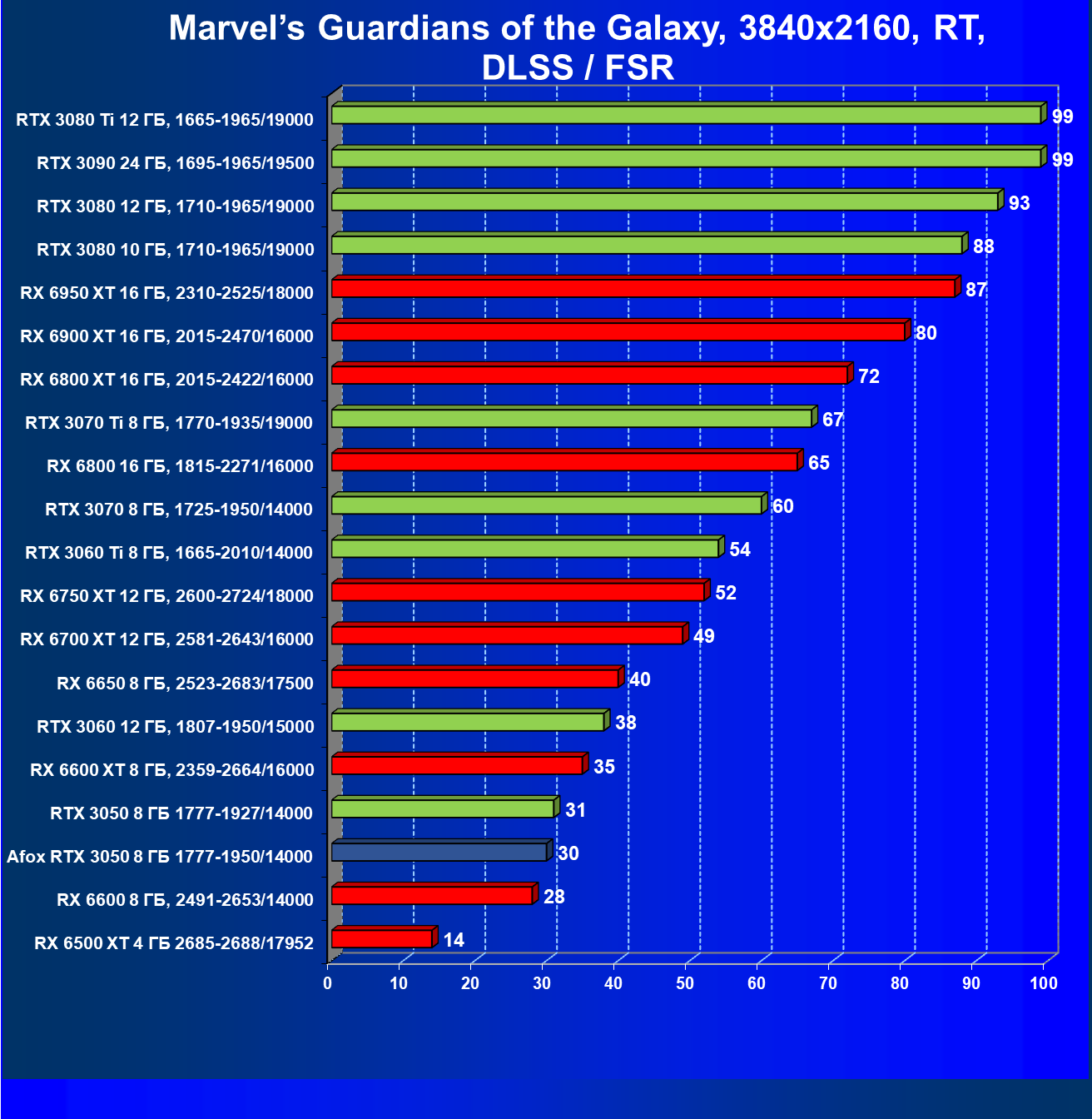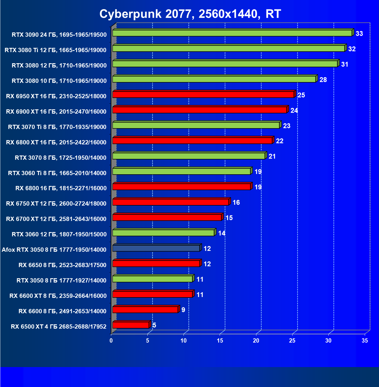 | 03 | RX 6650 XT 8 ГБ, 2523—2683/17500 | 99 | 347 | 35 000 |