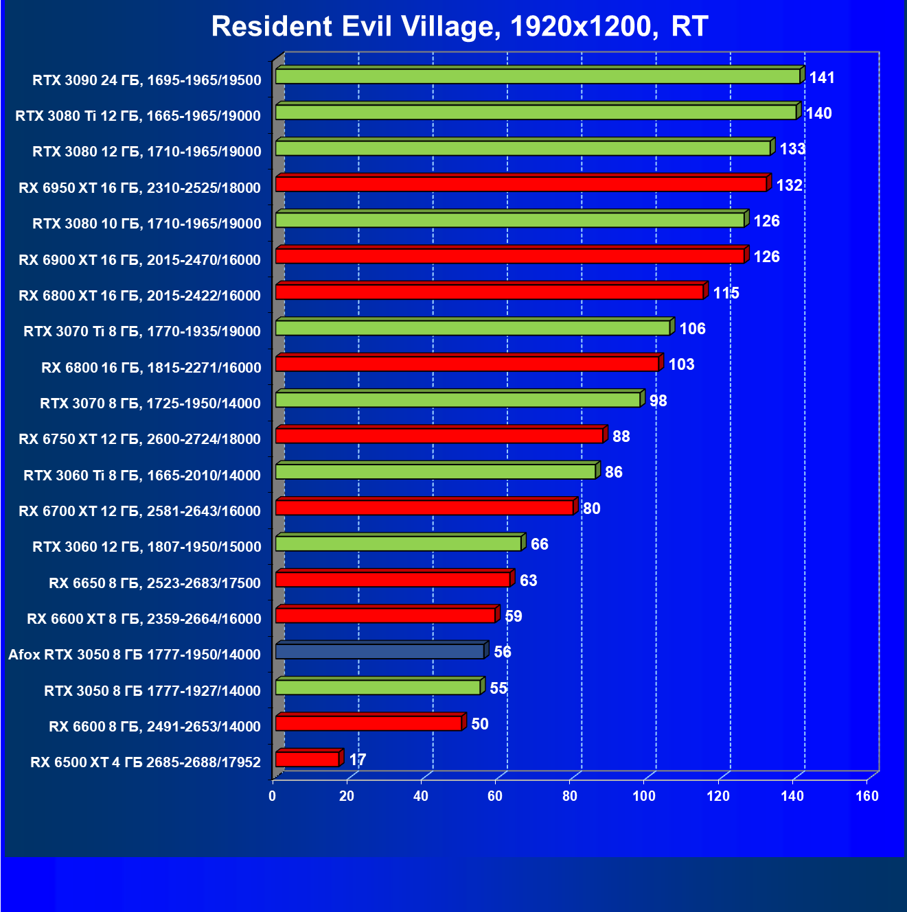 Мы сравниваем карту Afox с картой Palit, которая на том же GPU и по простой причине: референс-карты Nvidia с GeForce RTX 3050 просто не существует.