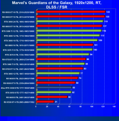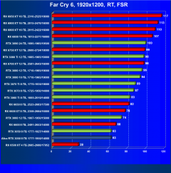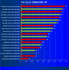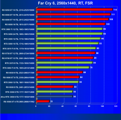 Карта Afox так же великолепно смотрится даже при включении трассировки лучей, но исключительно в разрешении Full HD, и обязательно включать DLSS (или FSR). Модели из стана «красных» Radeon RX 6600 и RX 6600 XT при включении трассировки значит весомо теряют скорость, но включение FSR с их стороны компенсирует потерю FPS и дает только RX 6600 XT занимать значительно весомое лидерство и оправдывать свой более дорогой прайс, а карта Radeon RX 6600 с трассировкой и FSR находится рядом с нашей обозреваемой картой Afox, однако при этом она сильно дороже последней. Конечно, очень многое зависит от конкретной игры, и под какую технологию FSR/DLSS она больше всего оптимизирована.