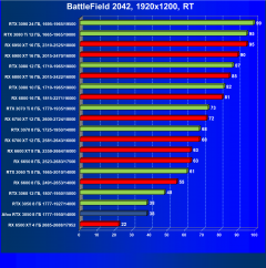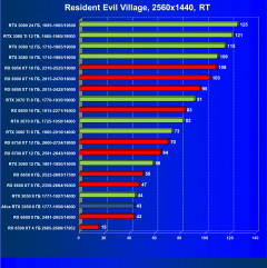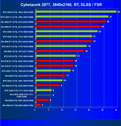 Если задействовать трассировку лучей без использования DLSS, то полного комфорта мы не получим даже в Full HD (выставив остальные настройки графики на максимум), то есть в этом случае однозначно придется понижать настройки графики, а про более высокие разрешения речь не идет вообще. Использование DLSS совместно с RT в играх, которые поддерживают эти технологии, даст приличную прибавку производительности, в этом случае будет обеспечен хороший комфорт в играх в 1920×1080 при высоких настройках графики. Ближайший конкурент в играх с трассировкой лучей — Radeon RX 6600 XT (а не Radeon RX 6600, потому что производительность всего семейства RX 6000 падает при включении RT намного сильнее, чему в случае карт серии GeForce RTX 30). Впрочем, и у AMD есть технология рендеринга в сниженном разрешении FSR, которая уже поддерживается некоторыми новыми играми и позволяет несколько компенсировать потери FPS от включения RT для карт Radeon.