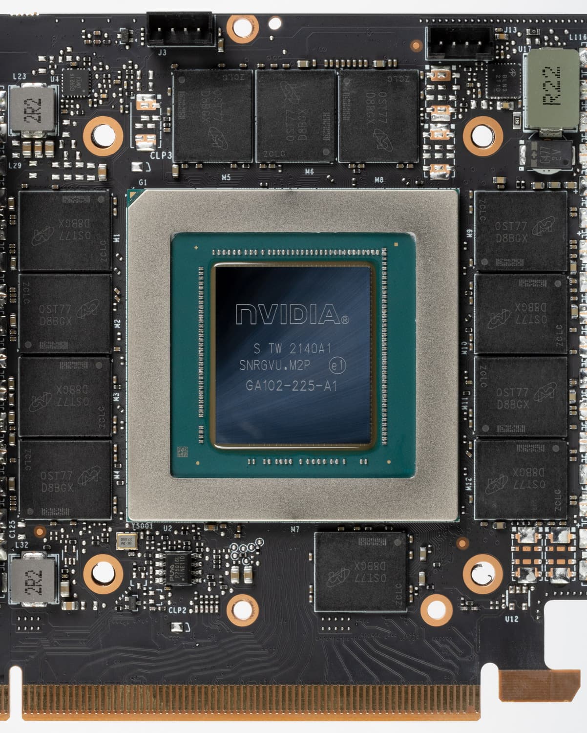 Карта имеет 12 ГБ памяти GDDR6X SDRAM, размещенной в 12 микросхемах по 8 Гбит на лицевой стороне PCB. Микросхемы памяти Micron (MT61K256M32JE-21, D8BGX) рассчитаны на условную номинальную частоту работы в 2625 (21000) МГц .