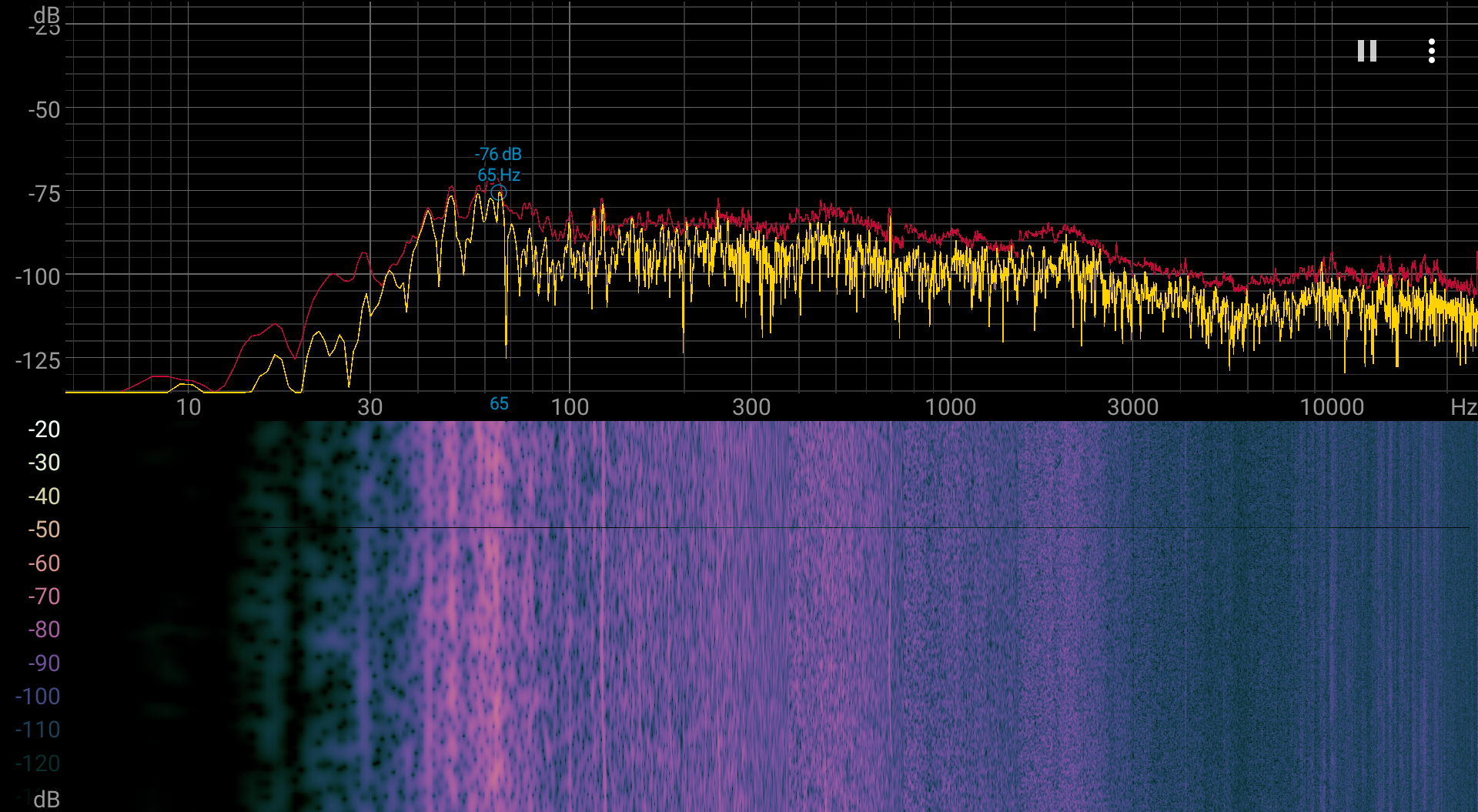 Спектрограмма шума достаточно ровная.