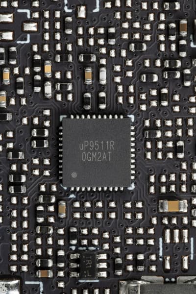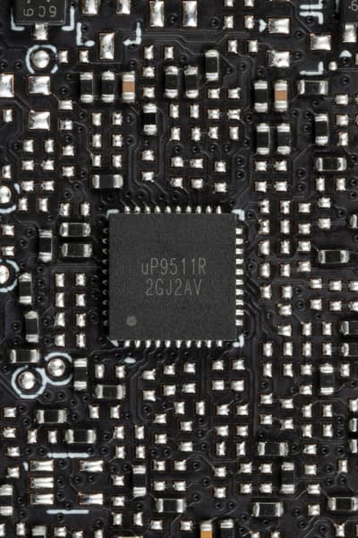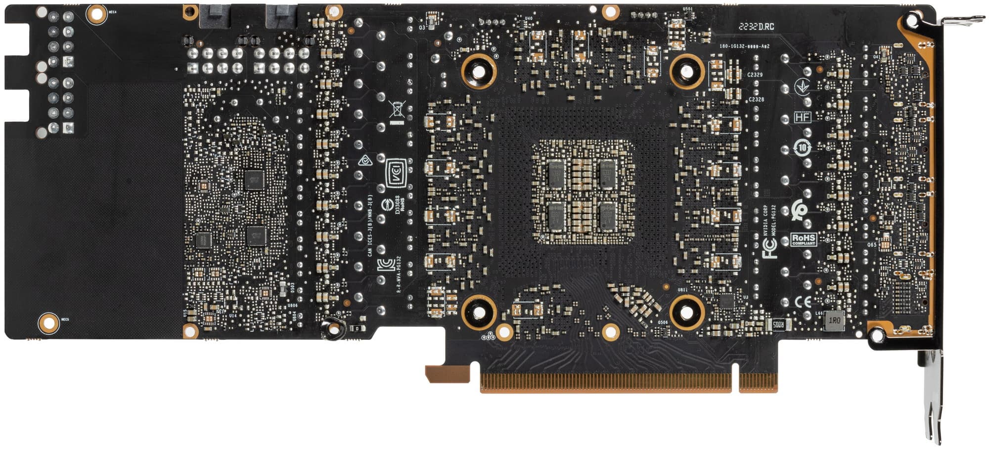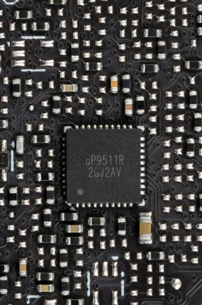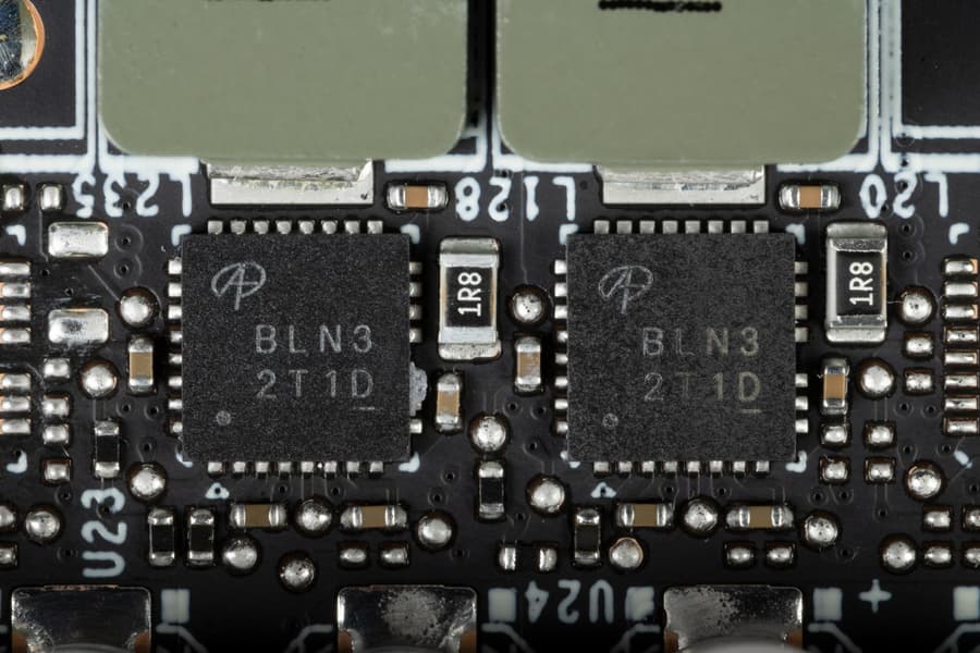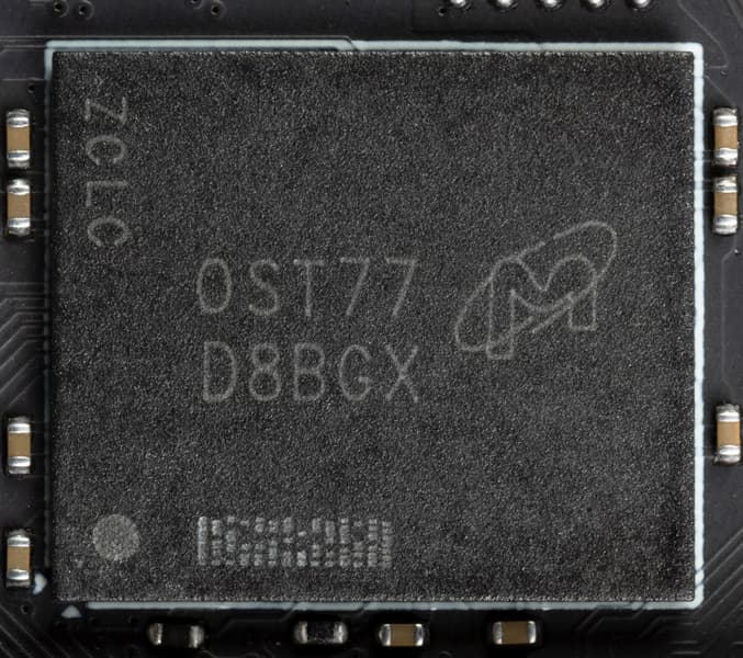 Также имеются два контроллера uS5650Q (uPI Semiconductor), отвечающие за мониторинг карты (слежение за напряжением и температурой). Один из них расположен на лицевой стороне PCB, другой — на оборотной.
