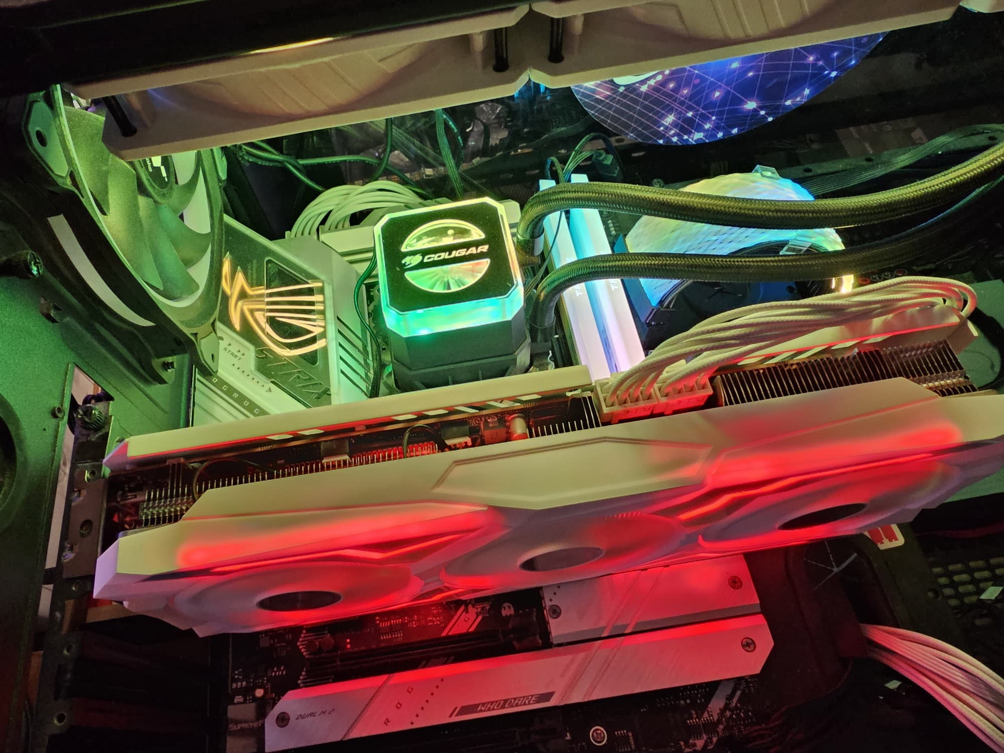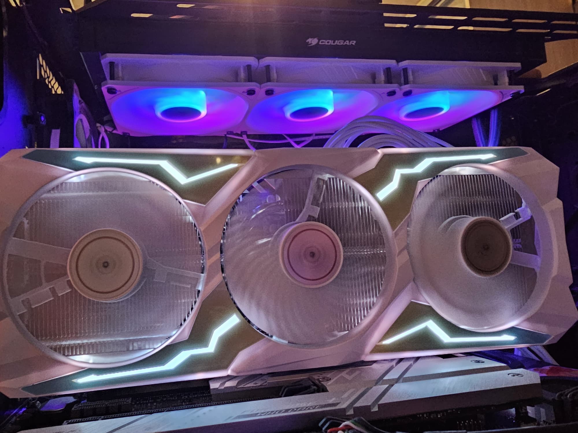 Подсветка красивая (белый кожух СО способствует), а вот невозможность ее отключить — это минус, потому что бесконечное мигание цветов может быстро надоесть, к тому же свечение яркое.