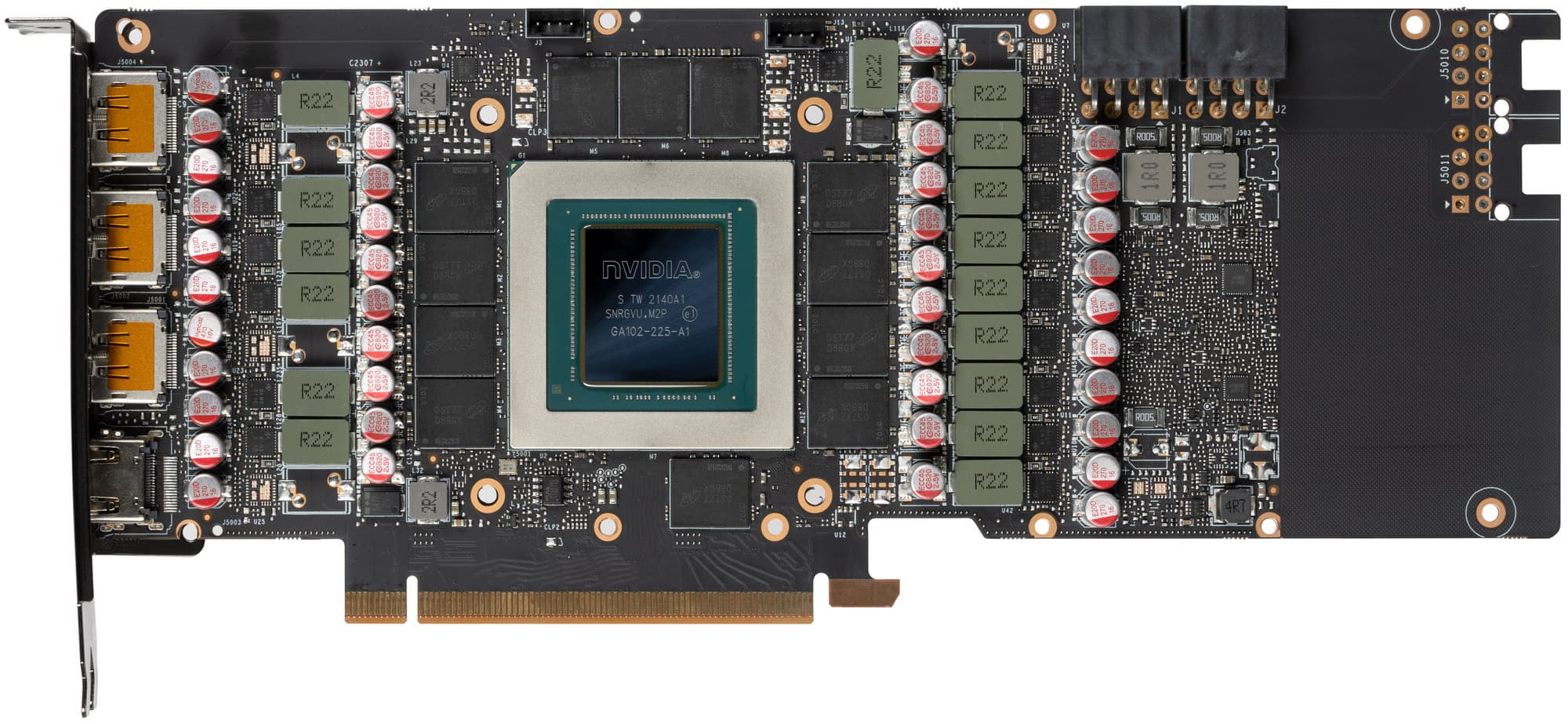 А вот и само графическое ядро: чип GA102-225, чип выпущен на 40-й неделе 2021 года.