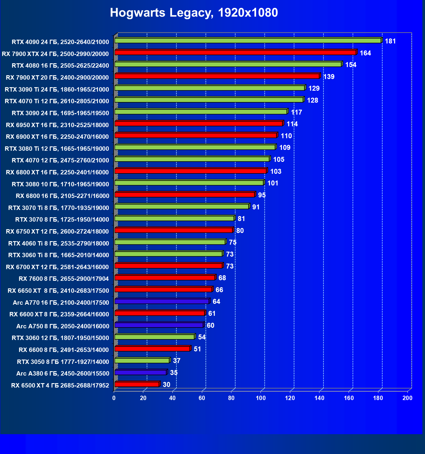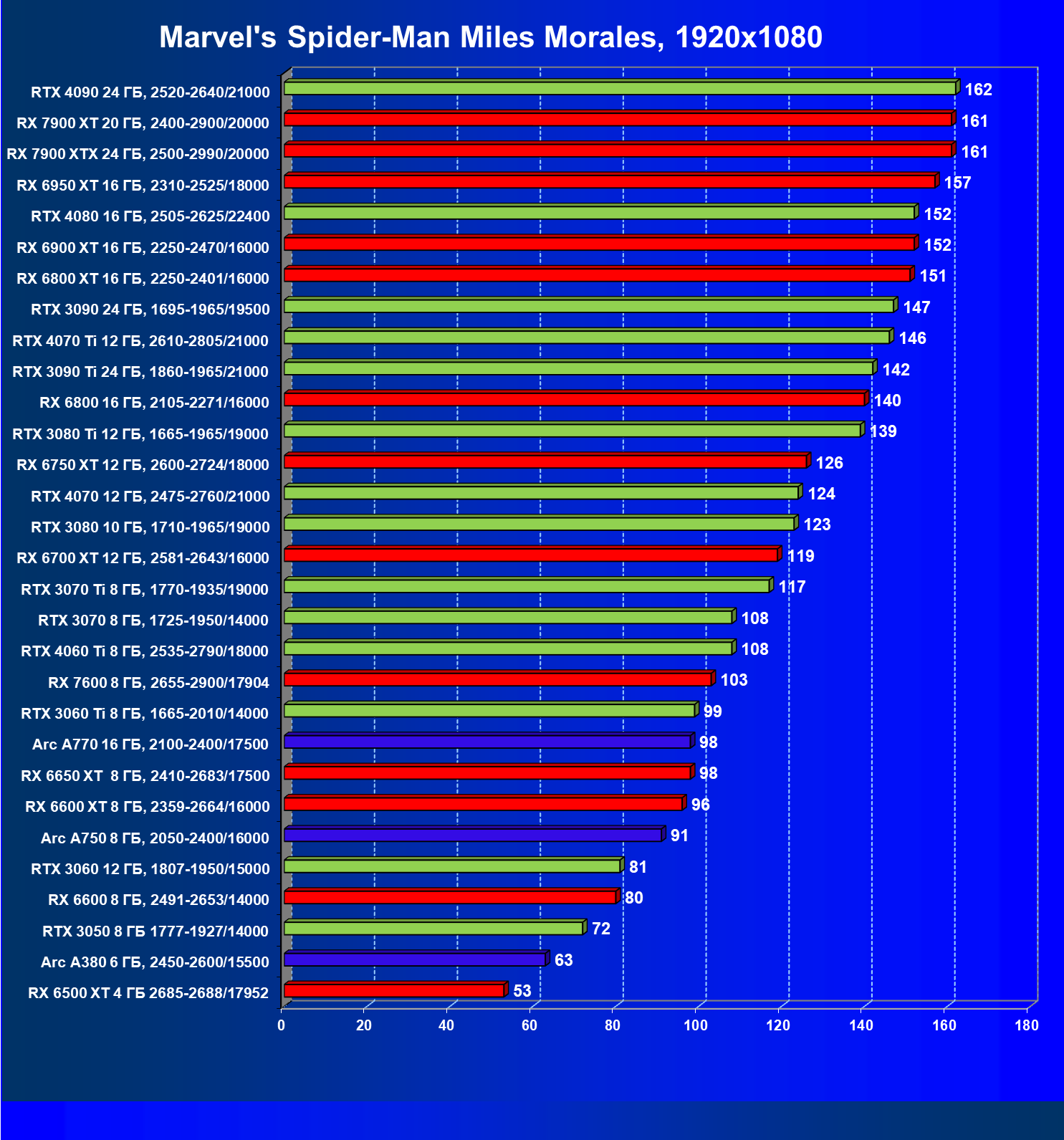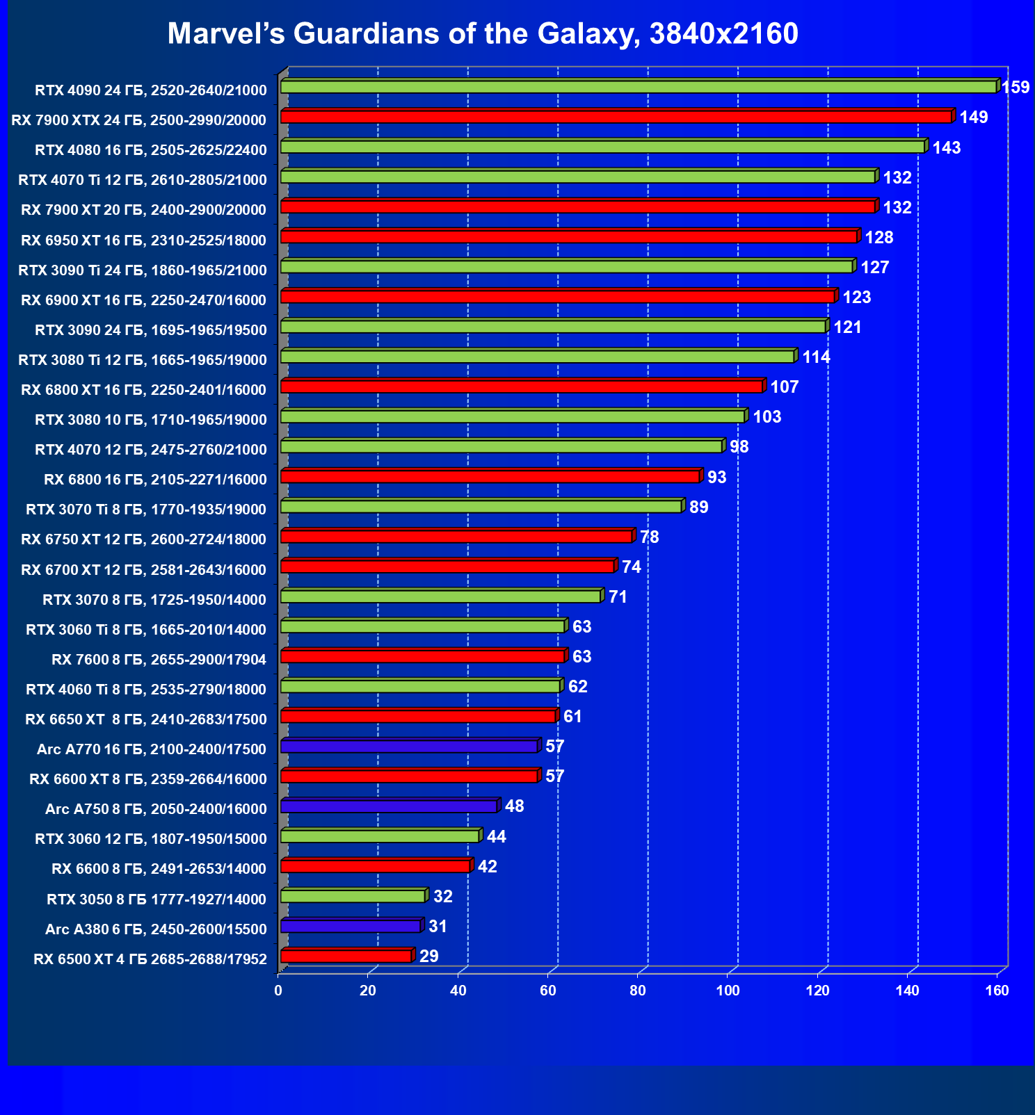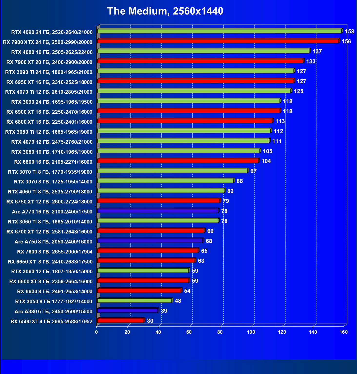 | 20 | RX 7900 XT 20 ГБ, 2400—2900/20000 | 78 | 588 | 75 000 |