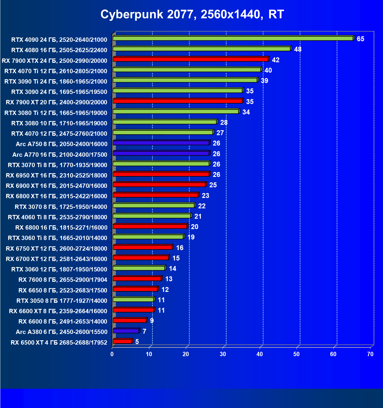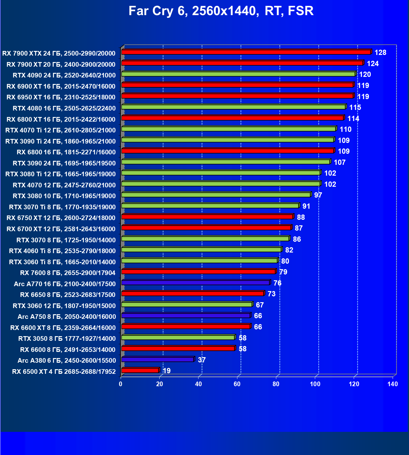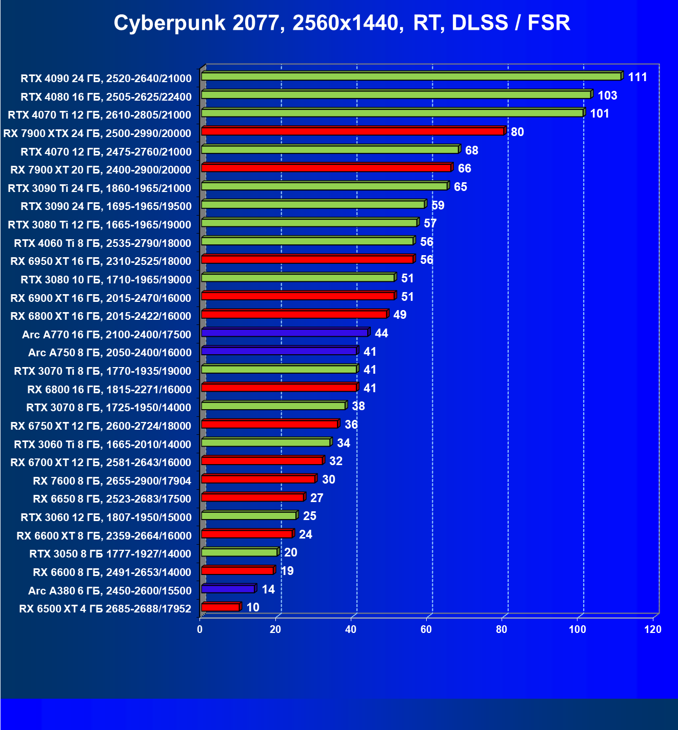 | 10 | RX 6950 XT 16 ГБ, 2310—2525/18000 | 667 | 93 | 72 000 |