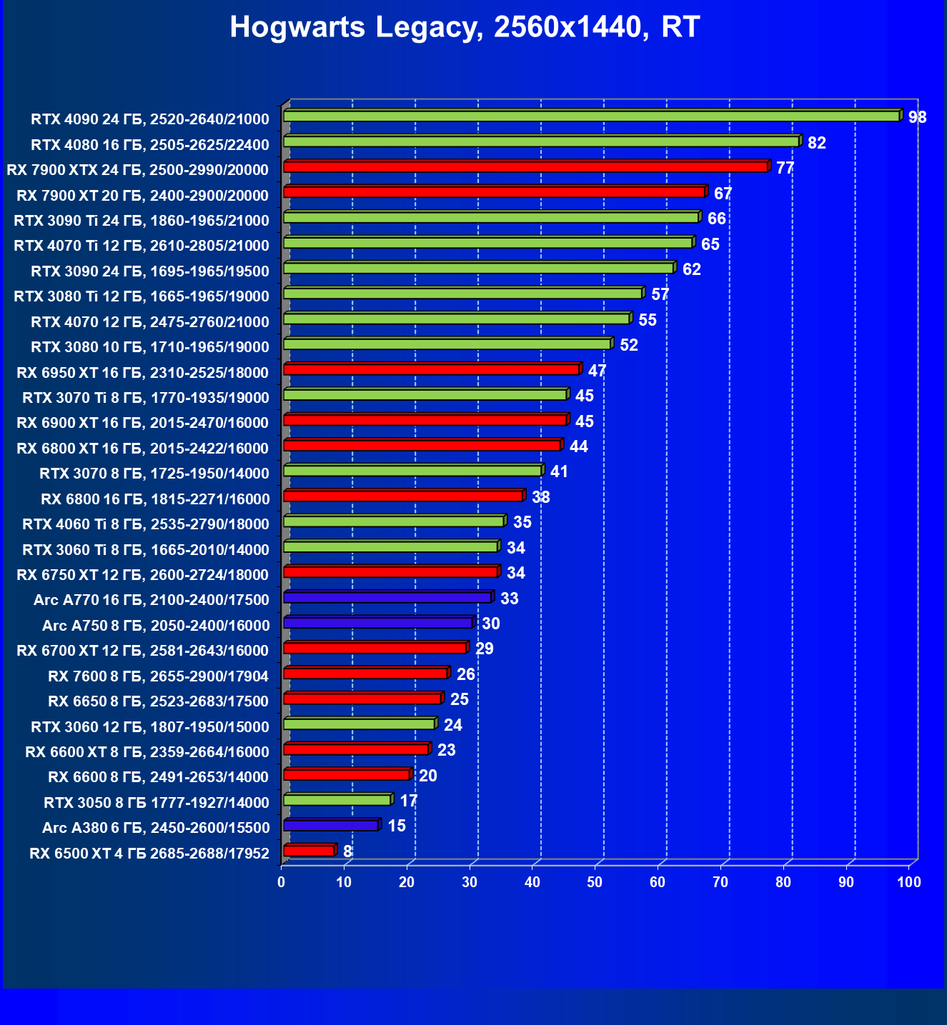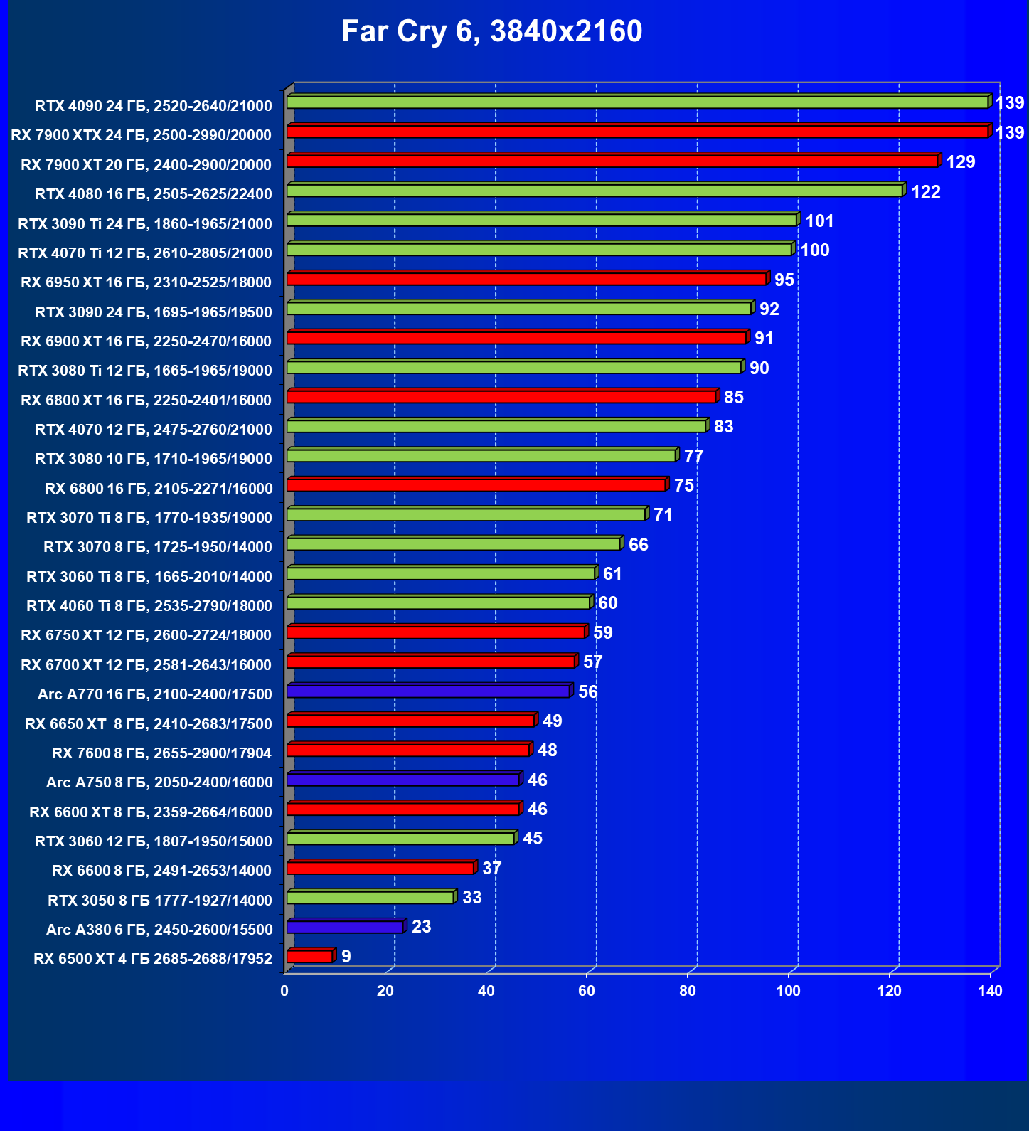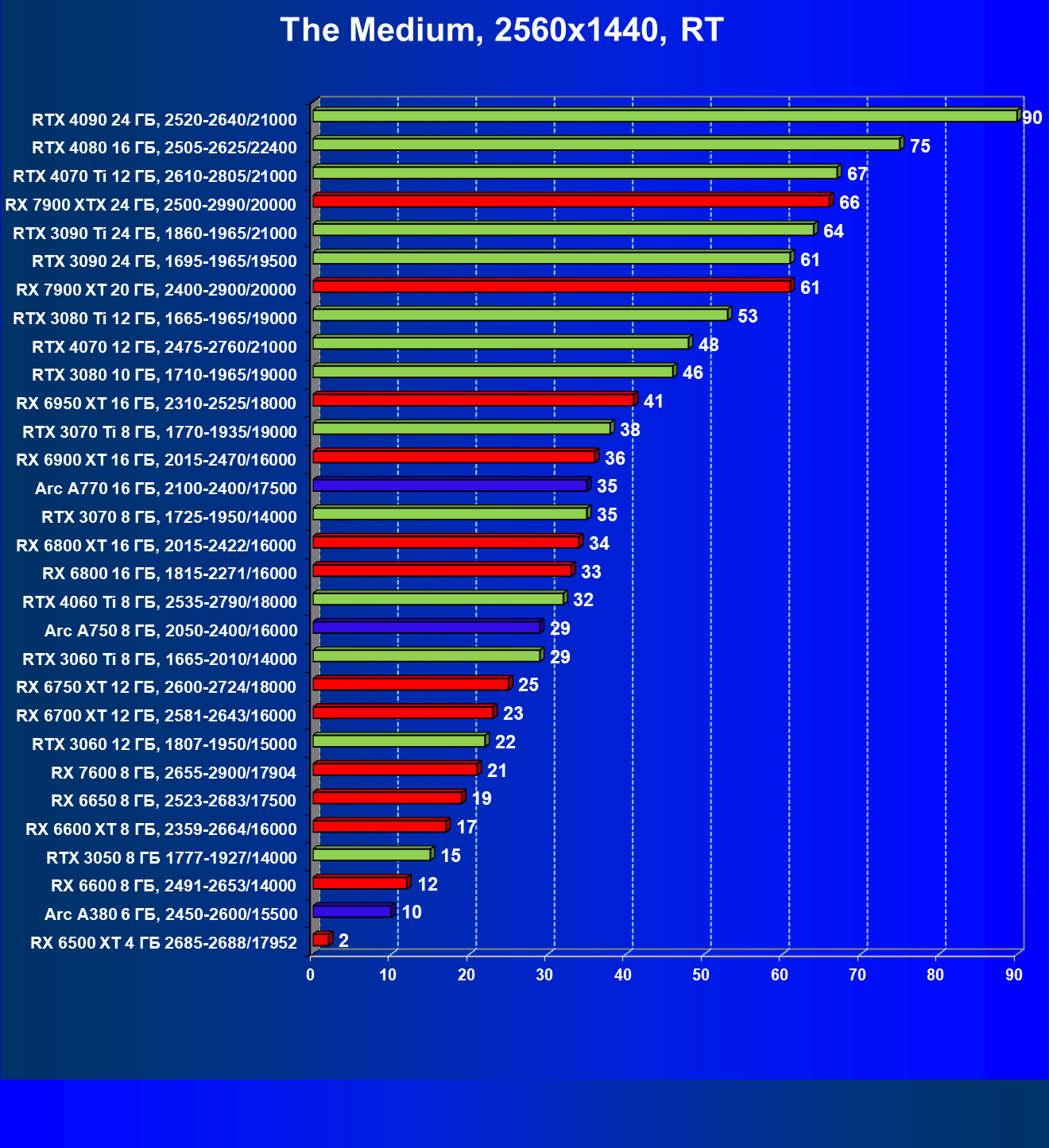 | 10 | RX 6950 XT 16 ГБ, 2310—2525/18000 | 667 | 93 | 72 000 |