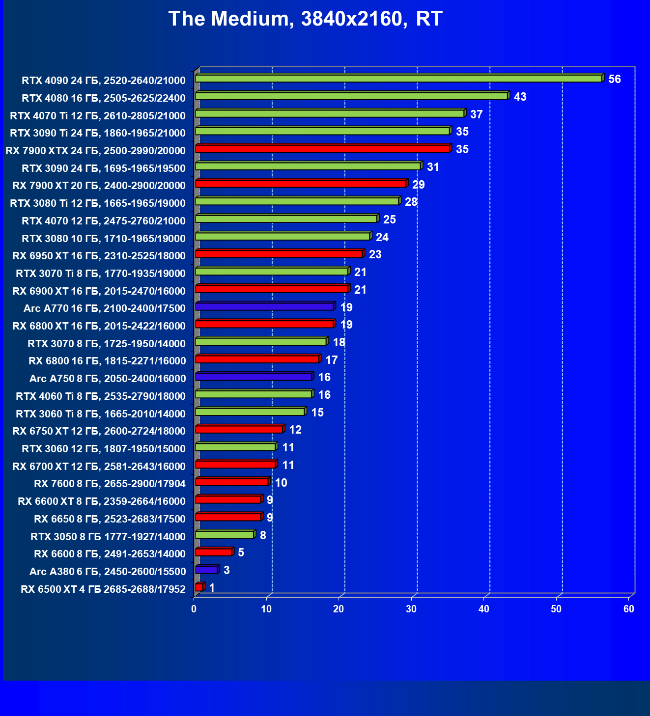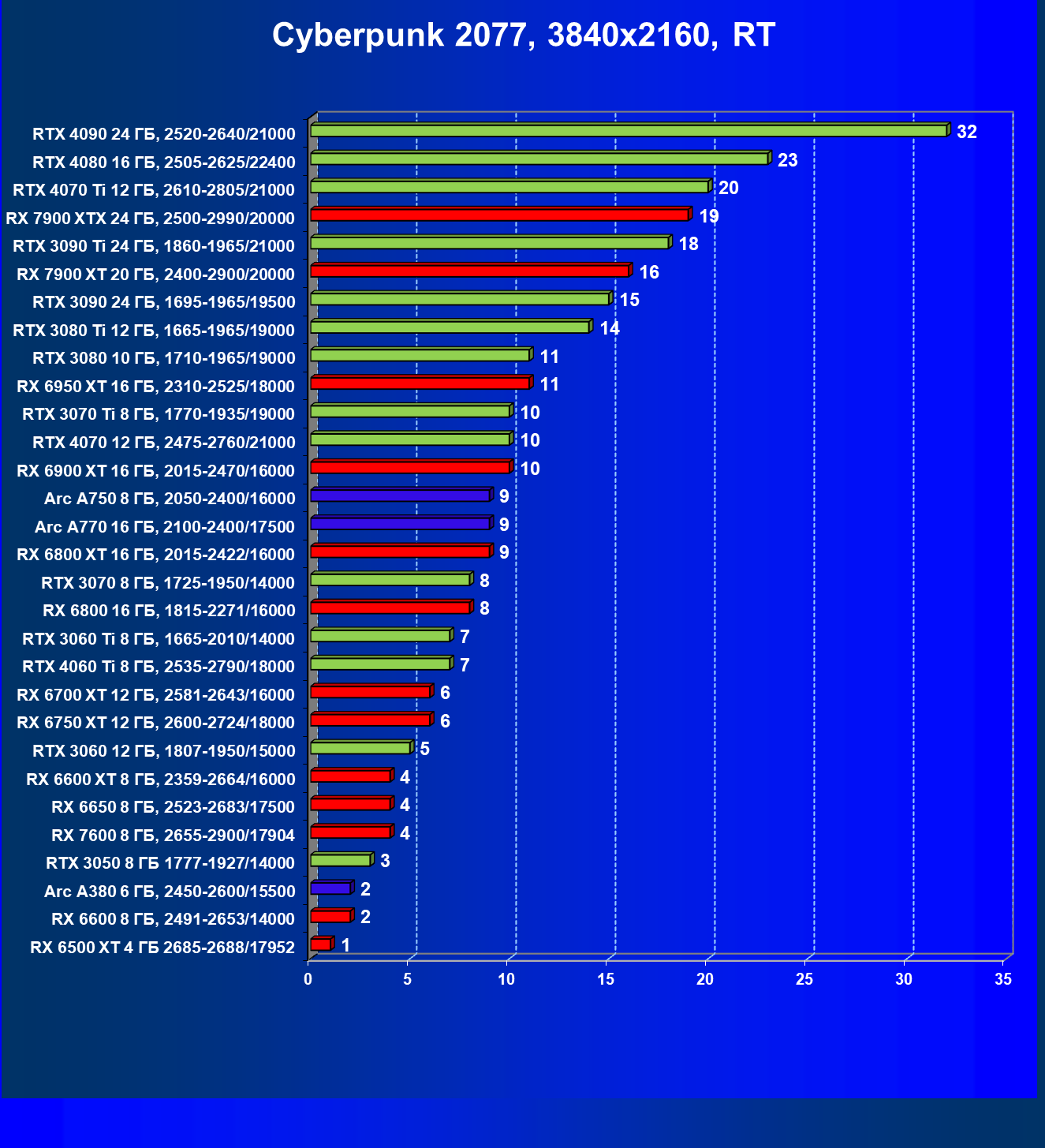 | 07 | RX 6950 XT 16 ГБ, 2310—2525/18000 | 521 | 72 | 72 000 |